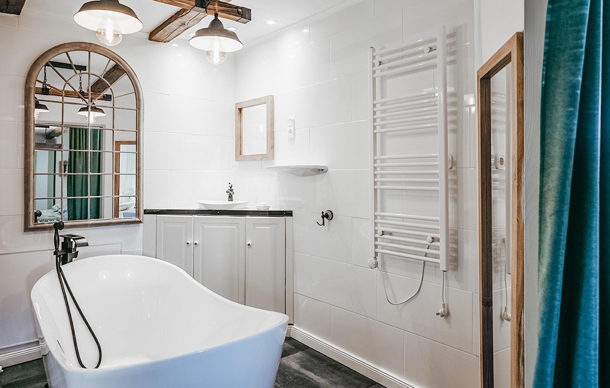 - Warmes und kaltes Wasser, Dusche und Badewanne