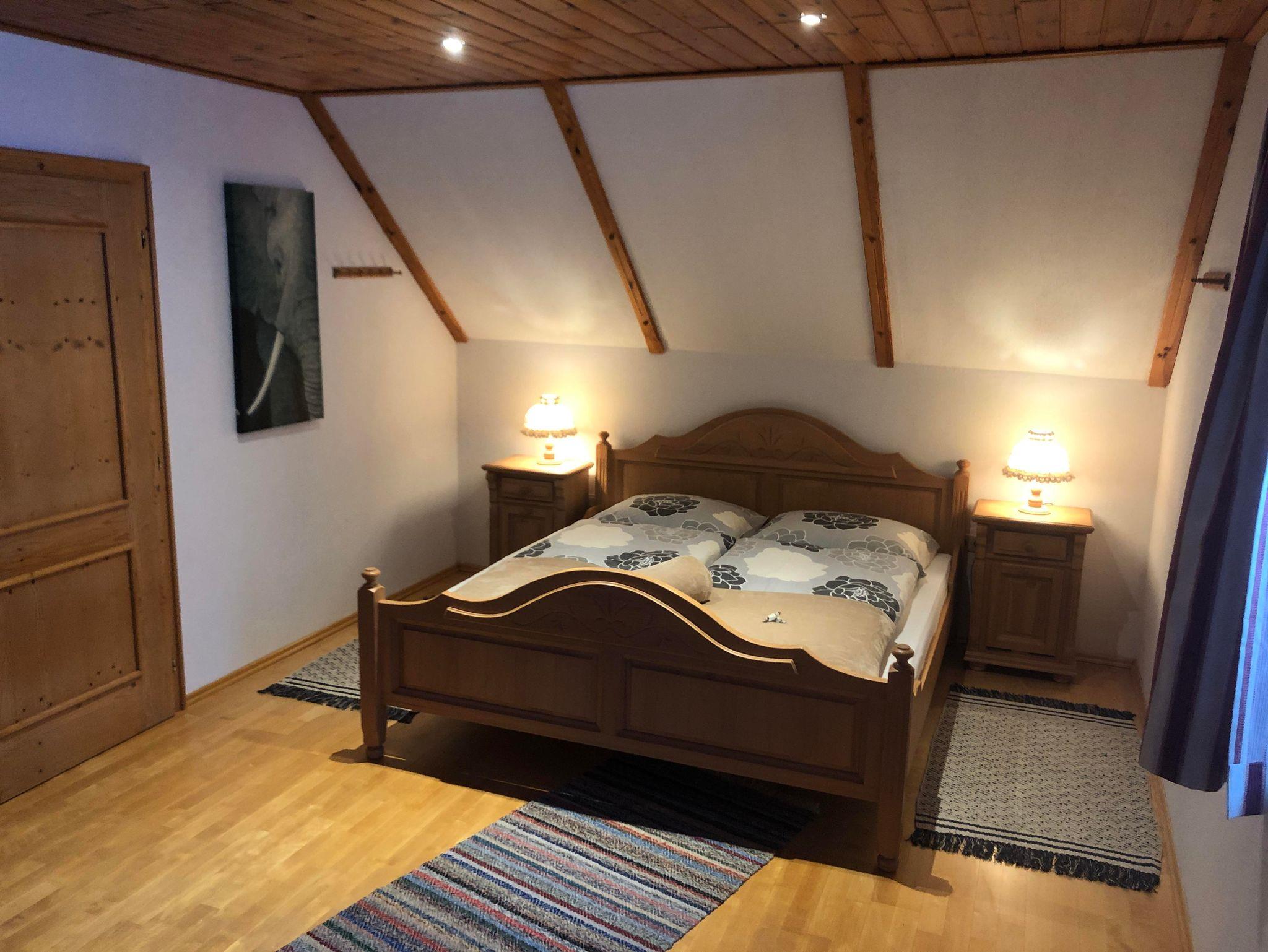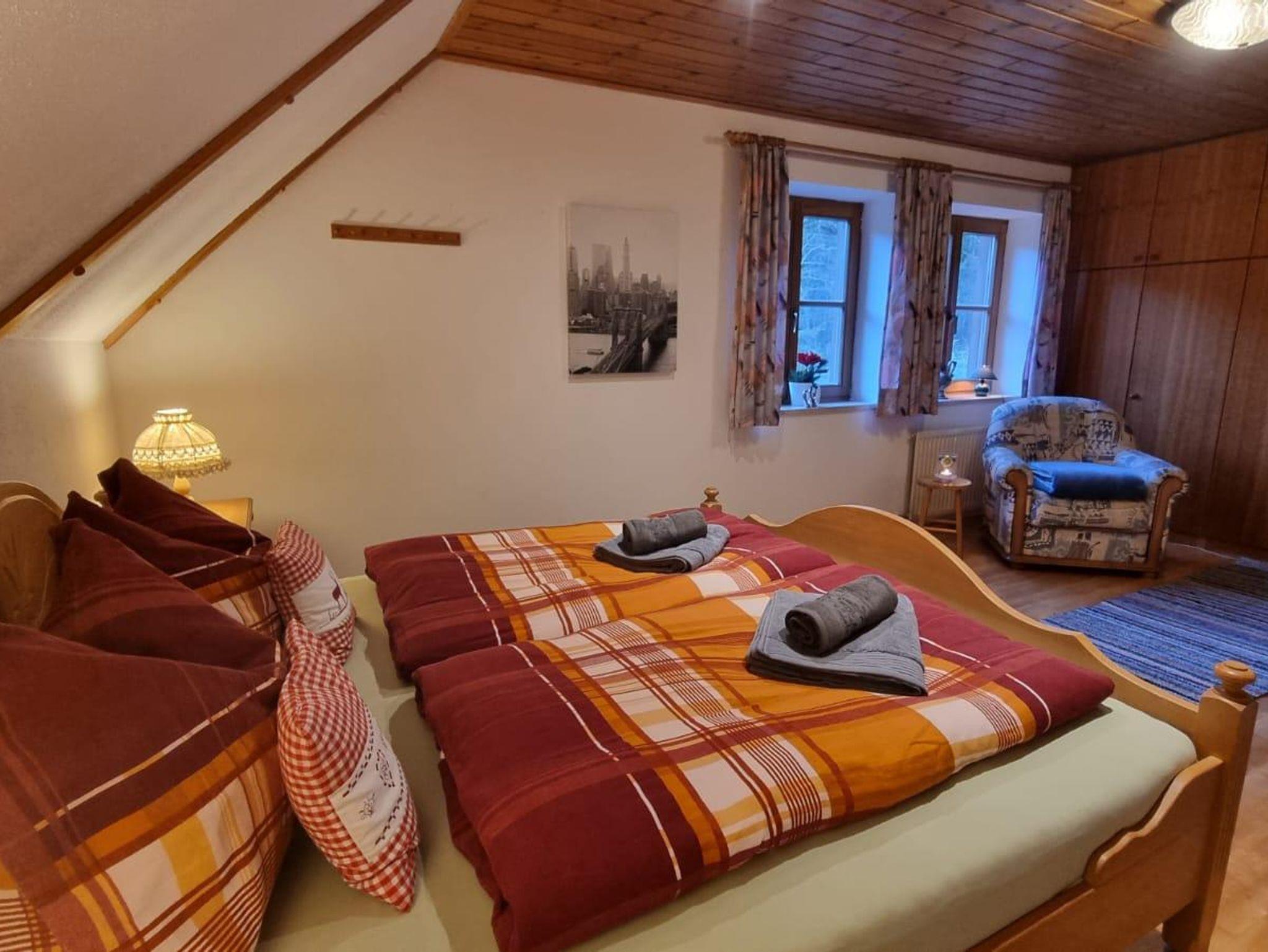 Unser Ferienhaus erstreckt sich über zwei Etagen und verfügt über 2 gemütliche Schlafzimmer mit komfortablen Doppelbetten und 1 Einzelzimmer. Die liebevoll gestaltete Einrichtung im Landhausstil schafft eine warme und einladende Atmosphäre. Genießen Sie gesellige Abende im geräumigen Wohnzimmer oder entspannen Sie im ca. 500 Quadratmeter großen Garten mit Blick auf die umliegenden Berge.