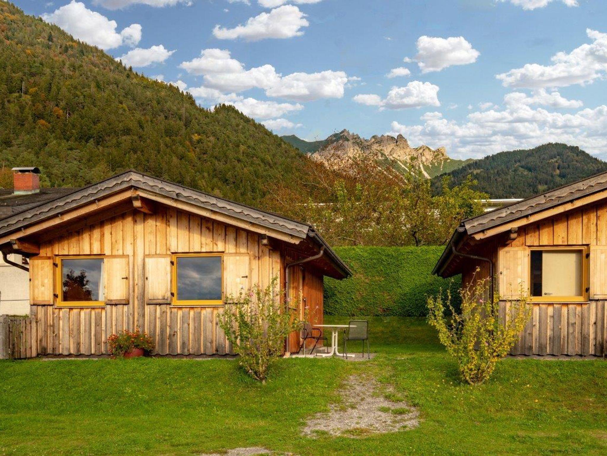 Unsere 2 Bungalows in natürlicher Holzbauweise mit herrlichem Blick auf die Berge