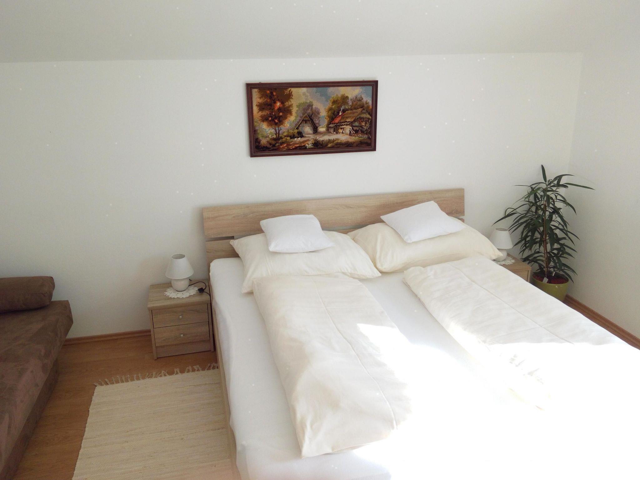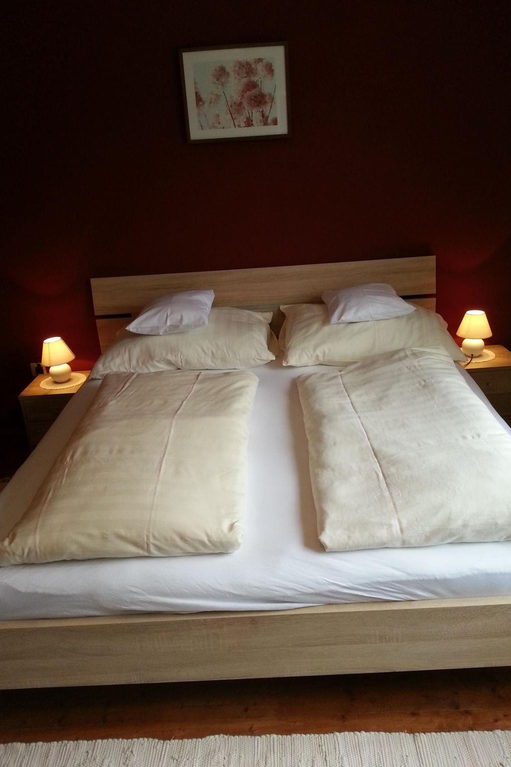 The 120m² oasis of well-being is on the ground floor and the first floor and allows a maximum of 10 people to leave their everyday working lives far behind. After an exciting day for both adults and children, you can look forward to perhaps playing a game together on the big sofa in one of the two living room-kitchens in the two apartments. A wood-burning stove creates a particularly cosy atmosphere. While someone is conjuring up breakfast, lunch or dinner in the fully-equipped kitchen with a four-ring stove and oven, coffee machine and fridge with freezer compartment, the other guests can watch an interesting film (satellite TV) or share their experiences with friends at home via the Internet. There are two separate bedrooms with double beds. One of bedrooms on the first floor has a balcony with a view of the surrounding mountains, and a fifth bed (sofa bed) can be added to this room if required. The spacious bathroom has a shower with massage jets, for relaxing at the end of the day. The lower apartment also has two separate bedrooms, and a sofa bed can be added to one of them.