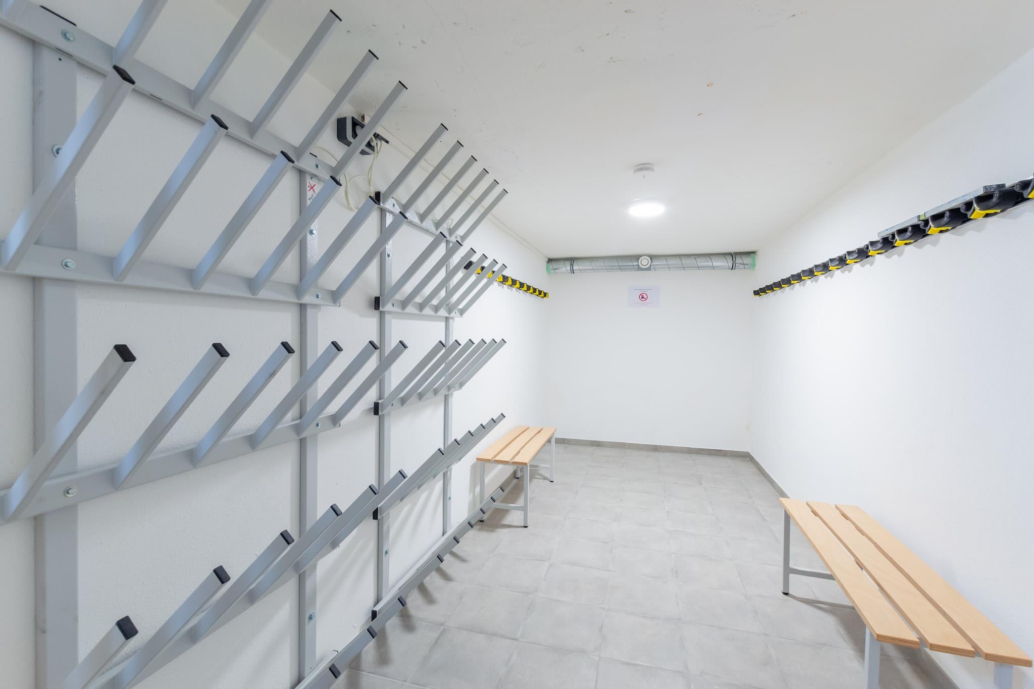 Ground floor: (Sitting room(seating area, balcony or terrace), bedroom(double bed(boxspring, 180 x 200 cm), balcony or terrace), bedroom(double bed(boxspring, 180 x 200 cm), balcony or terrace), bedroom(double bed(boxspring), balcony or terrace), bedroom(double bed(boxspring, 180 x 200 cm), balcony or terrace), walk-through bedroom(double bed(boxspring, 180 x 200 cm), balcony or terrace), bathroom(shower, washbasin, toilet), bathroom(shower, washbasin, toilet), bathroom(shower, washbasin), toilet) On the 1st floor: (Sitting room(TV, seating area, balcony), bedroom(double bed(boxspring), balcony), bedroom(double bed(boxspring, 180 x 200 cm), balcony), bedroom(double bed(boxspring, 180 x 200 cm), balcony), bedroom(double bed, balcony), walk-through bedroom(double bed(boxspring, 180 x 200 cm), balcony), bathroom(shower, washbasin, toilet), bathroom(shower, washbasin, toilet), bathroom(shower, washbasin), toilet, washing room(tumble dryer)) On the 2nd floor: (dining room(dining table(24 persons), balcony), open kitchen(cooker, coffee machine, oven, microwave, dishwasher, fridge), bedroom(double bed(boxspring, 180 x 200 cm), balcony), Bedroom with bathroom(double bed(boxspring, 180 x 200 cm), shower, washbasin, toilet, balcony), bathroom(shower, washbasin, toilet), roof terrace) Basement: (relaxation area(sauna, deckchairs), ski storage) TV, bathtub or shower, shower, washing machine, ski boot heaters, heating, terrace, garden, bicycle storage, garden furniture, parking, deckchairs, children's bed