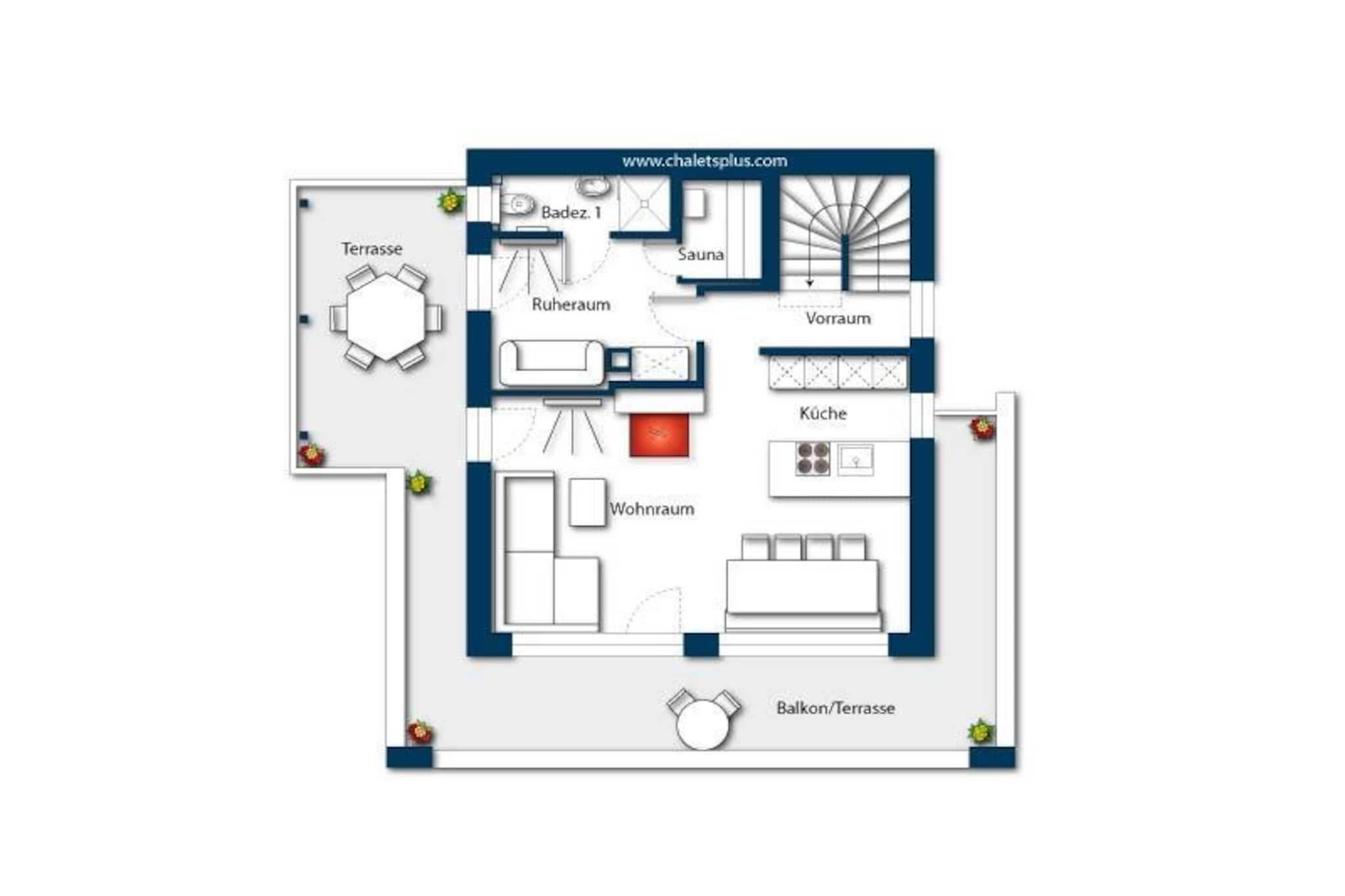Ground floor: (hallway, storage(washing machine), ski storage(ski boot heaters), Internet access) On the 1st floor: (Living room(TV, fireplace), open kitchen(electric kettle, cooker, coffee machine(filter), oven, dishwasher, fridge-freezer), bathroom(shower, washbasin, toilet), Landing, relaxation area(seating area, sauna), balcony, terrace) On the 2nd floor: (bedroom(double bed), bedroom(double bed), Bedroom with bathroom(double bed, shower, washbasin, toilet), bathroom(shower, washbasin, toilet), Landing, balcony) carport, Internet access, heating(central, floor heating), garden furniture, parking, parking, swimming pool(shared with other guests, natural swimming pond)