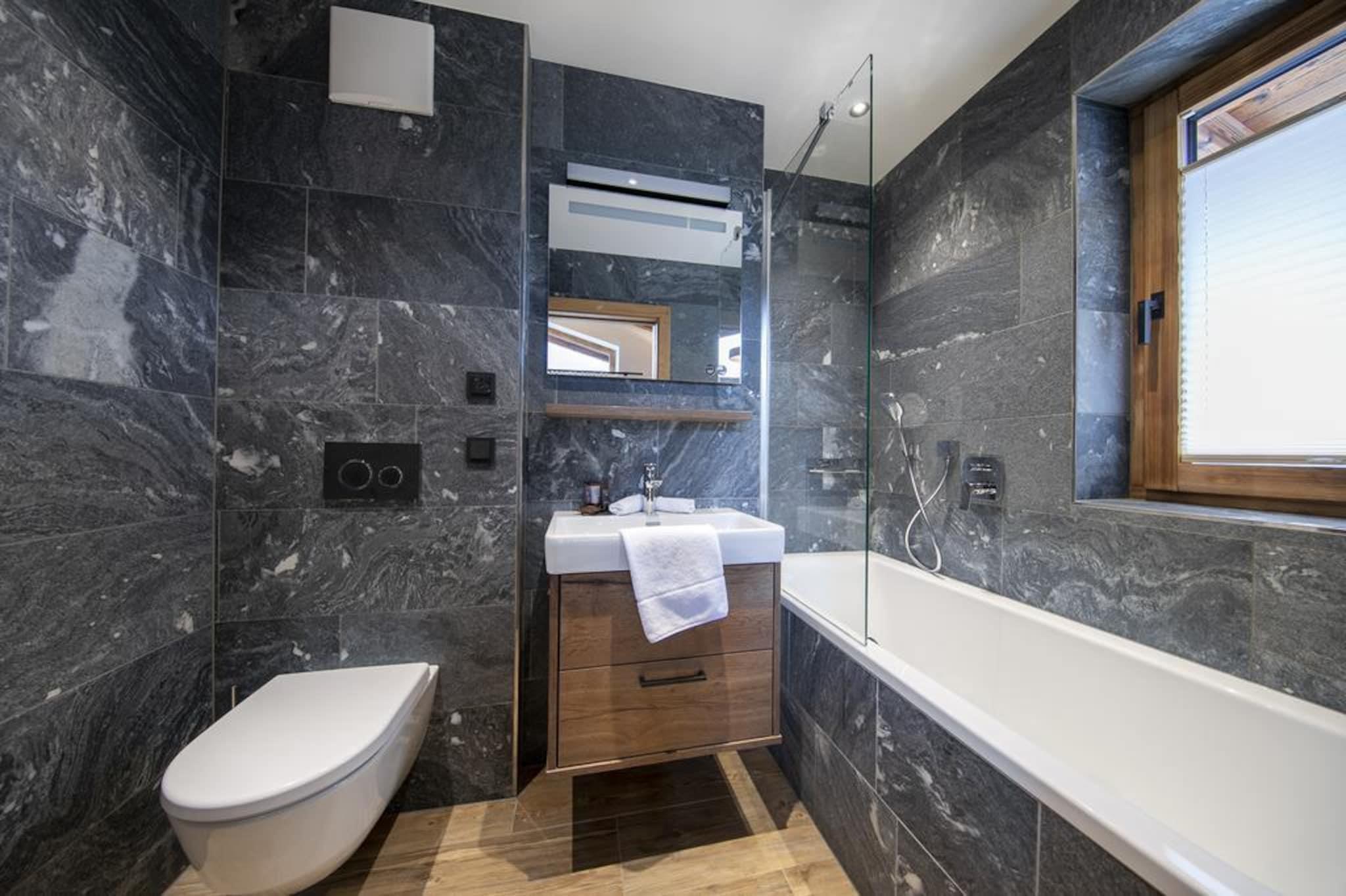 Ground floor: (hallway, Bedroom with bathroom(double bed, shower, washbasin, toilet), Internet access) On the 1st floor: (bedroom(double bed), bedroom(double bed), bedroom(double bed), bathroom(shower, washbasin, toilet), bathroom(shower, washbasin, toilet), bathroom(shower, washbasin, toilet)) Living room(TV(cable, satellite, digital)), Kitchen(oven, combination microwave, microwave, dishwasher, fridge-freezer), relaxation area(shower, sauna, toilet, deckchairs), ski storage, carport, Internet access, stove(tiled), balcony or terrace, parking, parking, swimming pool(shared with other guests, natural swimming pond)