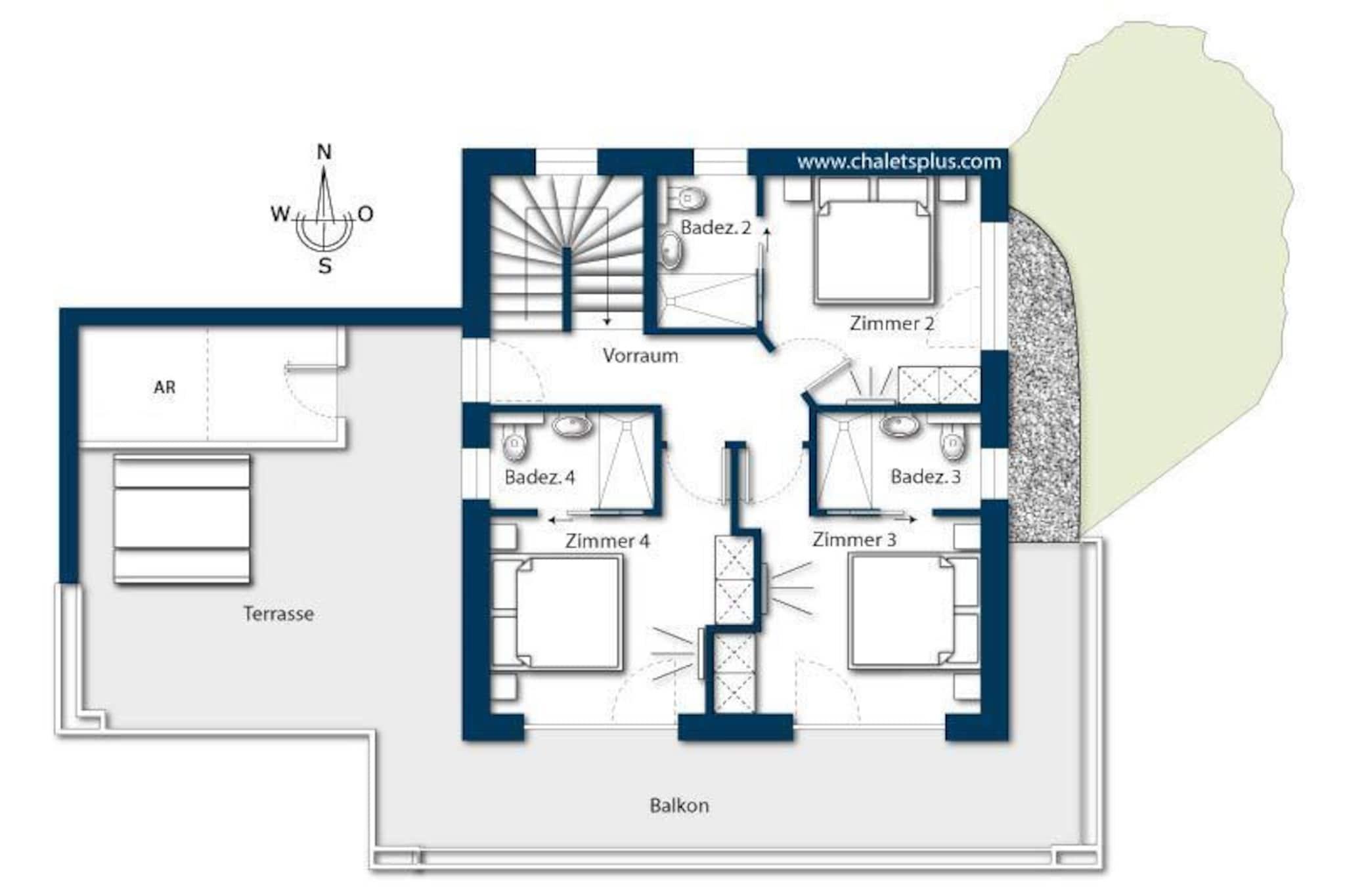 Ground floor: (hallway, Bedroom with bathroom(double bed, shower, washbasin, toilet), Internet access) On the 1st floor: (Living room(TV, balcony), open kitchen(cooker, oven, dishwasher, fridge-freezer), toilet) On the 2nd floor: (Bedroom with bathroom(double bed, bunk bed, shower, washbasin, toilet), Bedroom with bathroom(double bed, shower, washbasin, toilet), Bedroom with bathroom(double bed, shower, washbasin, toilet)) relaxation area(shower, sauna, toilet, deckchairs), ski storage, carport, Internet access, stove(tiled), balcony or terrace, parking, parking, swimming pool(shared with other guests, natural swimming pond)