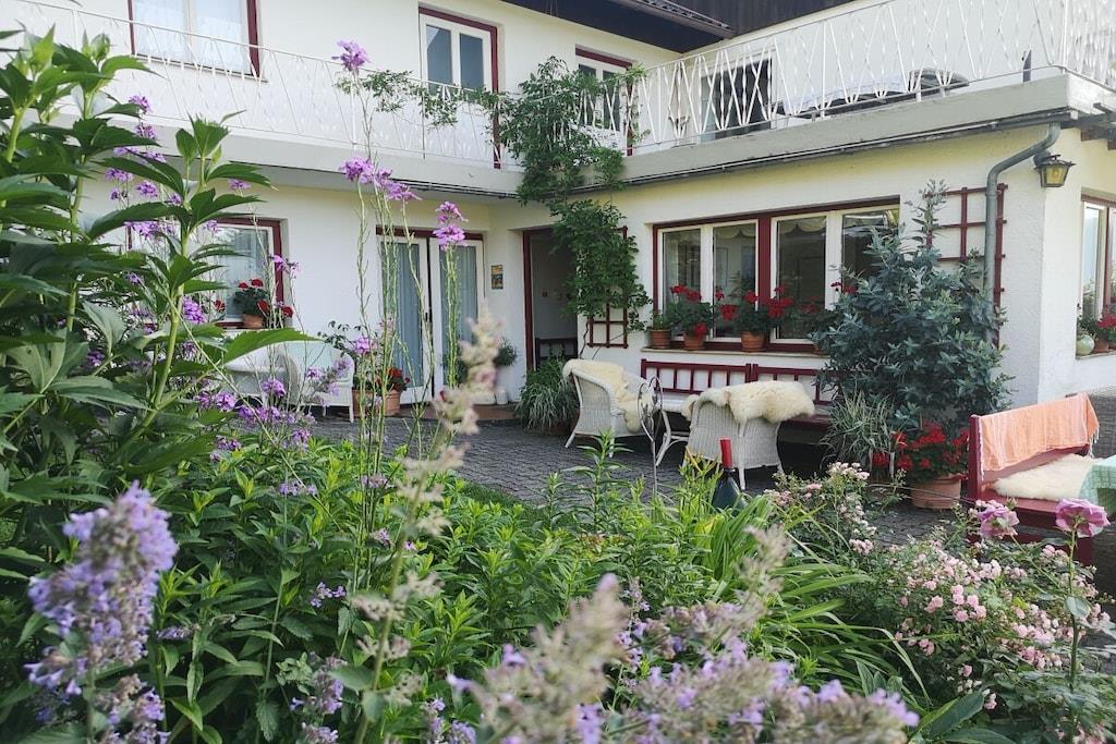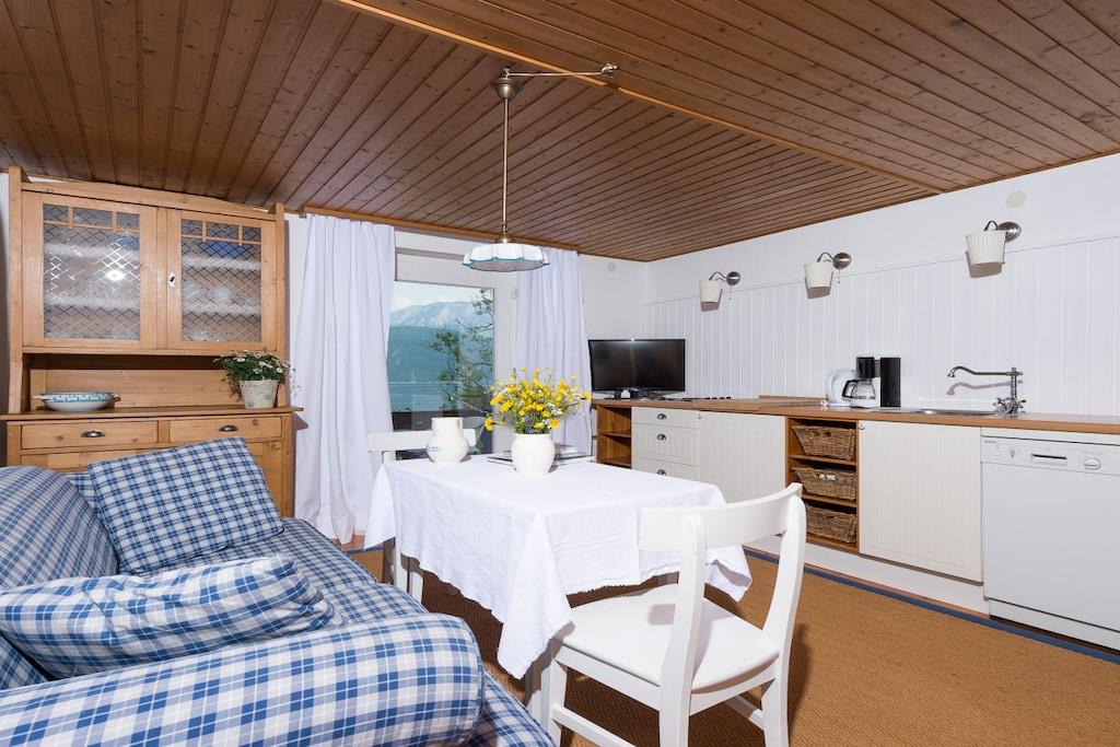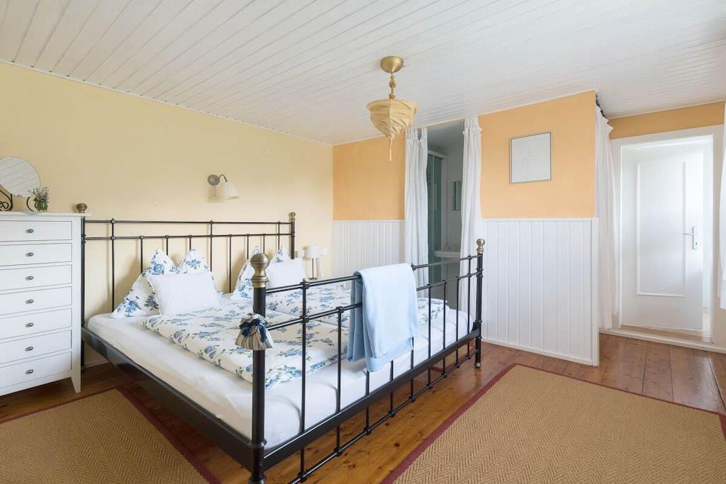 Find relaxation and unwind. Sleep in or read a good book. Go to the lake early and immerse yourself in the water. Hike, run, cycle, and take excursions. Breathe in the fresh air, gaze into the distance, eat well, drink a glass of wine, enjoy, and experience joy and inner peace. A promise of unforgettable holidays. We love the simple way of life. "Blue-making": accents of bold blue and soft white, plenty of charm through loving details and stylish furniture. A mix of old and new. A place to feel good. Right from the start. Our 40 sqm holiday apartment is ideal for two people and has one bedroom with a double bed, a living room with a kitchenette, a shower in the bedroom, and the toilet has a window for ventilation. Located on the first floor of the house on the east-south side.