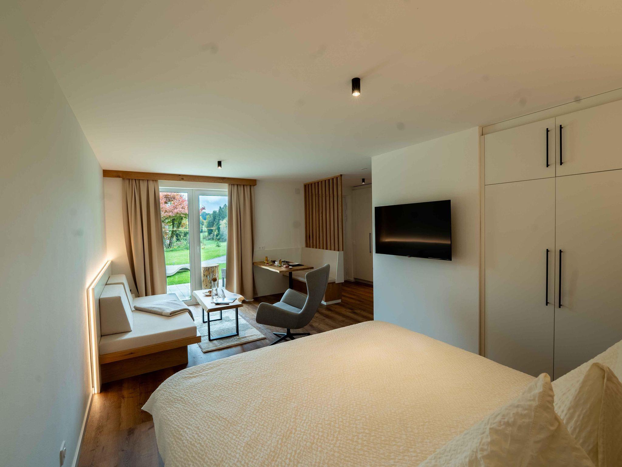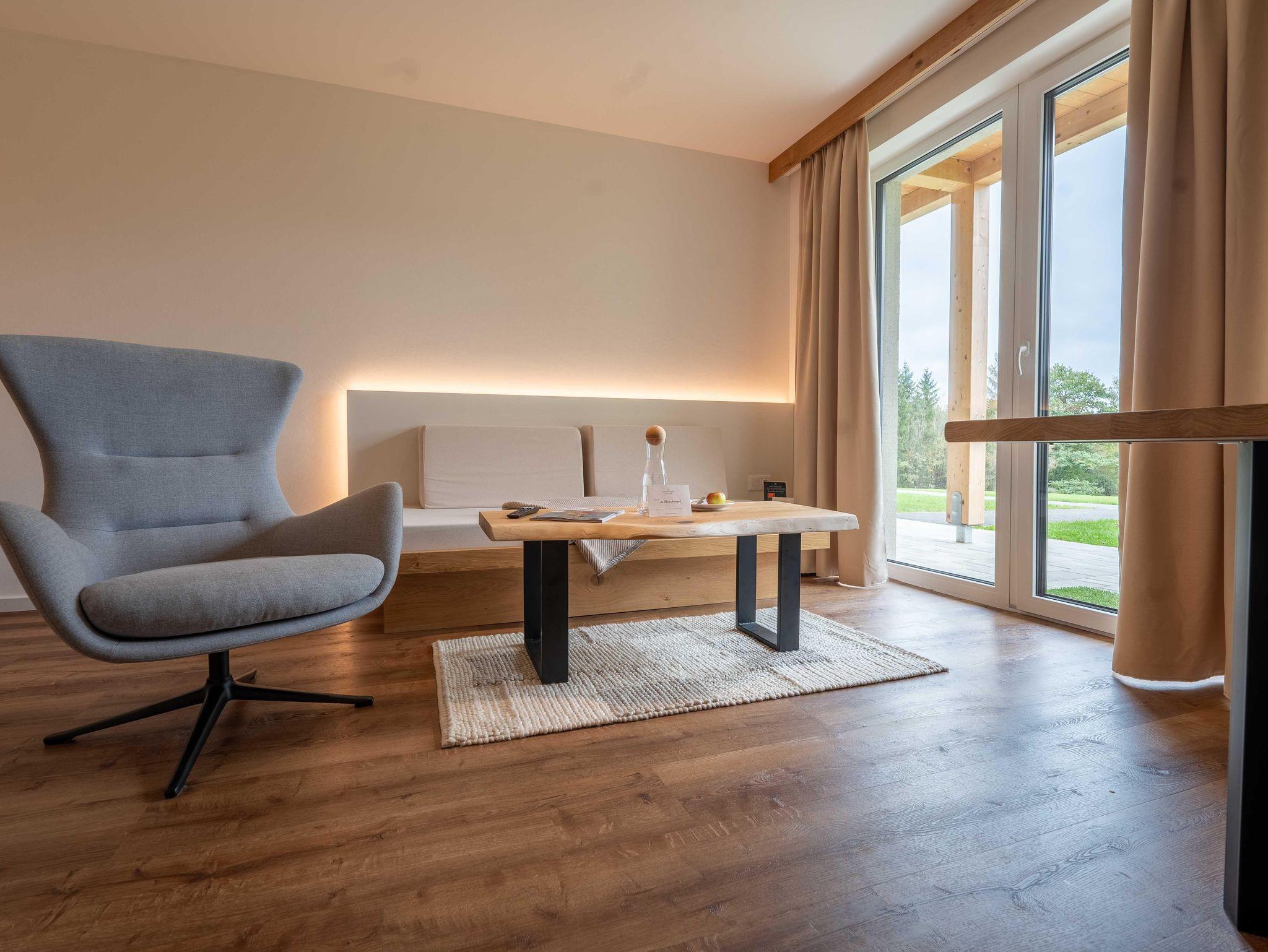 Die Natur Garten Suite Weißtanne verzaubert Menschen durch seine ruhige und zarte Wirkung. Ein Naturmaterial so zart und mit so viel Wirkungskraft. Hell, edel und ganz weich. 37m2 Refugium, Lichterfüllt, Warme Naturfarben und nichts stört.