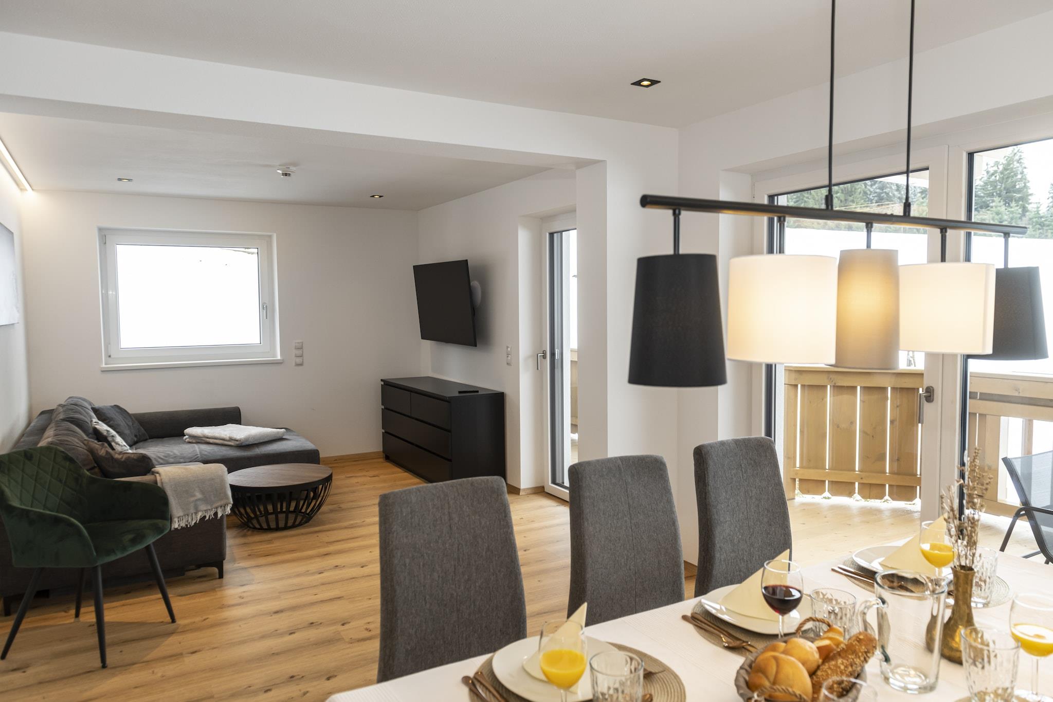 In this spacious apartment, modern design meets Alpine comfort. Large windows not only provide plenty of light but also a stunning view of the Schatzberg mountain. Families and groups of friends can enjoy their stay in complete comfort: Three cozy bedrooms, two modern bathrooms, and a practical pull-out couch offer space for up to six people. The private balcony and garden invite you to relax in the mountain air, while the fully equipped kitchen with a stove, oven, microwave, and coffee maker invites you to cook together. Wi-Fi, a TV, and other amenities complete the feel-good package. The elevator in the stairwell also provides convenient access. Here you will experience your personal escape – modern, cozy, and with a unique Alpine panorama.