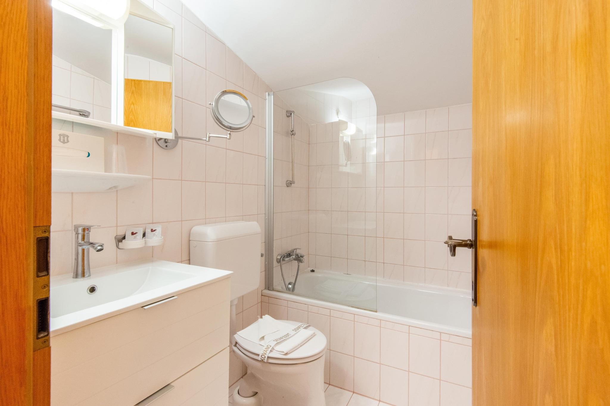 This holiday flat is ideal for a large group. Formerly run as a hotel, the house has many amenities, such as a shared sauna, an indoor pool and a large garden. In winter, you can store your skis and ski boots in the shared ski room. The flat has a well-equipped kitchen and a cosy living room with seating. Each bedroom has its own bathroom. If you are planning a party or simply need more space to sit, the former restaurant area on the ground floor can be rented for a fee. The picturesque Oberau offers a wide range of leisure activities: from hiking, cycling and e-biking to skiing and a horse-drawn carriage ride. The Drachental family park is just a 3-minute drive from the accommodation. In summer, the outdoor pool right next to the accommodation invites you to cool off.