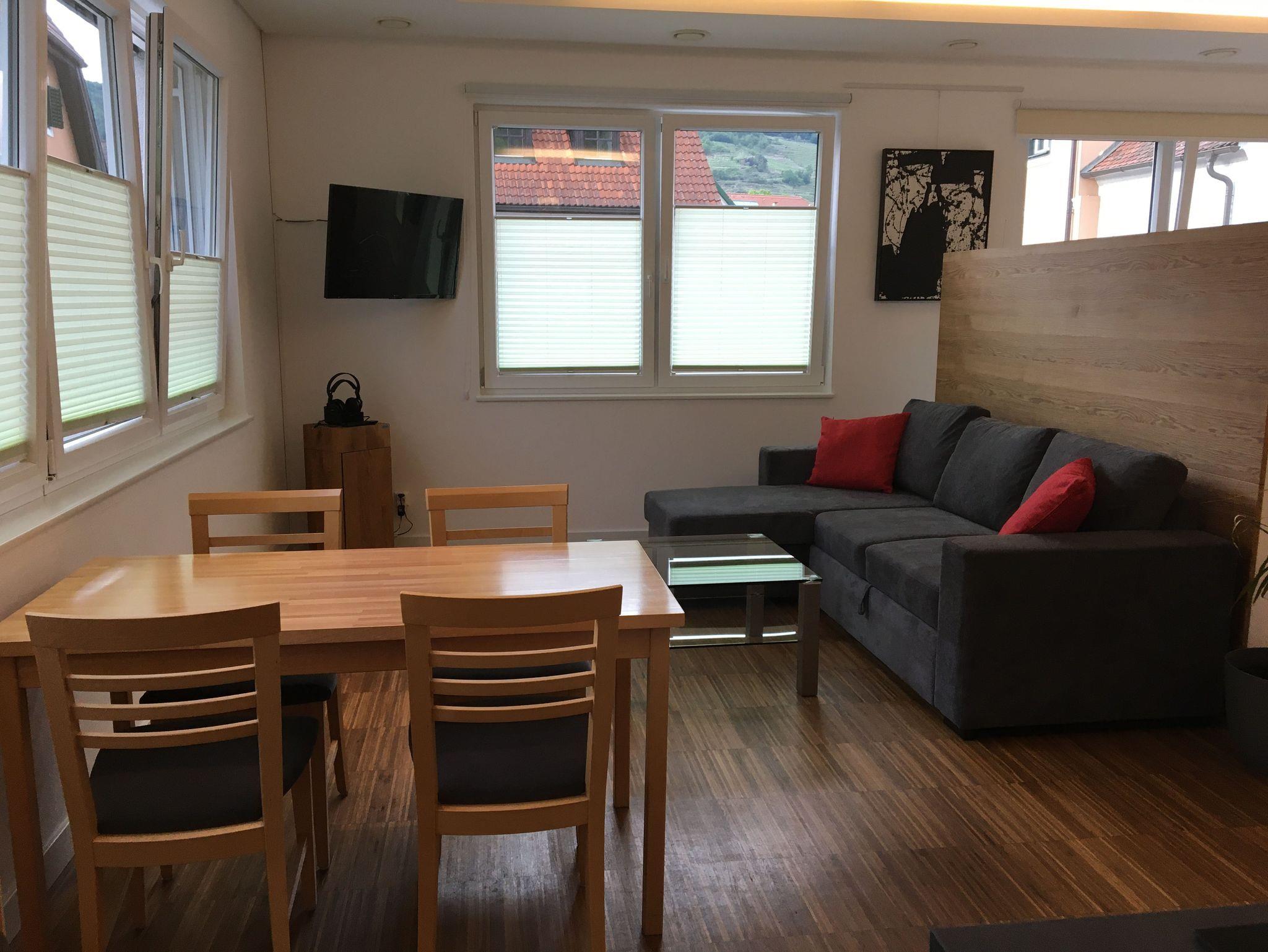 • Donaublick und Loibenbergblick (je ca. 50?m², getrennte Schlafzimmer, Wohnbereich mit Schlafsofa, Küchenzeile, Bad, WLAN, Fernseher & Zugang zur Terrasse).