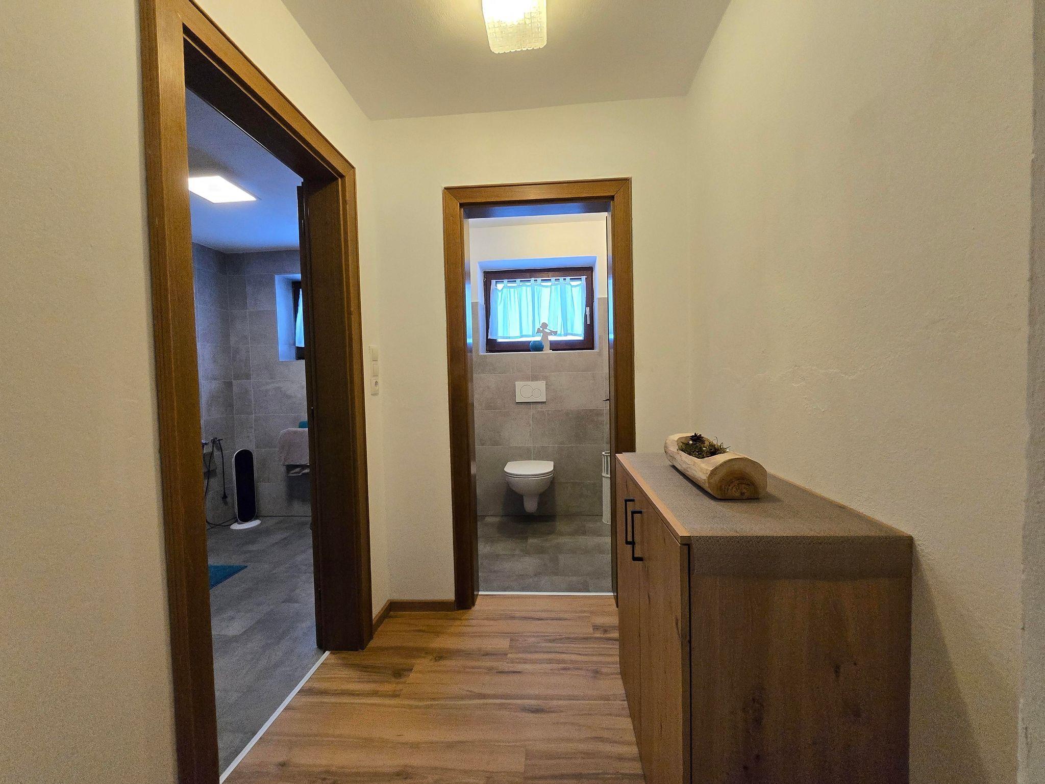 Die größere Wohnung im Obergeschoß eignet sich hervorragend für größere Gruppen oder Familien und bietet Platz für bis zu 6 Personen. Mit drei Schlafzimmern, einer rustikalen Stube, einer gut ausgestatteten Küche, einem modernen Badezimmer mit WC und einem seperaten WC bietet diese Wohnung ausreichend Platz für einen komfortablen Aufenthalt.