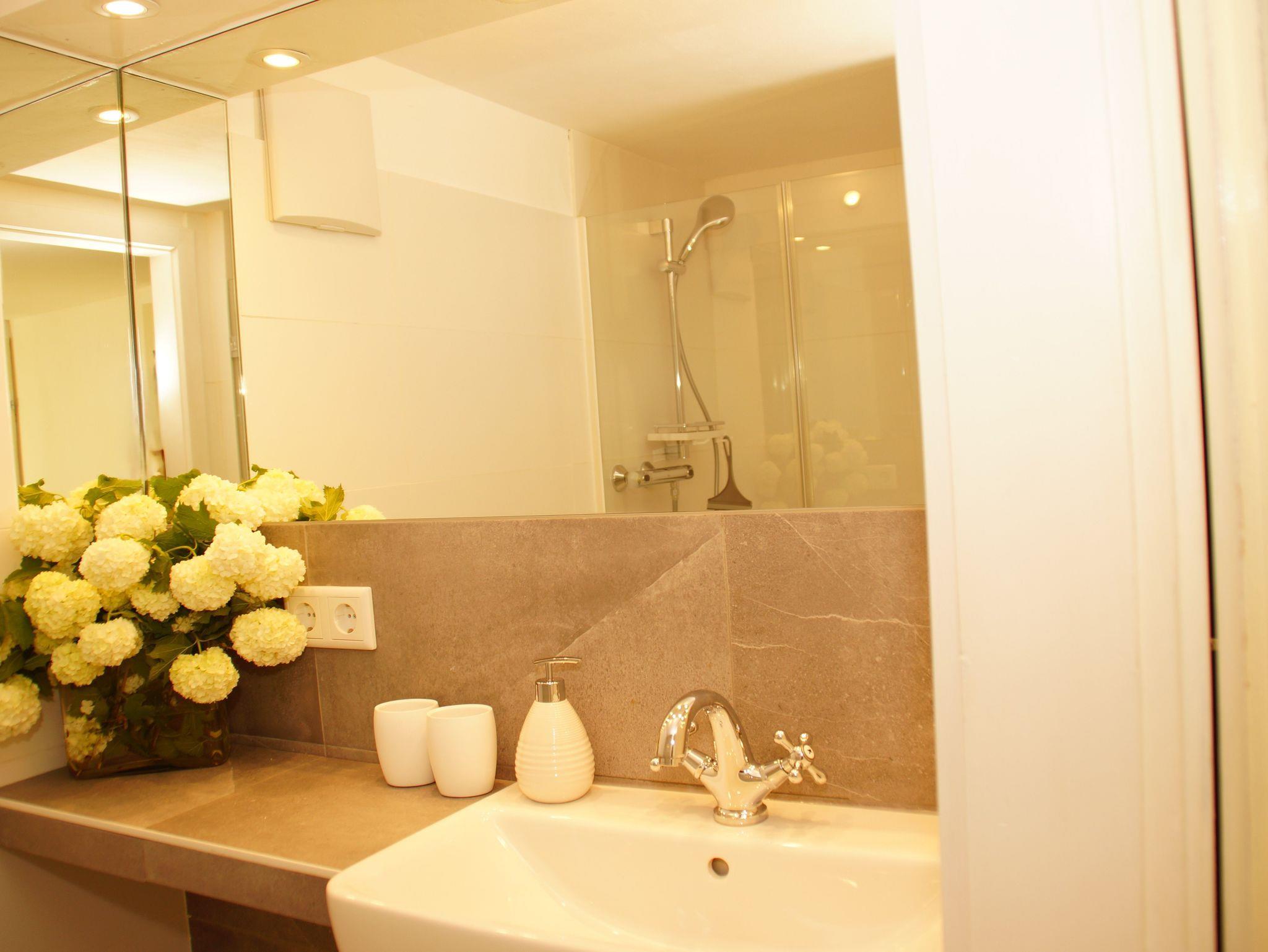 Das kleine aber feine, neu adaptierte, Badezimmer wird von einem extra Vorraum erweitert. Dort ist z. B. genug Platz zum Aufstellen eines Wäscheständers.