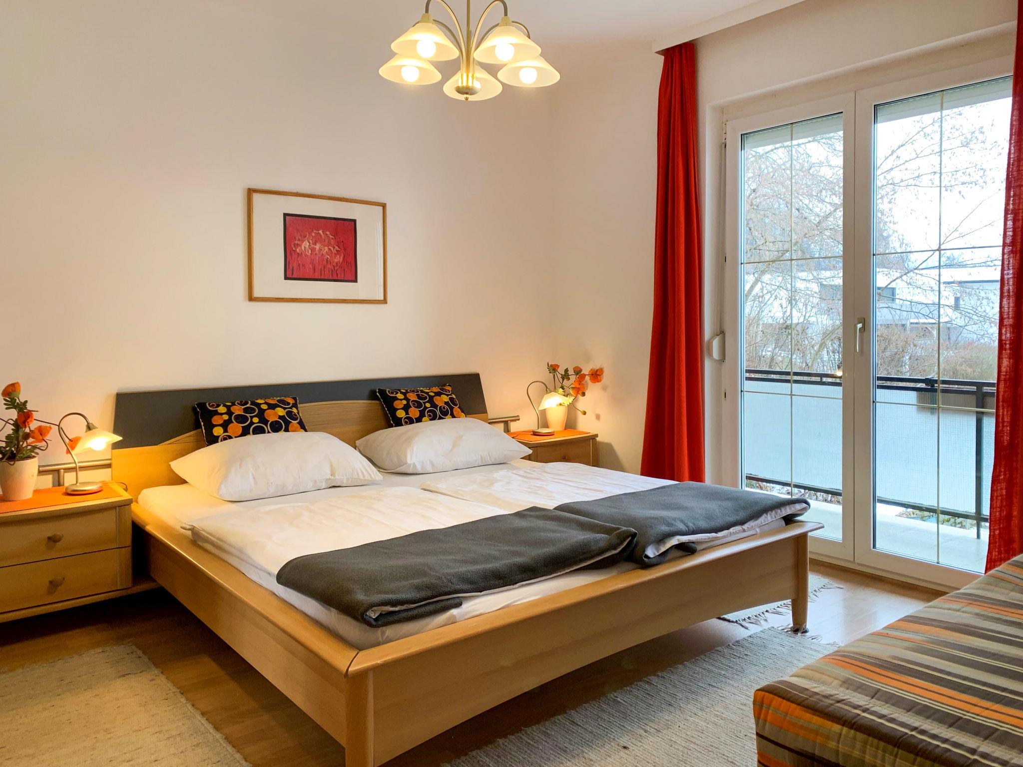 "Meran", 3-room apartment 70 m2 on 1st floor. Bright, tasteful furnishings: living/dining room with dining table, satellite TV and radio. Exit to the balcony. 1 room with 1 bed and 1 double bed. Exit to the balcony. 1 room with 1 bed and 1 double bed. Kitchen (4 hot plates, oven, microwave, electric coffee machine). Shower, sep. WC. Heating. Parquet floors. Small balcony, south facing position, small balcony, south facing position. Balcony furniture. Very beautiful panoramic view of the lake. Facilities: baby cot. Internet (WiFi). Please note: non-smokers only. Maximum 1 small pet/ dog allowed.