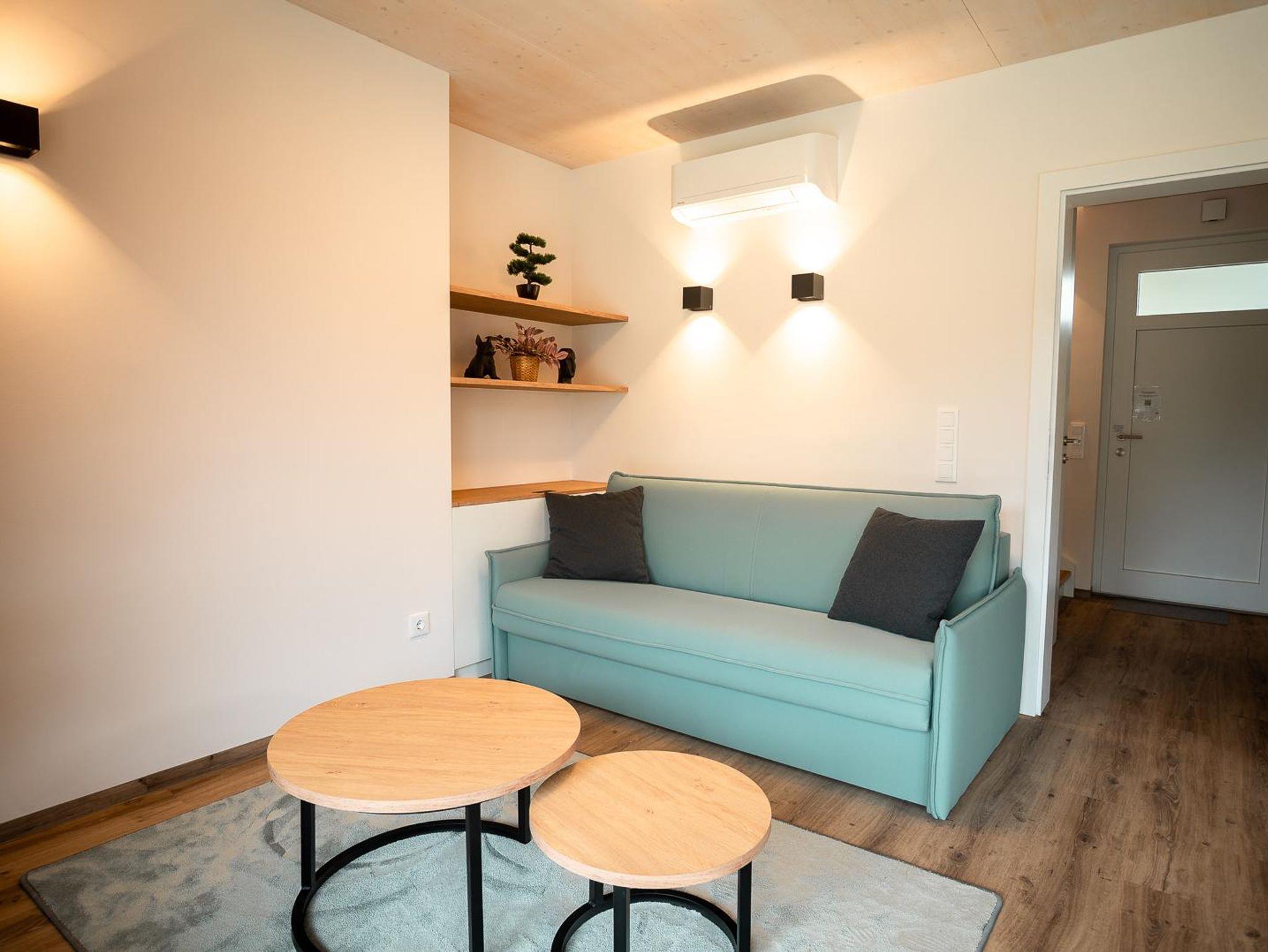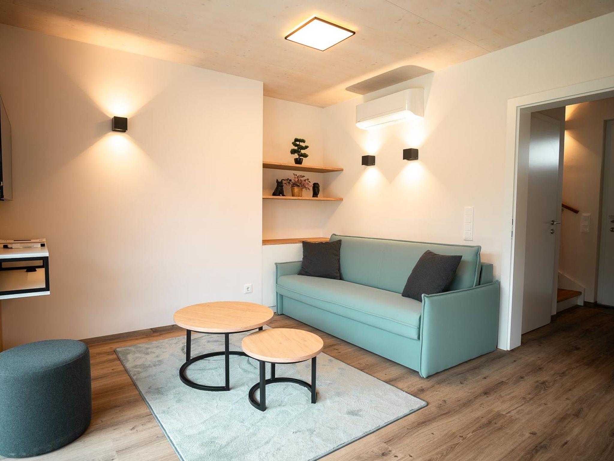 Willkommen in der OpenSky Wörthersee Lodge 5 – dein perfekter Rückzugsort für einen entspannten Aufenthalt mit bis zu vier Personen. Die 60 m² große Lodge erstreckt sich über das Erd- und Obergeschoss und bietet ein gemütliches Wohnzimmer, eine voll ausgestattete Küche, ein Schlafzimmer mit Badewanne, ein Badezimmer mit Dusche und WC sowie einen privaten Garten. Genieße den Komfort deiner eigenen Unterkunft und entspanne in ruhiger Umgebung. Vom Wohnzimmer aus hast du einen schönen Blick in den Garten. Wir freuen uns auf deinen Besuch!