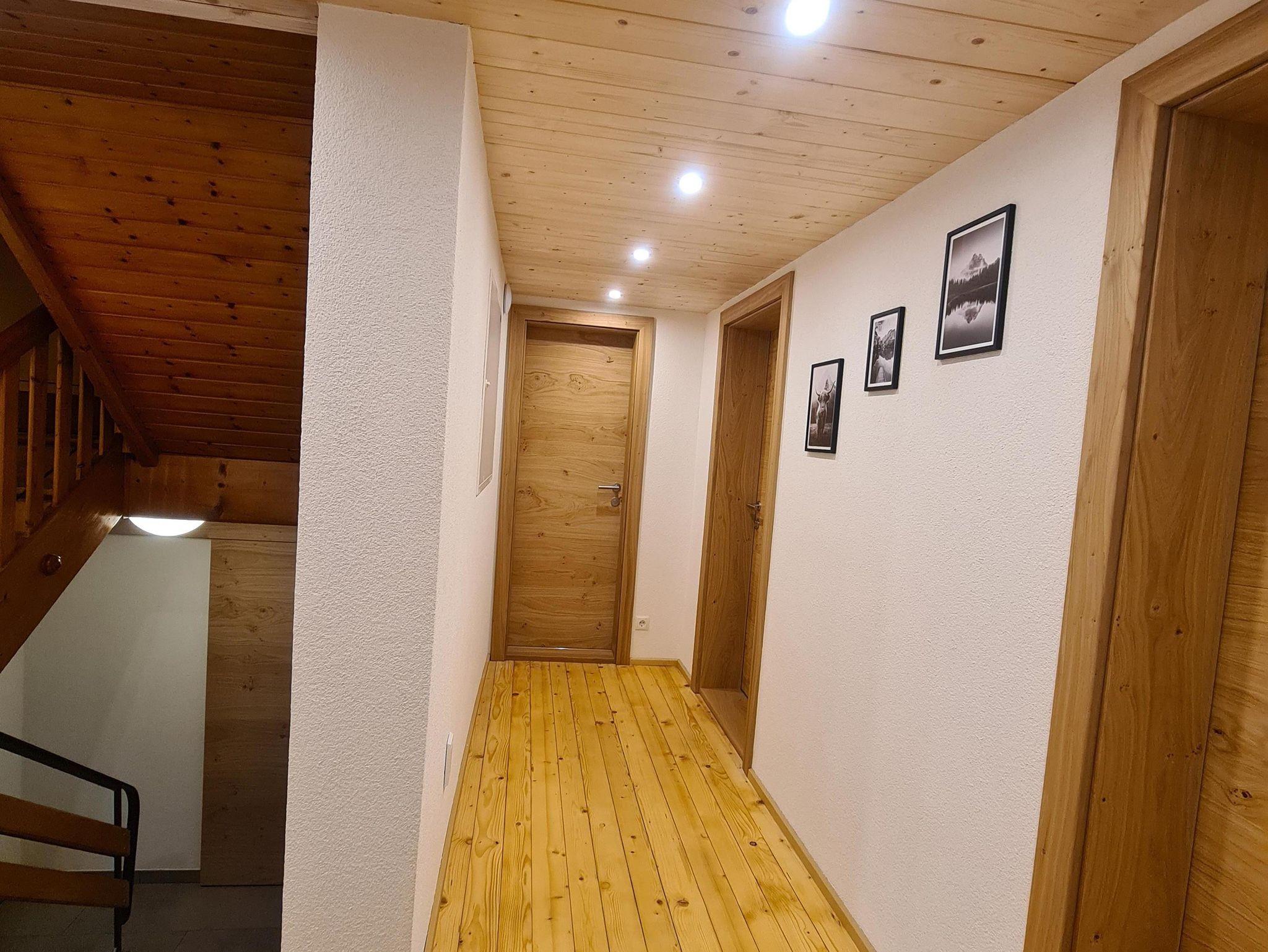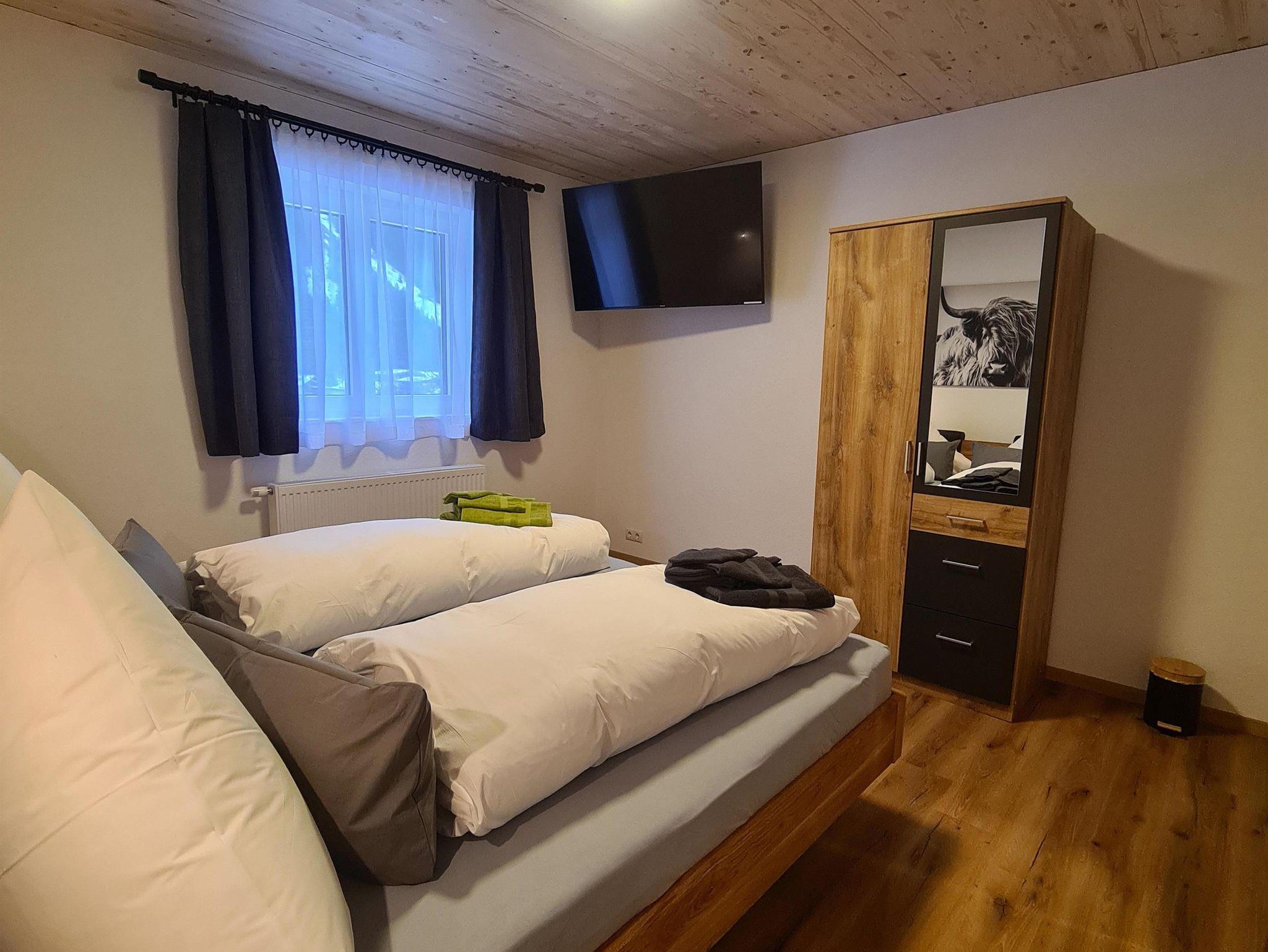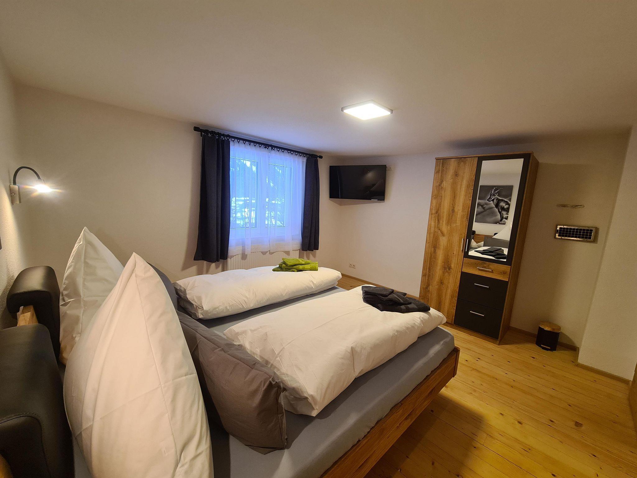 5 Schlafzimmer mit Doppelbetten und TV, 1 Badezimmer mit Dusche & WC,1 Badezimmer mit Dusche. 2 separate WC (in jedem Stockwerk eines). Skiraum mit Skischutrockner ist vorhanden.