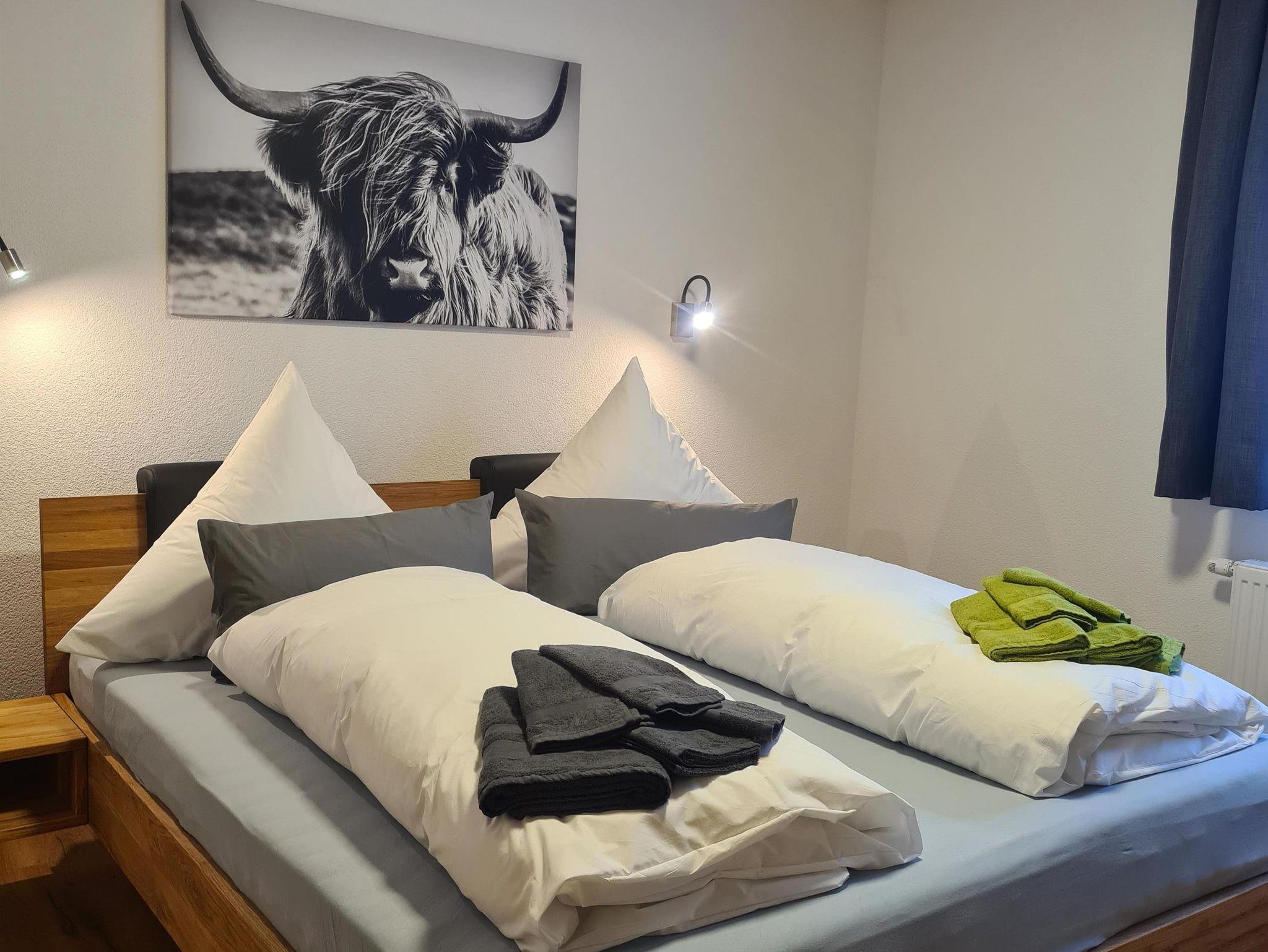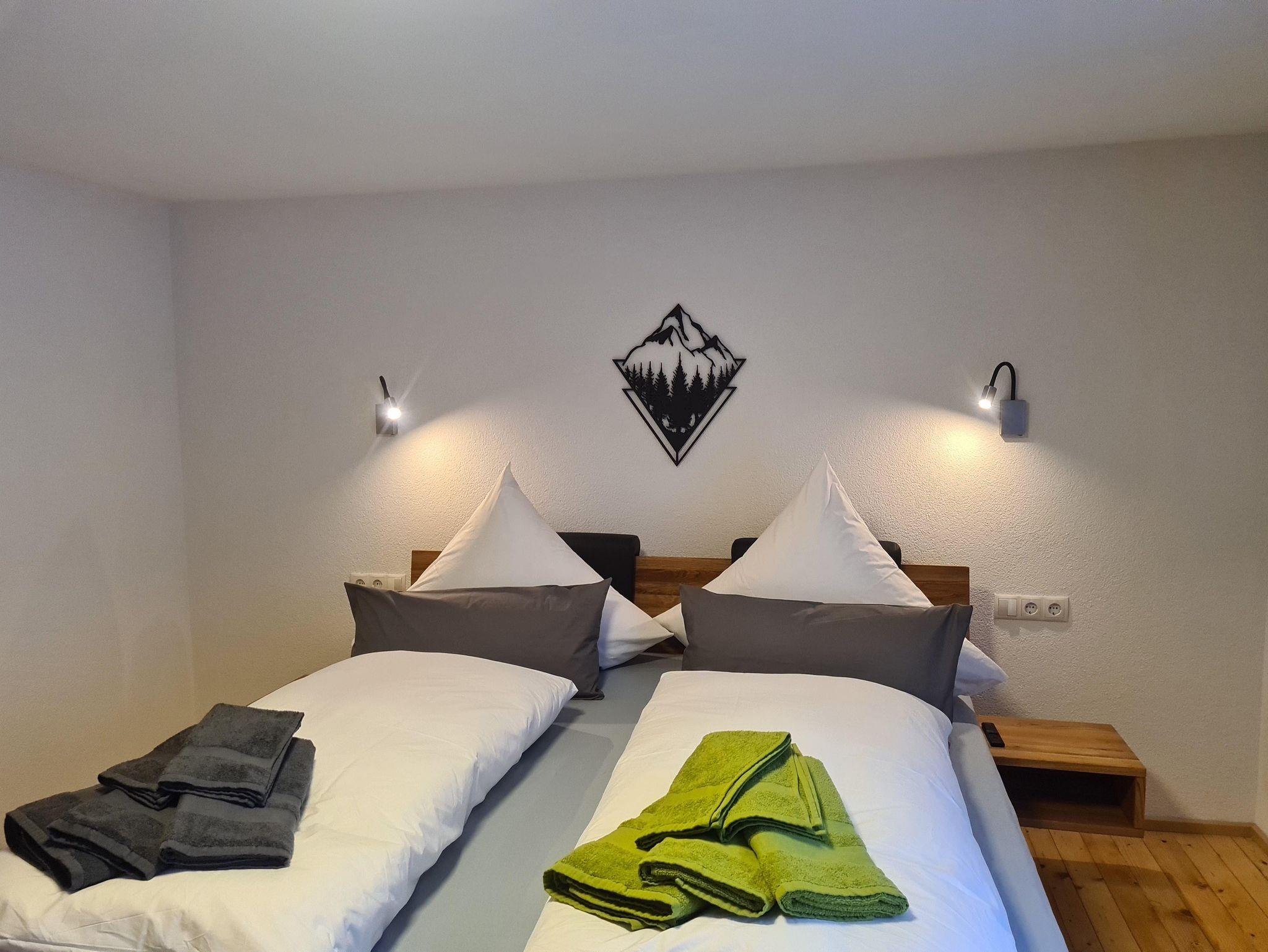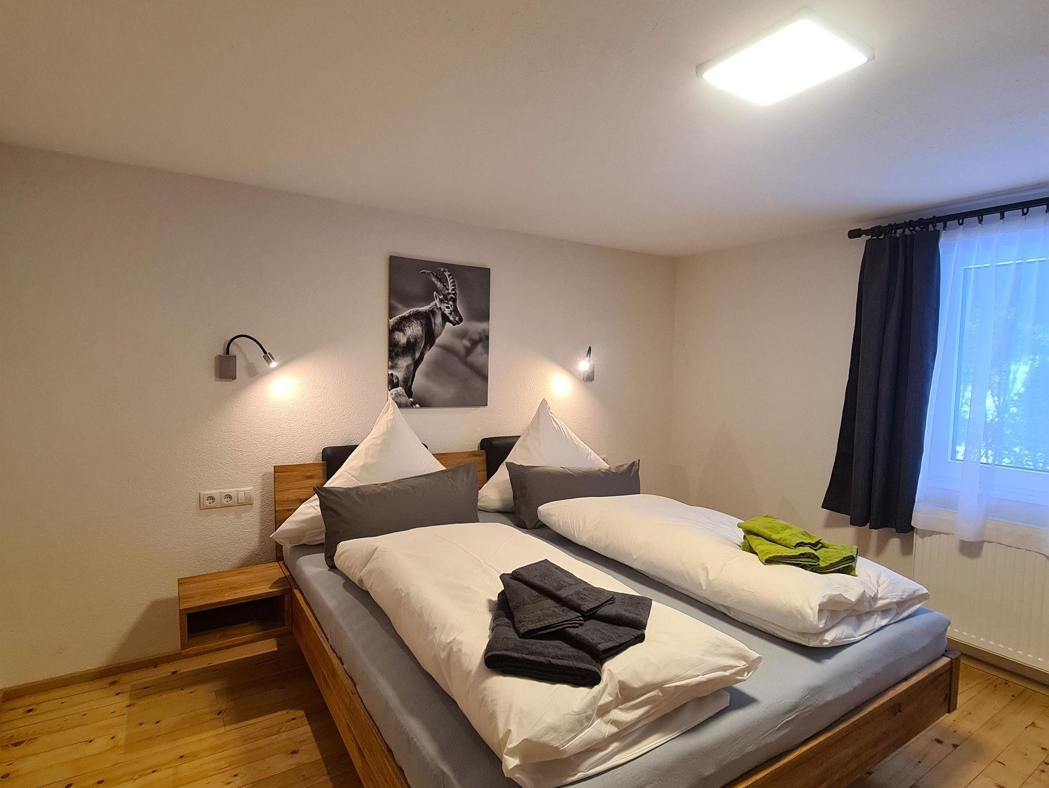 5 Schlafzimmer mit Doppelbetten und TV, 1 Badezimmer mit Dusche & WC,1 Badezimmer mit Dusche. 2 separate WC (in jedem Stockwerk eines). Skiraum mit Skischutrockner ist vorhanden.