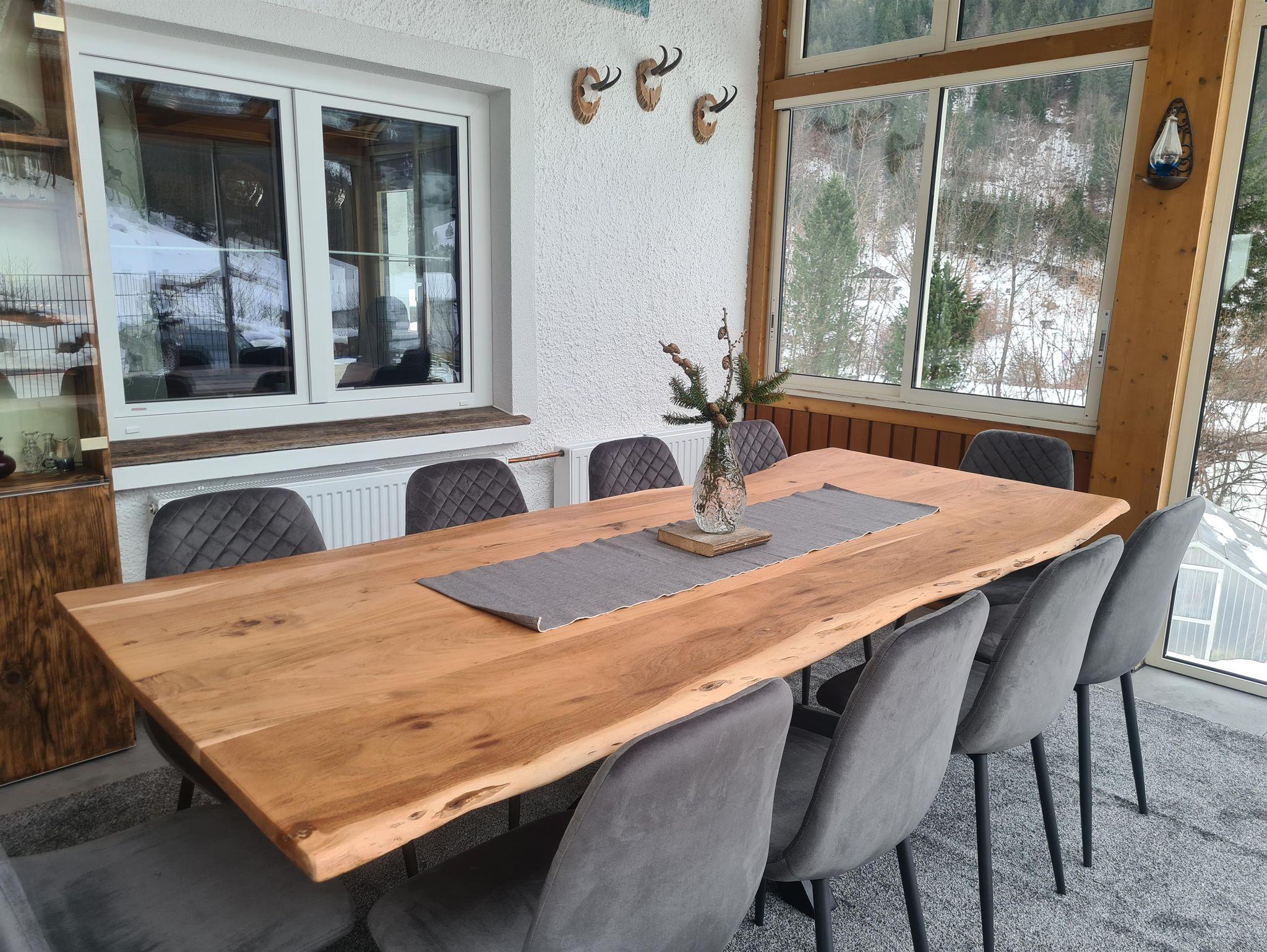Selbstversorgerhaus für 10 Personen mit Montafoner Zirbenstube und einem gemütlichen Wintergarten. Vollausgestattete Küche mit Induktionskochfeld, Geschirrspüler, Backrohr, Mikrowelle, Kühlschrank, Kaffevollautomat,...
