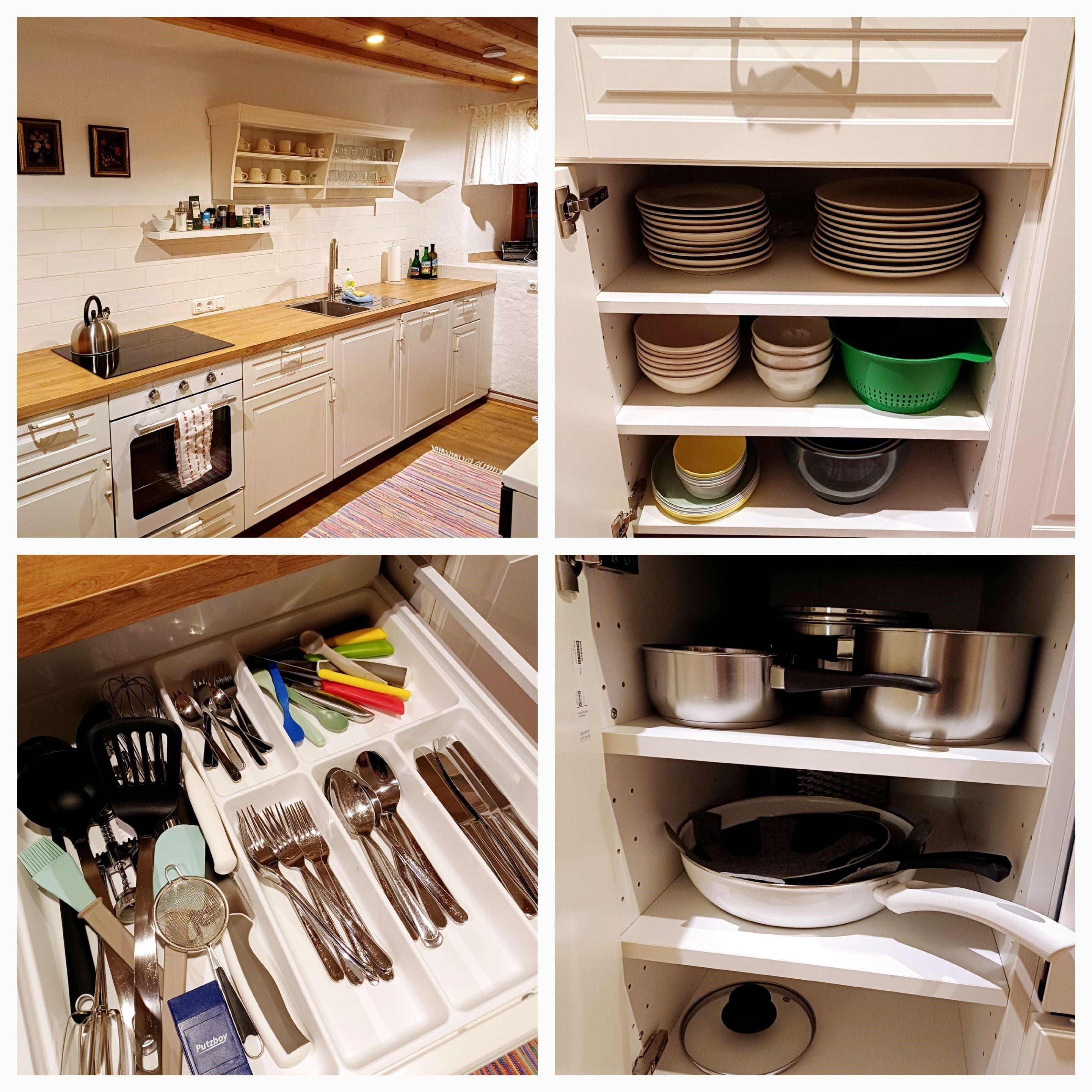 Cooking conveniences (pots, skillet, salt, pepper and oil)