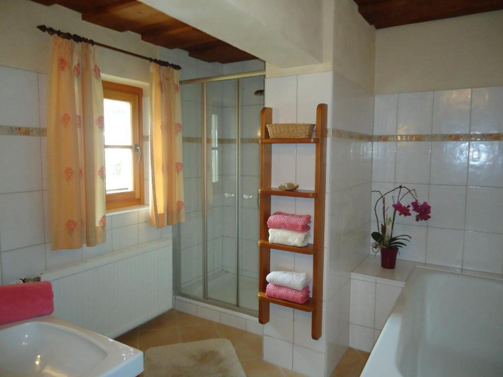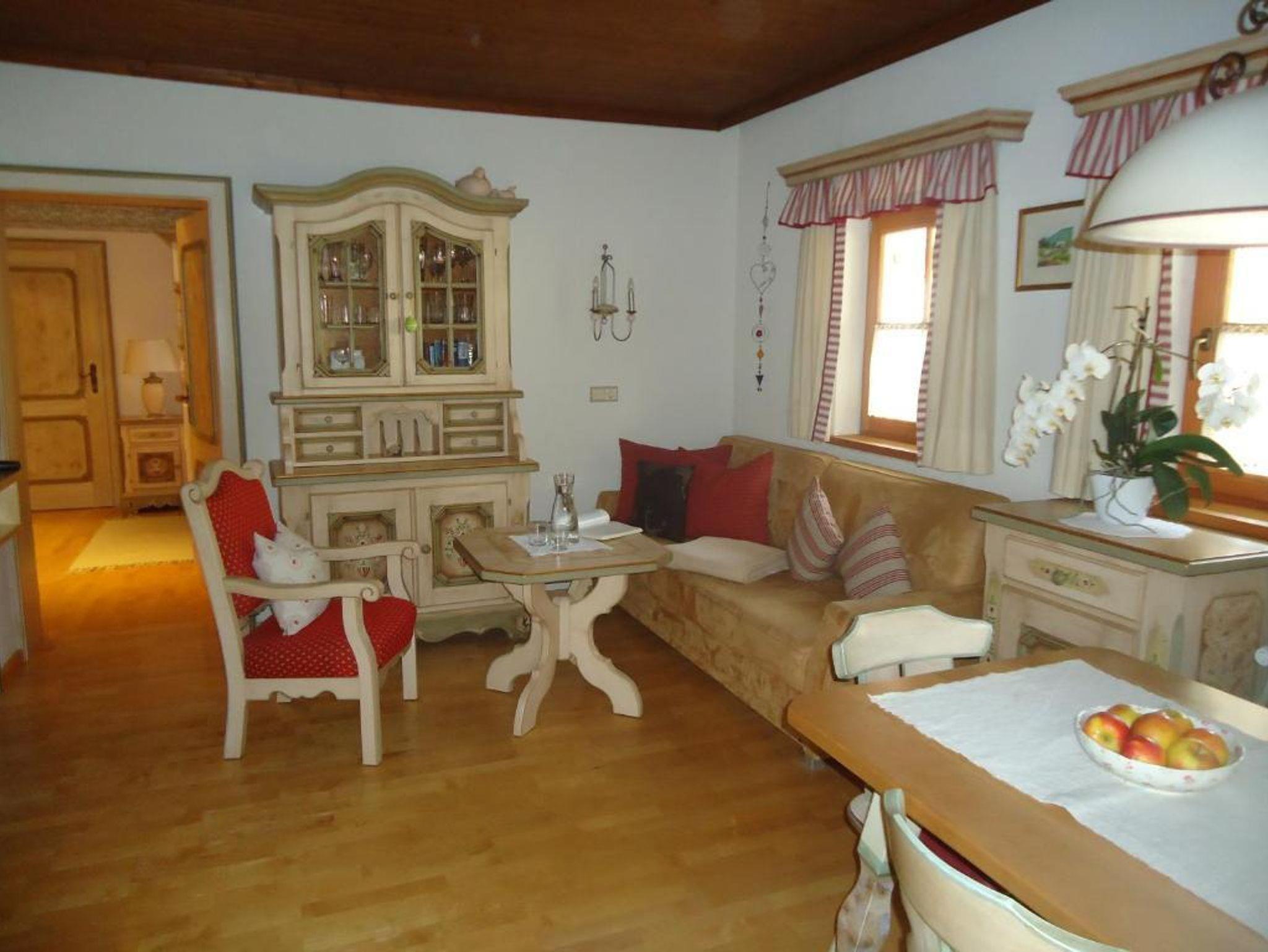 Im gemütlichen Wohnraum mit Sat-TV, Kochnische mit Geschirrspüler und Essecke fühlt man sich schnell wie zu Hause. Zwei Bäder – eines mit Doppelwaschbecken, Wanne und Dusche, das zweite mit Dusche, Waschbecken und separatem WC – sorgen für Komfort. Highlight ist die Infrarotwärmekabine im Vorraum – ideal zum Entspannen nach einem aktiven Tag in den Bergen.