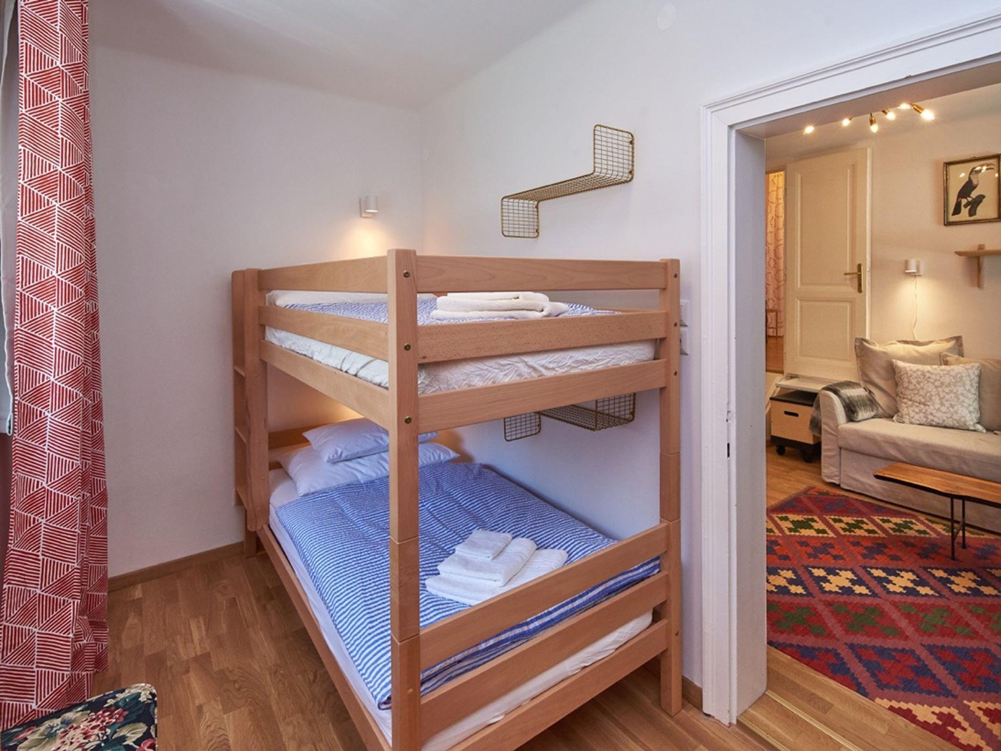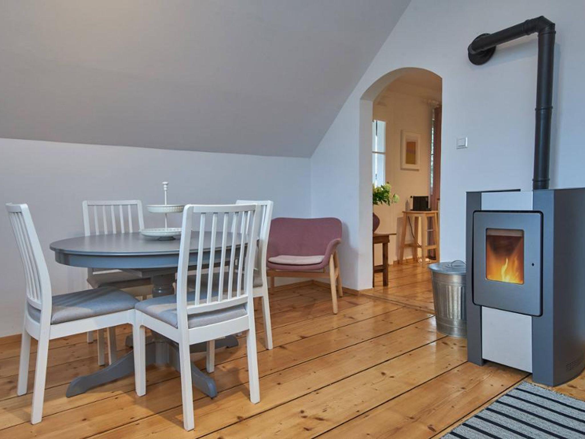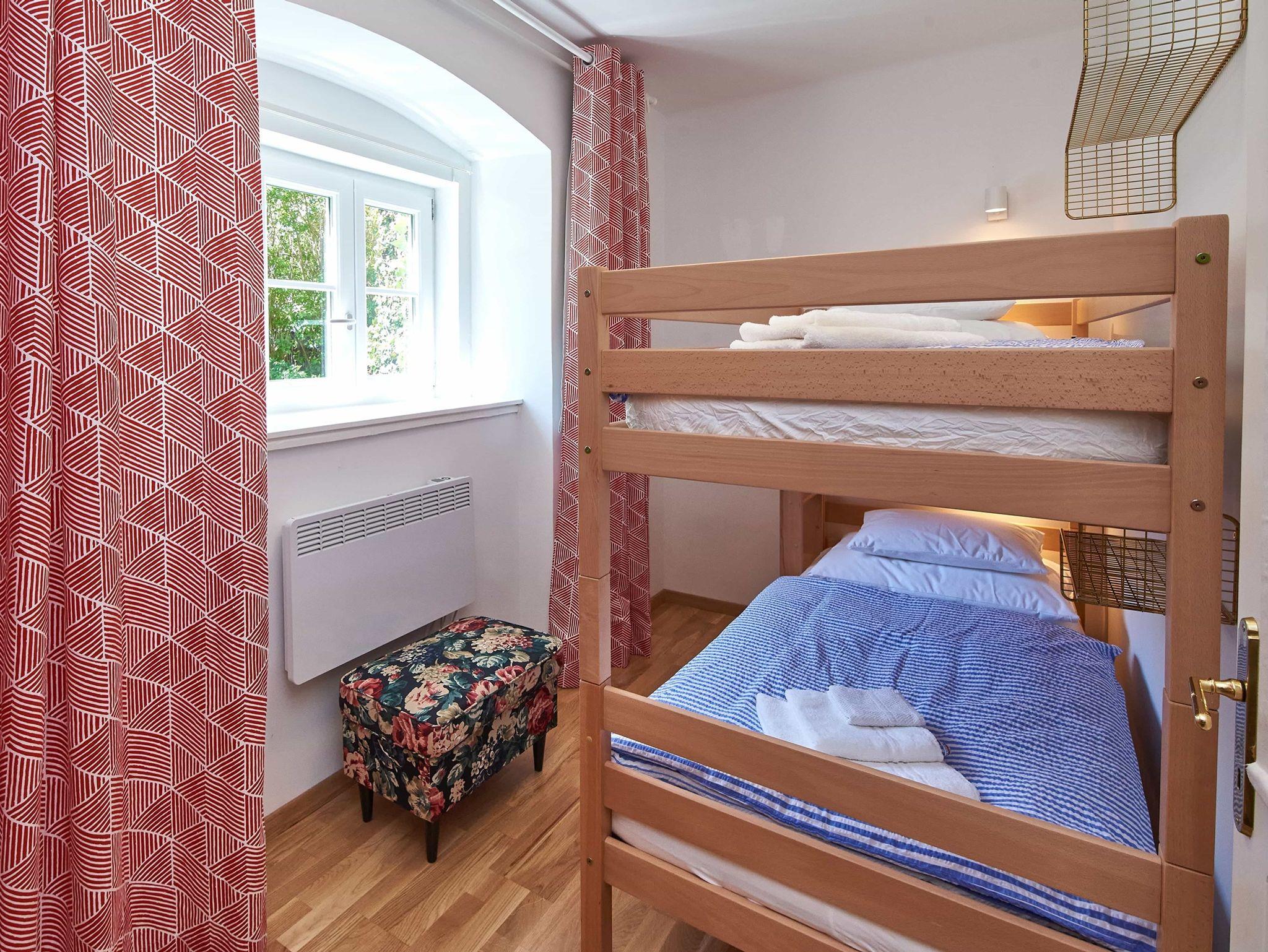 Die modern renovierte Maisonette-Wohnung erstreckt sich über Erdgeschoss und 1. Stock und bietet auf 60 m² viel Platz für Familien oder Gruppen: Zwei separate Schlafzimmer – ein großes Doppelzimmer im Obergeschoss (mit Klimaanlage) und ein weiteres Zimmer mit Stockbett im Erdgeschoss – garantieren Privatsphäre, während das gemütliche Wohnzimmer mit Doppel-Schlafcouch und Digital-TV sowie die voll ausgestattete Küche mit Esstisch für bis zu sechs Personen zum gemeinsamen Verweilen einladen; ein kleines Arbeitszimmer ergänzt das Raumangebot; das Badezimmer mit Badewanne, Fußbodenheizung und WC, ein Waschtrockner, Pelletofen im Wohnzimmer, hochwertige Baumwollbettwäsche, Saunatücher, Parkettböden, abdunkelbare Schlafräume und unbegrenztes WLAN bieten modernen Wohnkomfort auf zwei Ebenen, ein Babybett kann optional gebucht werden.