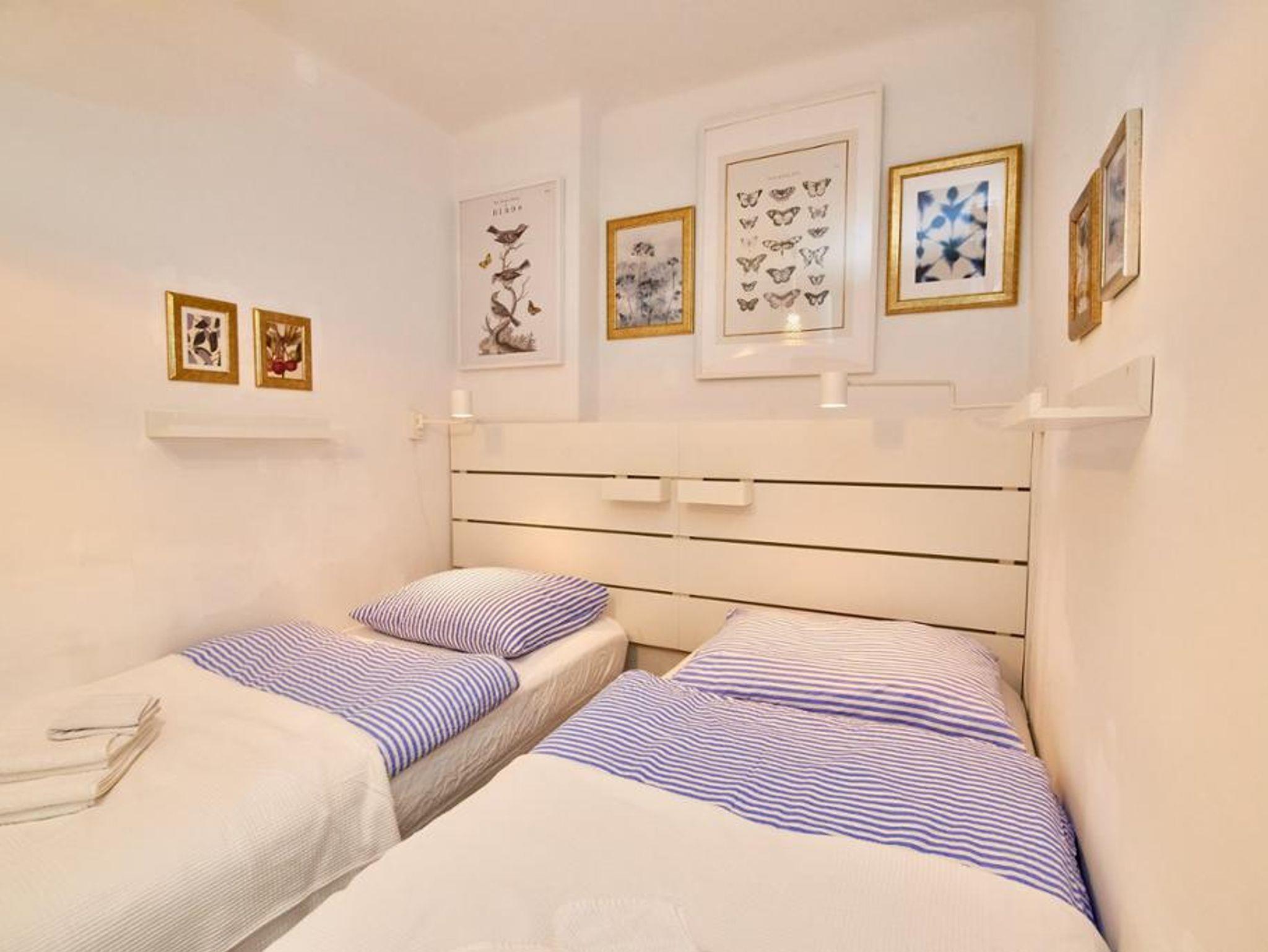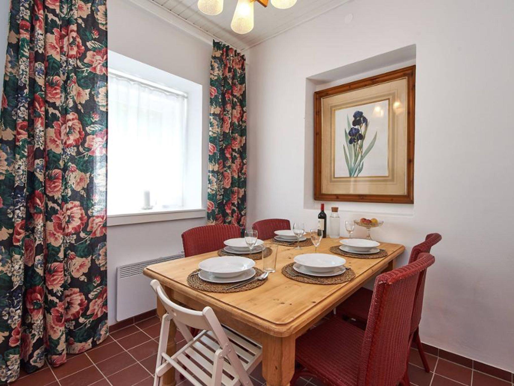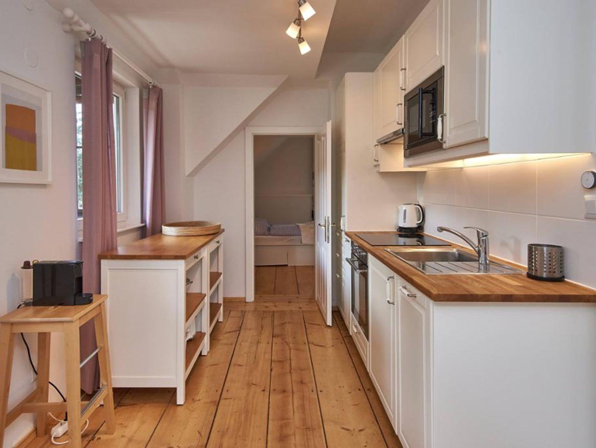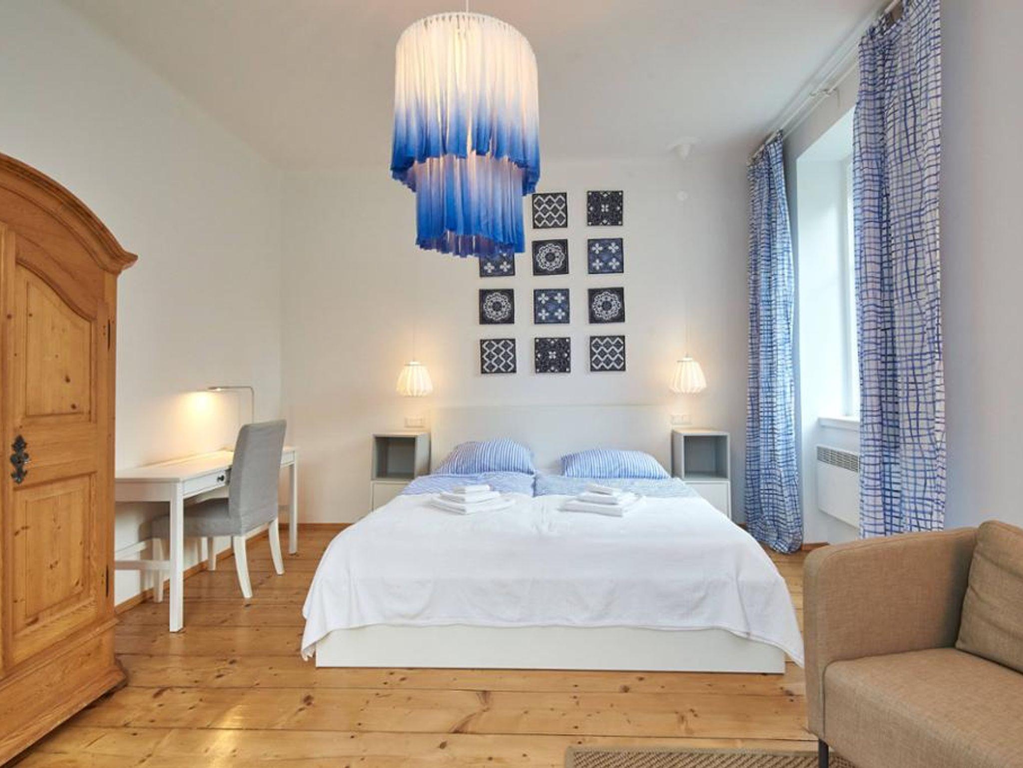 Die modern renovierte Maisonette-Wohnung erstreckt sich über Erdgeschoss und 1. Stock und bietet auf 60 m² viel Platz für Familien oder Gruppen: Zwei separate Schlafzimmer – ein großes Doppelzimmer im Obergeschoss (mit Klimaanlage) und ein weiteres Zimmer mit Stockbett im Erdgeschoss – garantieren Privatsphäre, während das gemütliche Wohnzimmer mit Doppel-Schlafcouch und Digital-TV sowie die voll ausgestattete Küche mit Esstisch für bis zu sechs Personen zum gemeinsamen Verweilen einladen; ein kleines Arbeitszimmer ergänzt das Raumangebot; das Badezimmer mit Badewanne, Fußbodenheizung und WC, ein Waschtrockner, Pelletofen im Wohnzimmer, hochwertige Baumwollbettwäsche, Saunatücher, Parkettböden, abdunkelbare Schlafräume und unbegrenztes WLAN bieten modernen Wohnkomfort auf zwei Ebenen, ein Babybett kann optional gebucht werden.