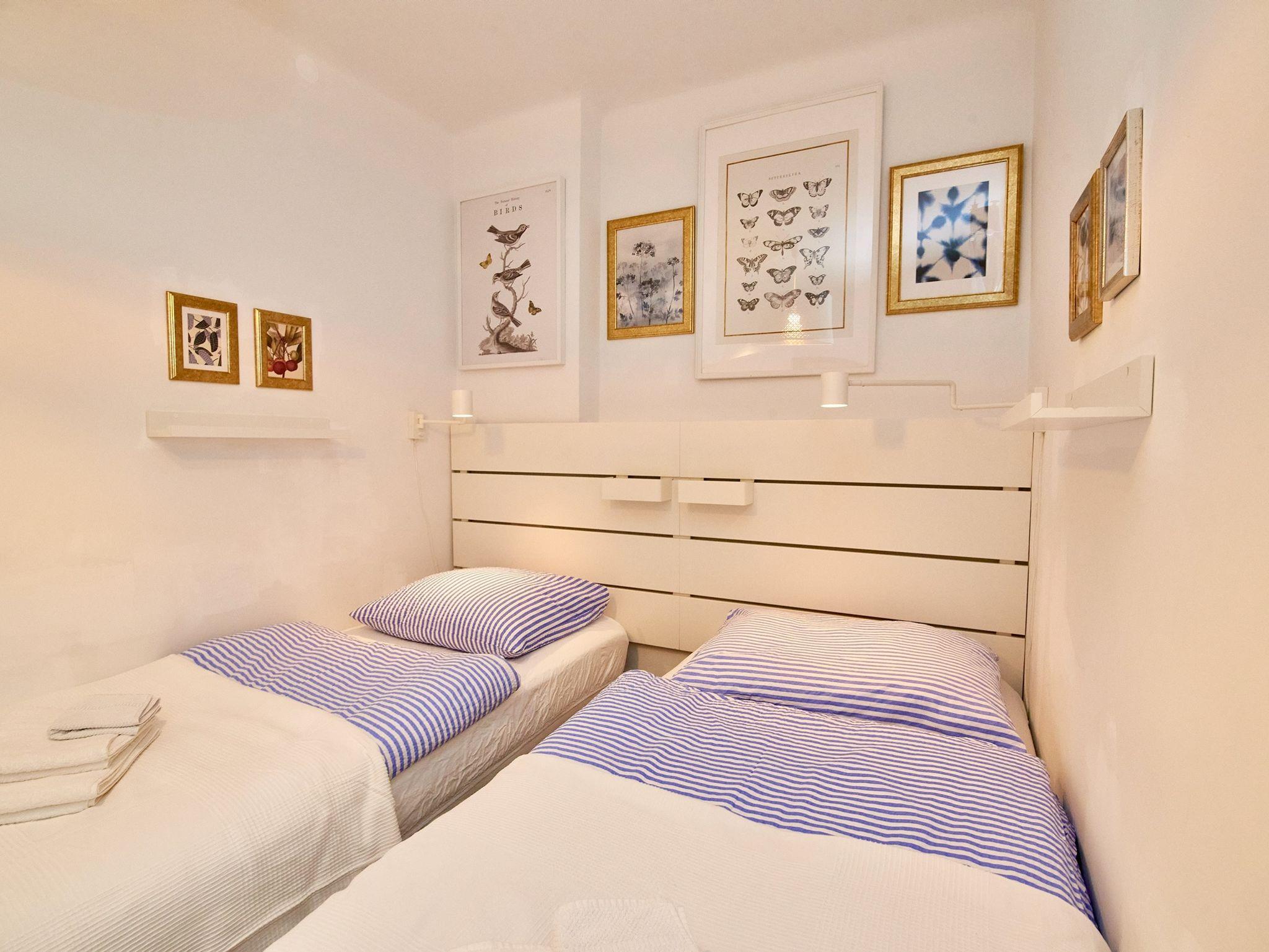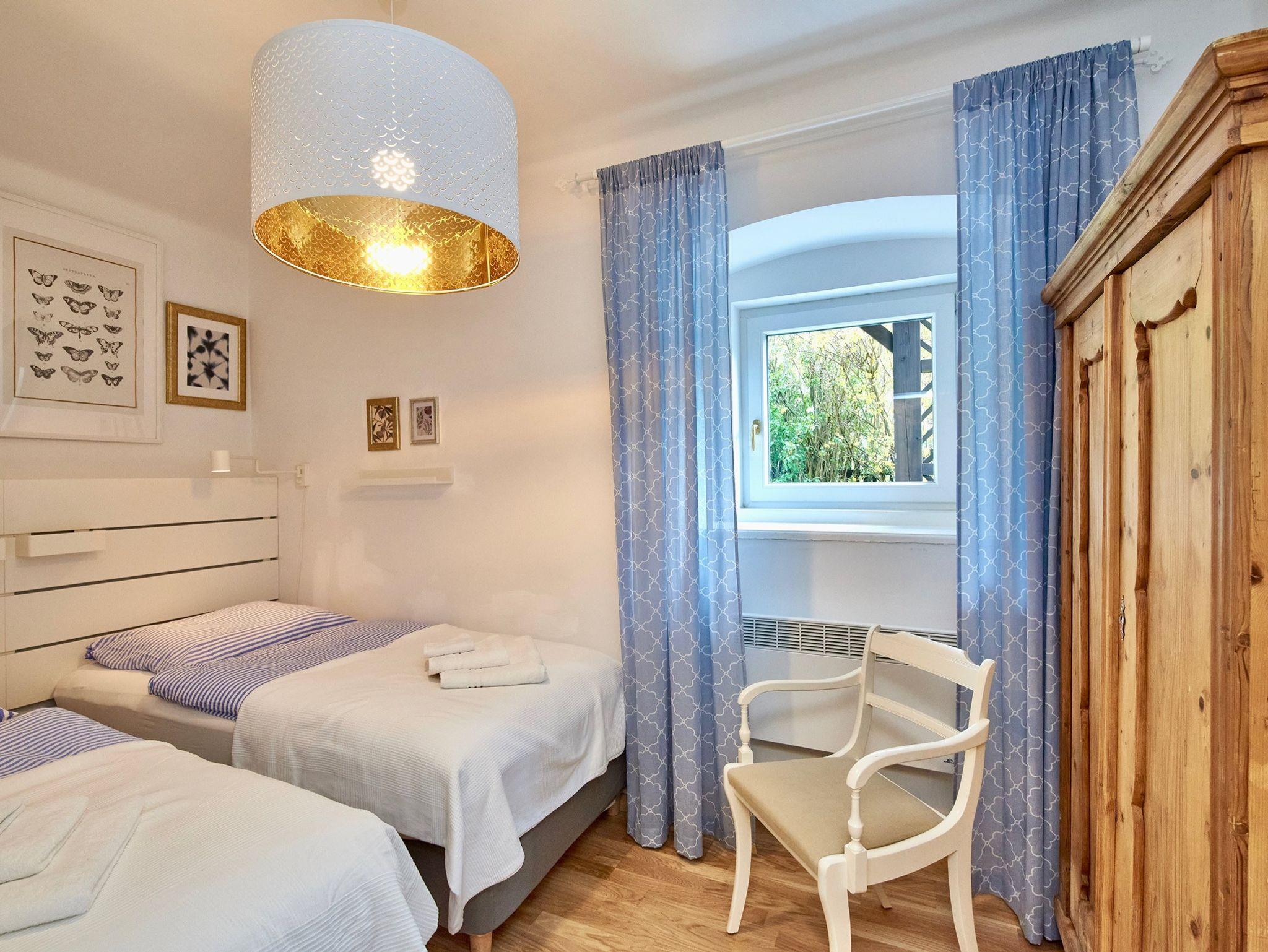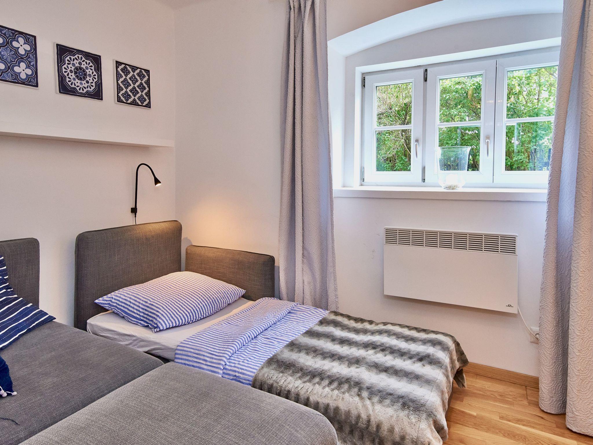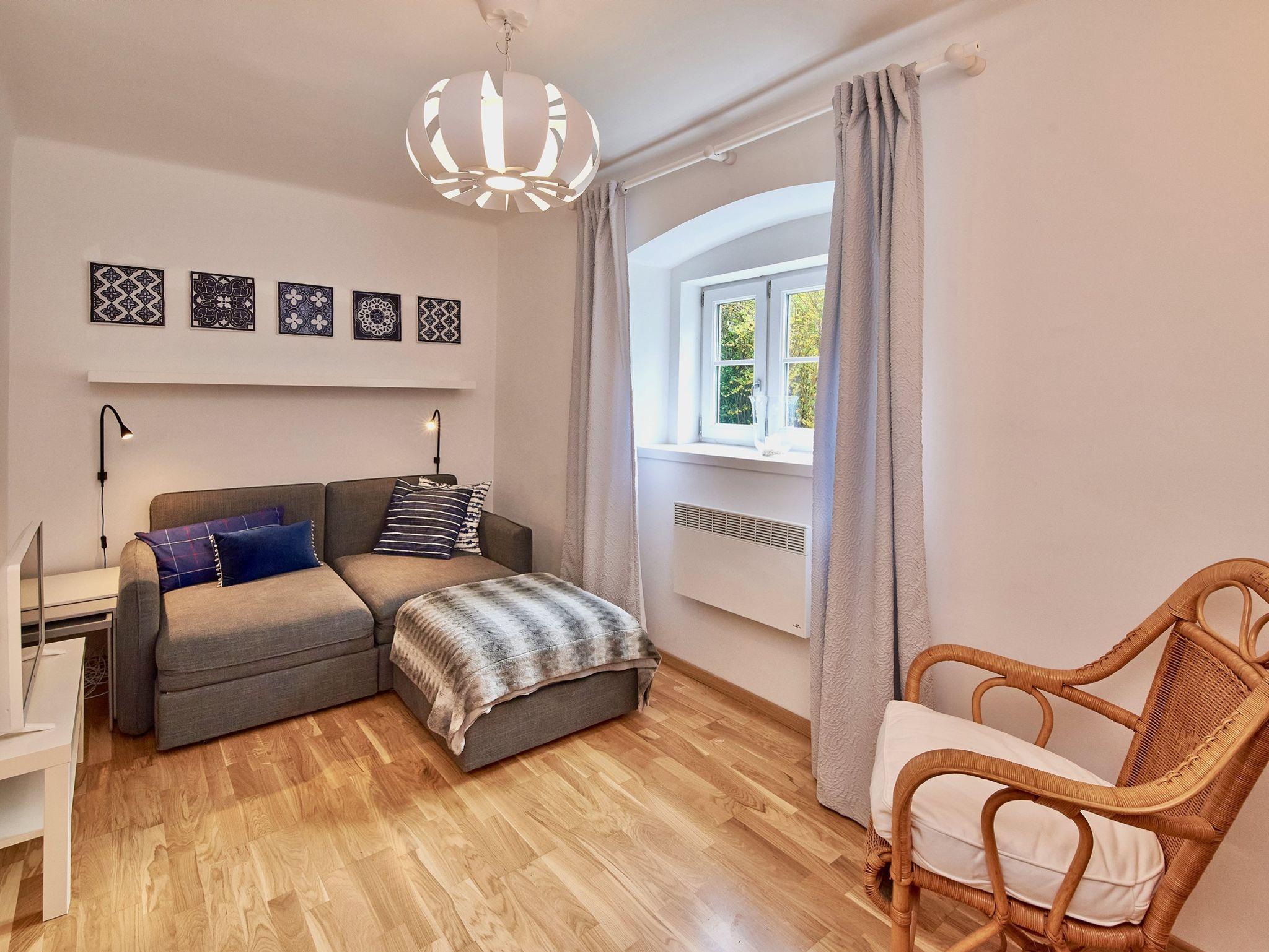 Dieses stilvoll sanierte Nichtraucher-Apartment im Erdgeschoss (teilweise Souterrain) bietet auf 50 m² ein behagliches Ambiente mit Wohnküche inklusive Fußbodenheizung und voll ausgestatteter Einbauküche samt Backrohr, Geschirrspüler, Mikrowelle sowie Filter- und Nespresso-Maschine; das angrenzende Wohnzimmer mit Doppel-Schlafcouch und Digital-TV ergänzt das separate Schlafzimmer mit flexiblen Boxspringbetten, die als Einzel- oder Doppelbett gestellt werden können; das Badezimmer mit Badewanne, Fußbodenheizung und separatem WC sorgt für Komfort, Waschmaschine und Trockner stehen ebenfalls zur Verfügung; hochwertige Baumwollbettwäsche, Saunatücher, abdunkelbare Schlafräume, Parkettböden, Vorraum mit Garderobe sowie unbegrenztes WLAN machen dieses Apartment zu einer idealen Wahl für Paare oder kleine Familien, ein Babybett ist gegen Gebühr möglich.