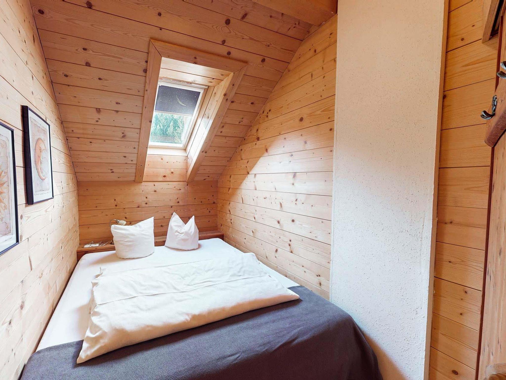 Optimal für alle Wellness-Liebhabe! Unsere beliebte Dorfsuite mit großer Panoramaterrasse im 1. OG. unseres Wellness-Bereichs Badehäusl befindet sich am Rande des Chaletdorf. Privatsphäre pur! Sie verfügt über ein großes Schlafzimmer mit Sonnenterrasse, ein kleines Kinderzimmer, eine kuschelige Wohnstube mit romantischem Balkon, eine voll eingerichtete Küche, Essecke, Couch und SAT-TV sowie ein Bad mit WC.