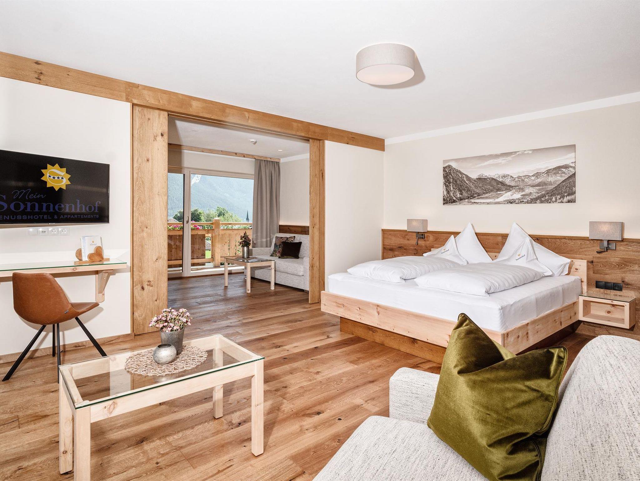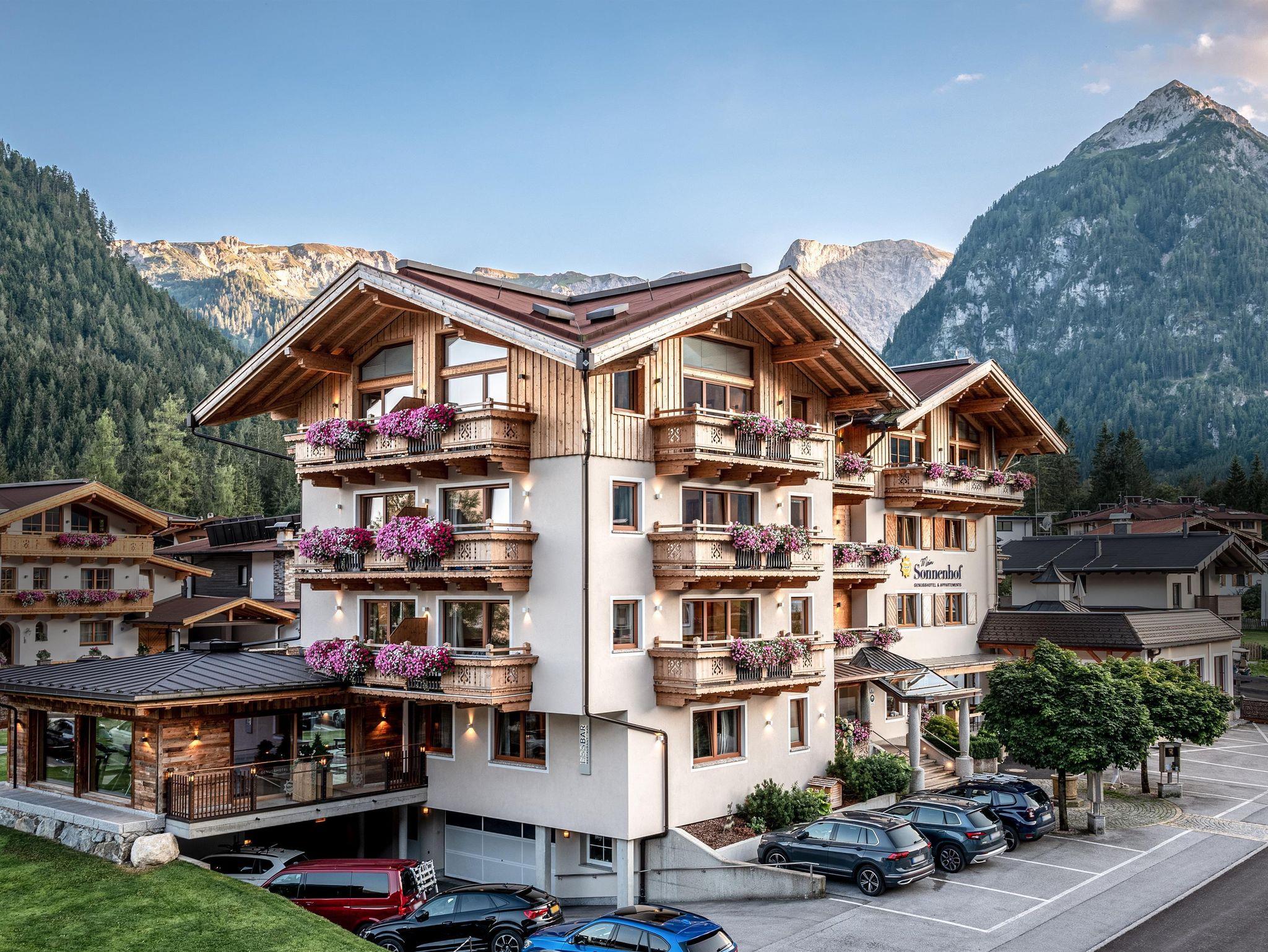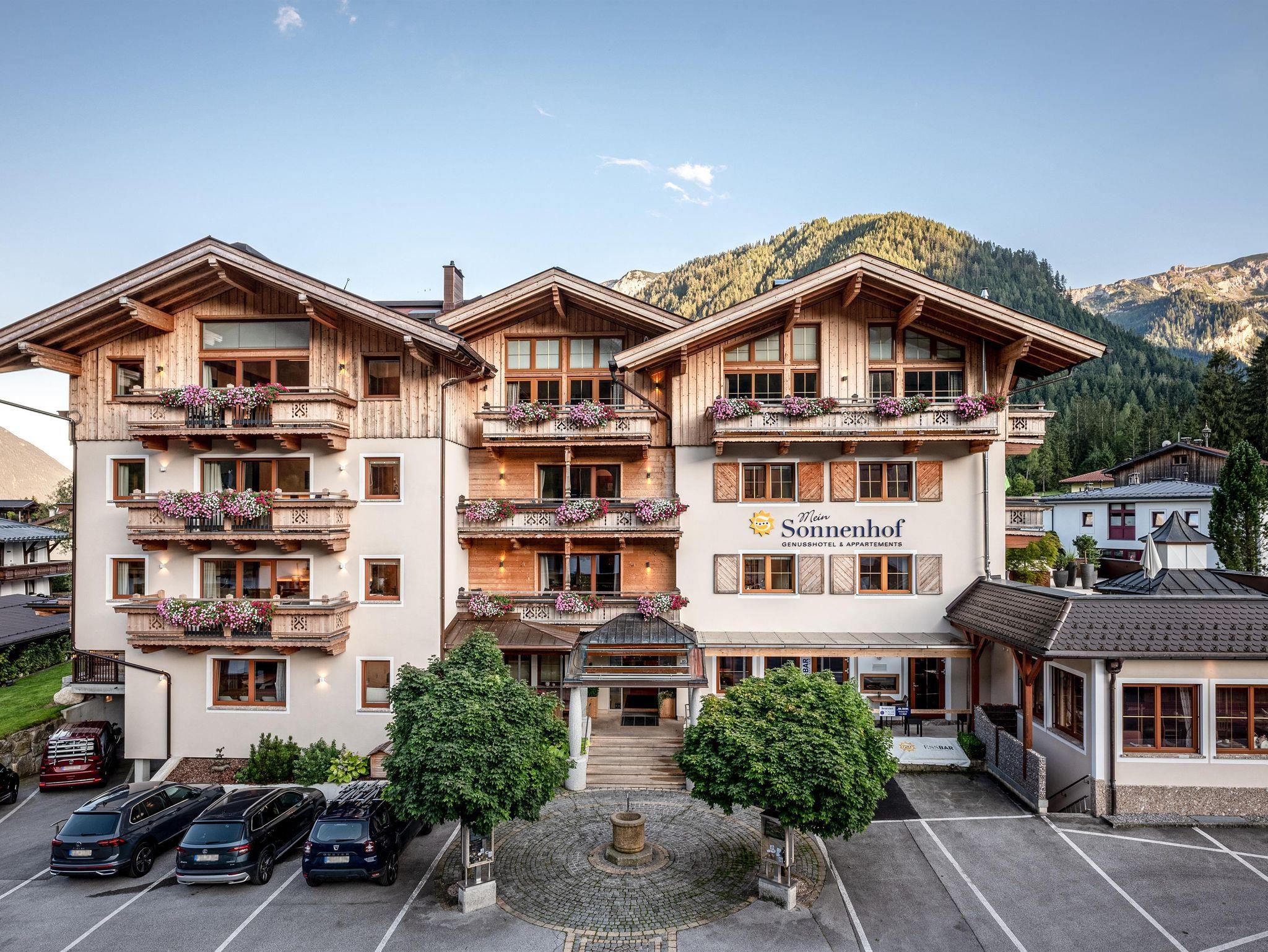 Im privat geführten Genusshotel Sonnenhof erwarten Sie 27 Zimmer, Suiten und 10 Ferienwohnungen - alpiner Charme, gemütlich & naturverbunden. Alle Zimmer bieten einen imposanten Ausblick auf die umliegende Tiroler Bergwelt. Kostenfreie Parkplätze & gratis W-LAN im gesamten Hotel.