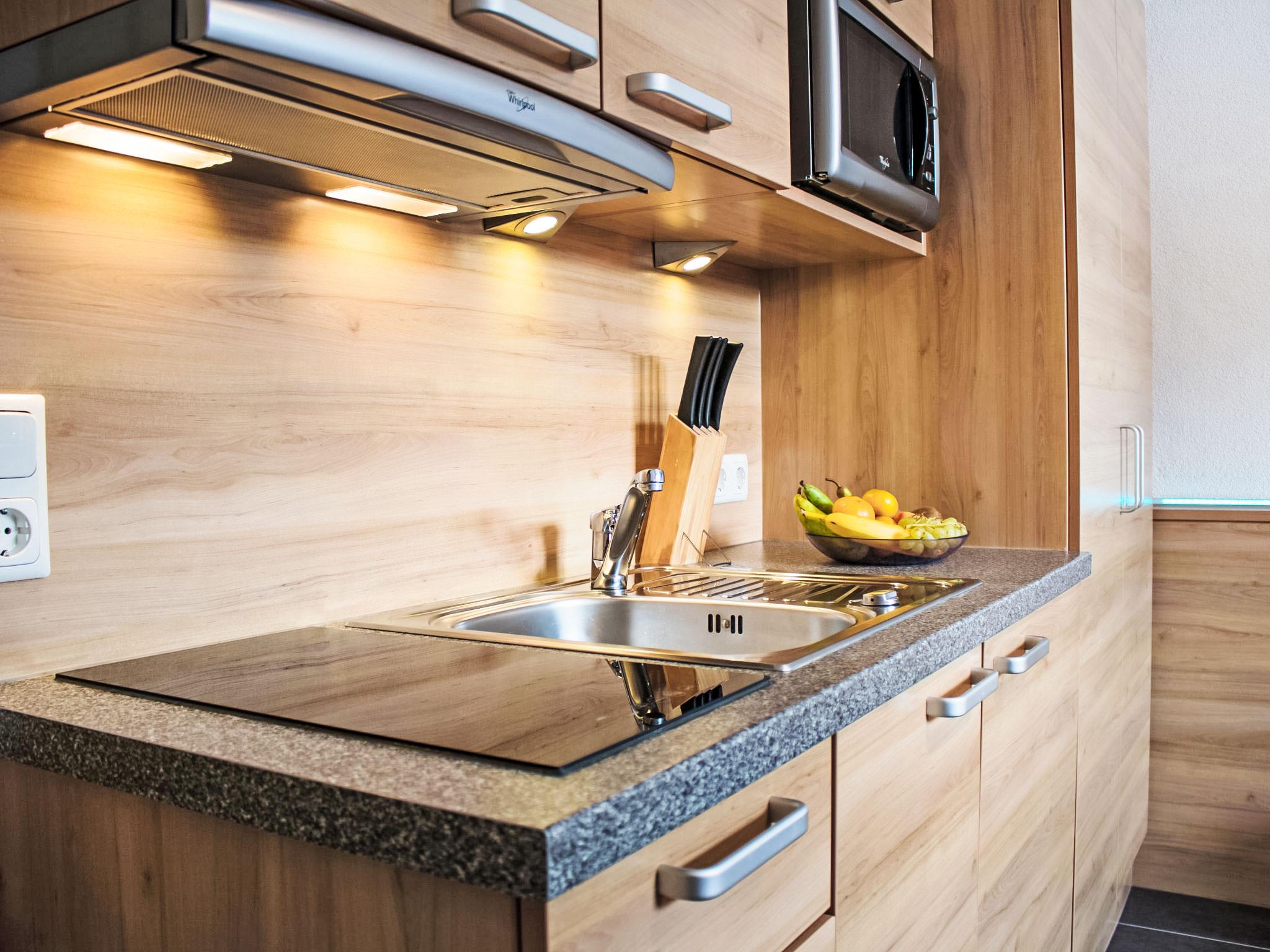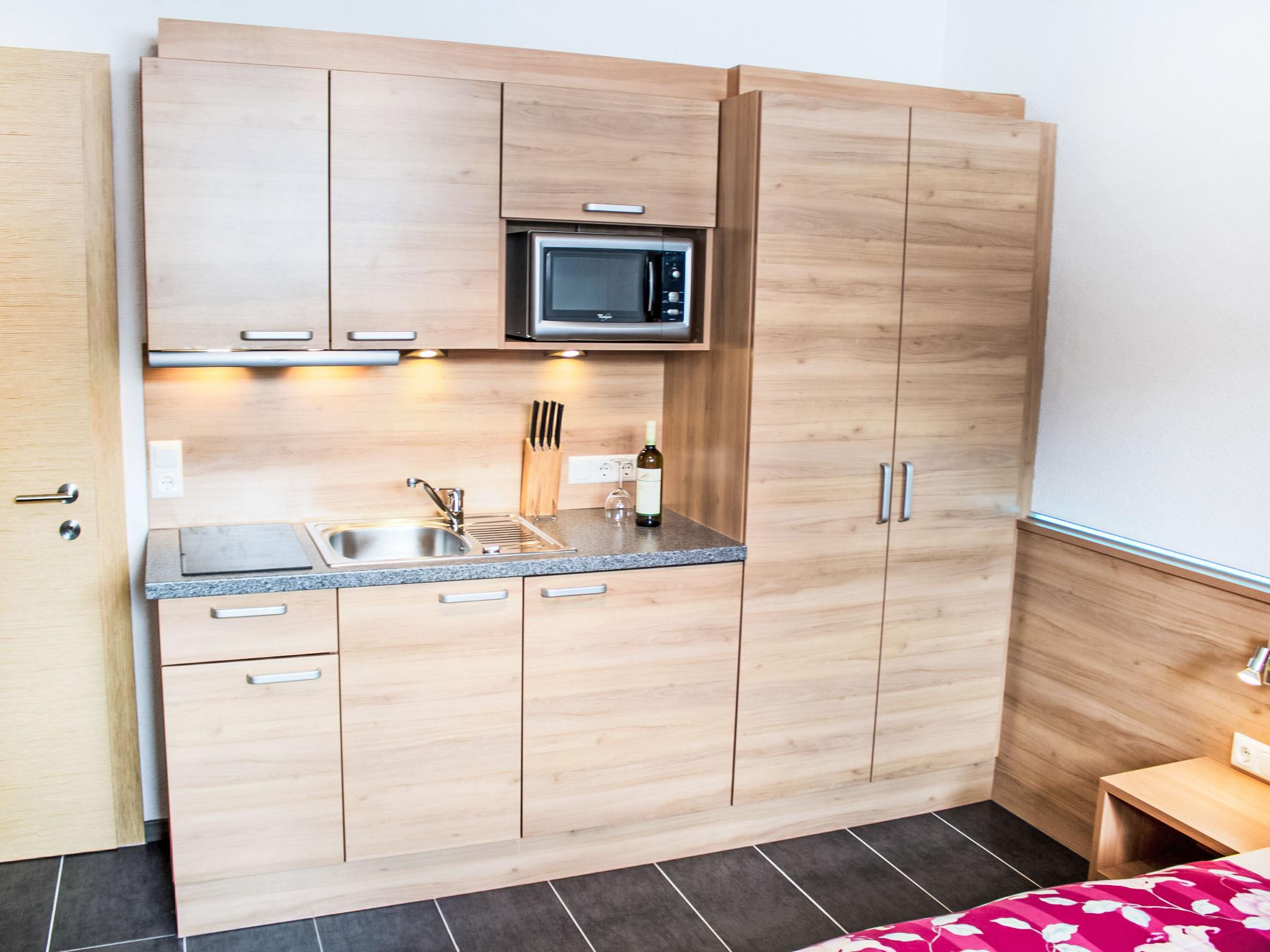 1-room apartment 20 m2, on the lower ground floor. Cosy furnishings: living/sleeping room with 1 double bed, dining table and cable TV (flat screen). Kitchenette (2 ceramic glass hob hotplates, toaster, kettle, microwave, electric coffee machine). Shower/WC. Facilities: Internet (WiFi, free). Parking (1 car) at the house. Please note: non-smokers only. double bed also possible to seperate in 2 single beds.