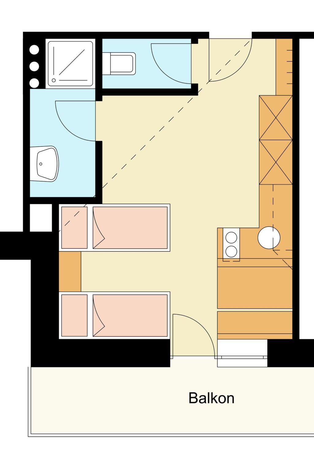 - Number of bedrooms: Studio apartment (no separate bedroom)