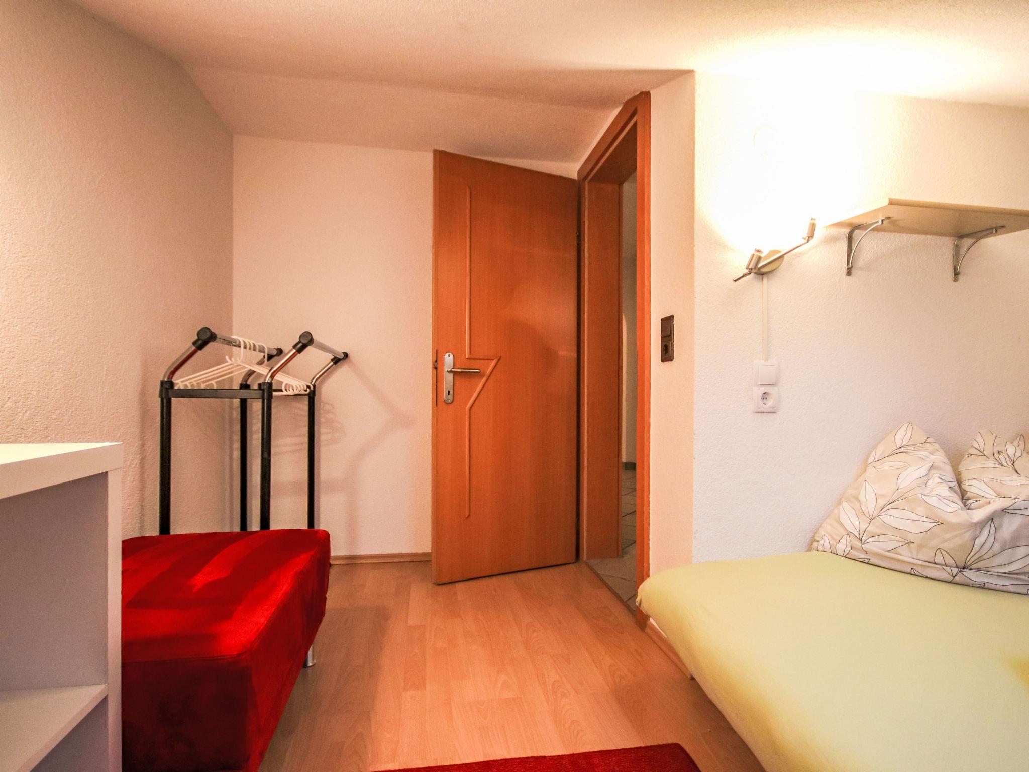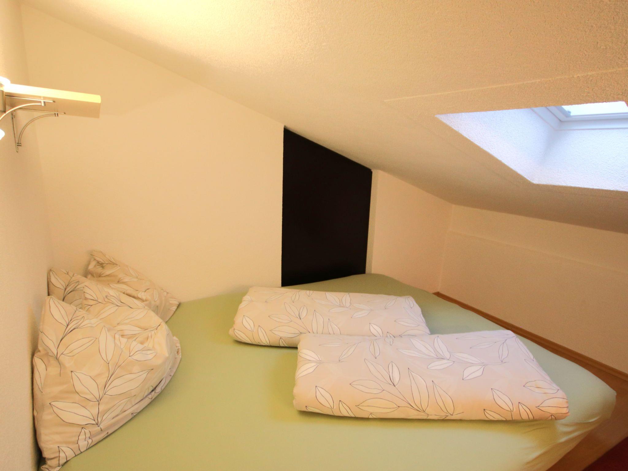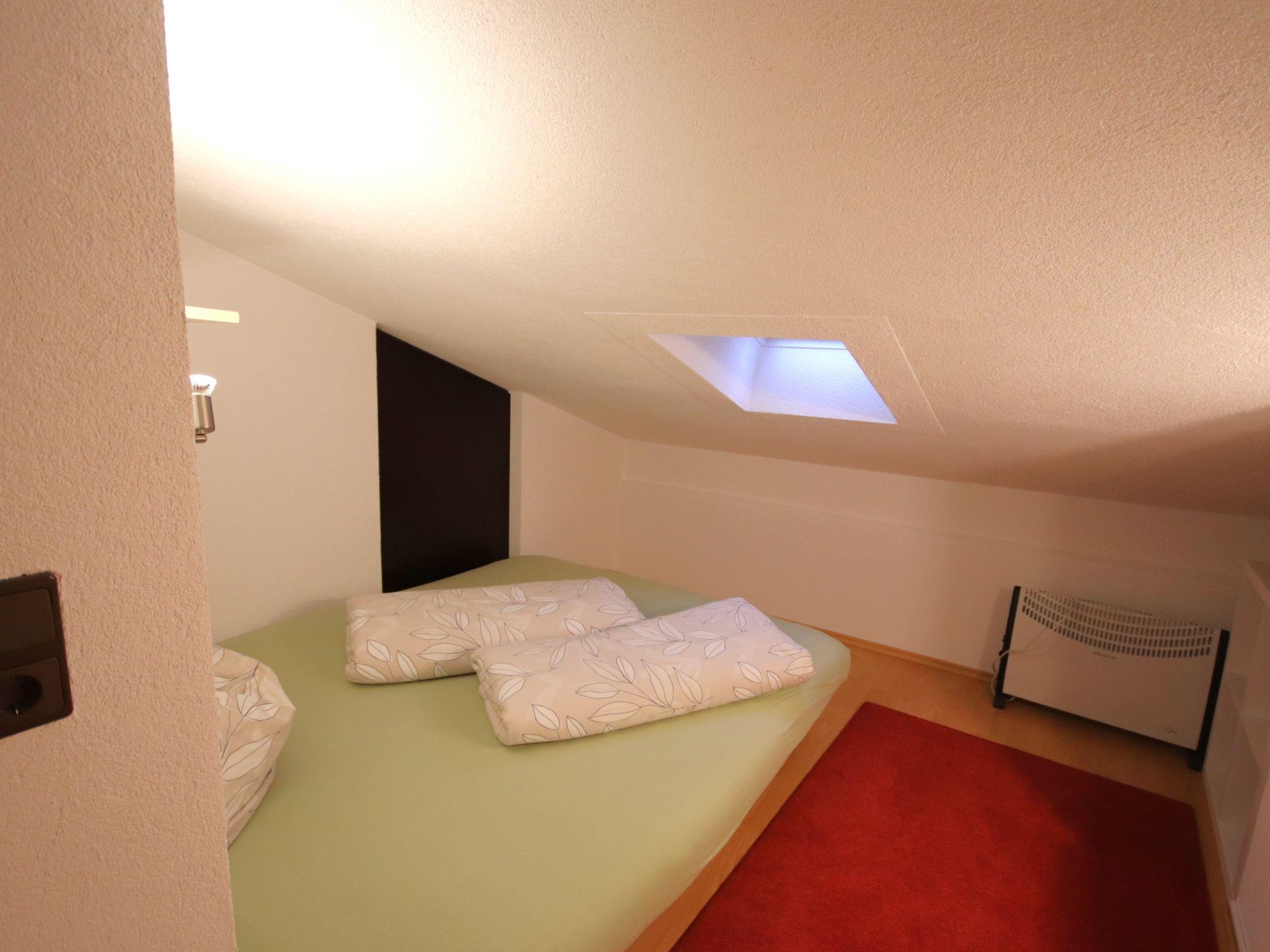 4-room apartment 65 m2, on the top floor. With sloping ceilings, tasteful furnishings: entrance hall. 1 double bedroom. 1 small room with 1 french bed (140 cm). 1 small room with 1 french bed (160 cm). Large living room with satellite TV and radio. Open kitchen (oven, dishwasher, 4 ceramic glass hob hotplates, microwave) with dining table. Bath/shower/WC. Box-room. View of the mountains. Facilities: Internet (WiFi, free). Please note: non-smokers only. Smoke alarm. One small room with double bed has a very low ceiling.