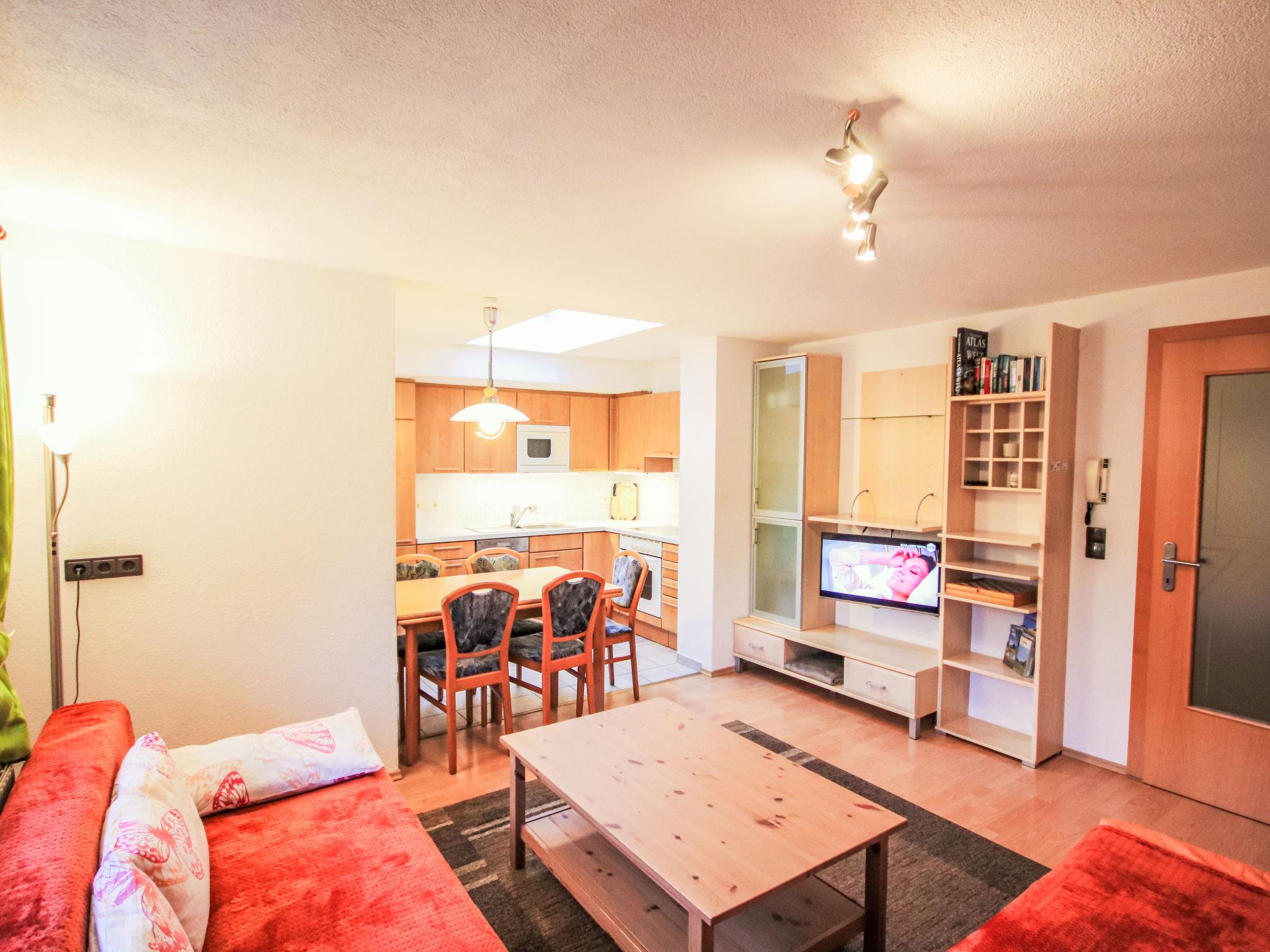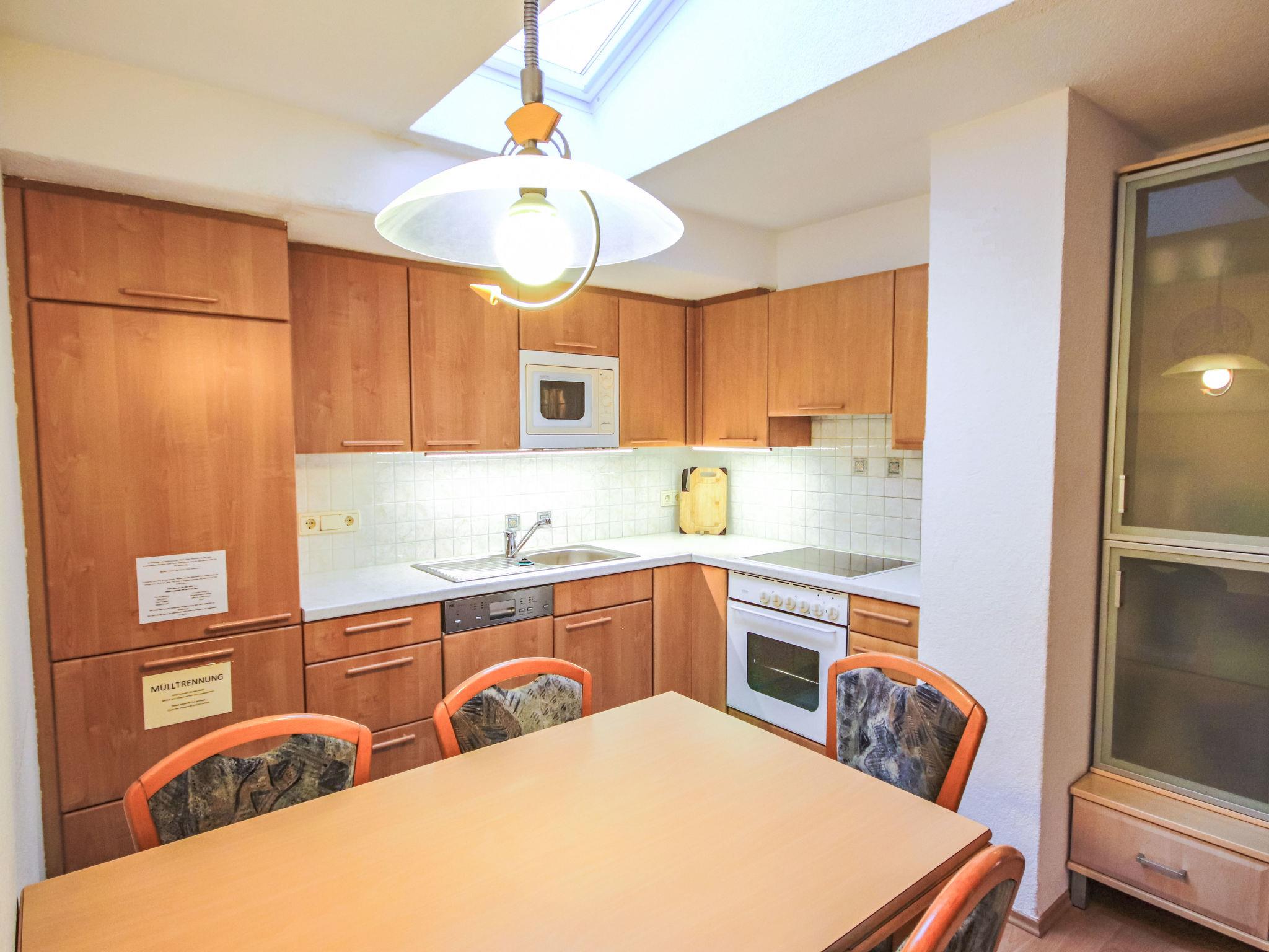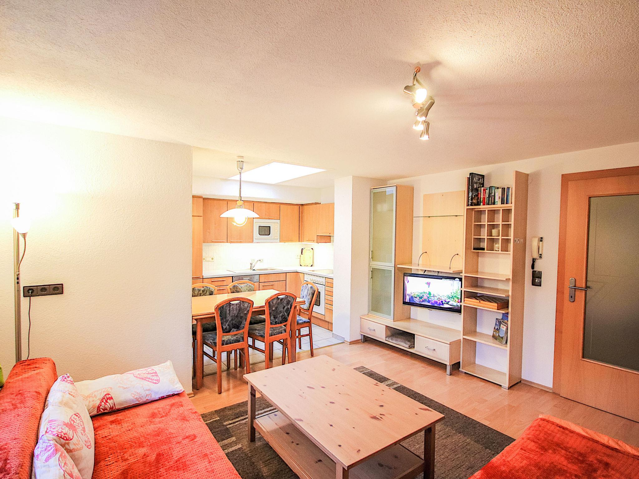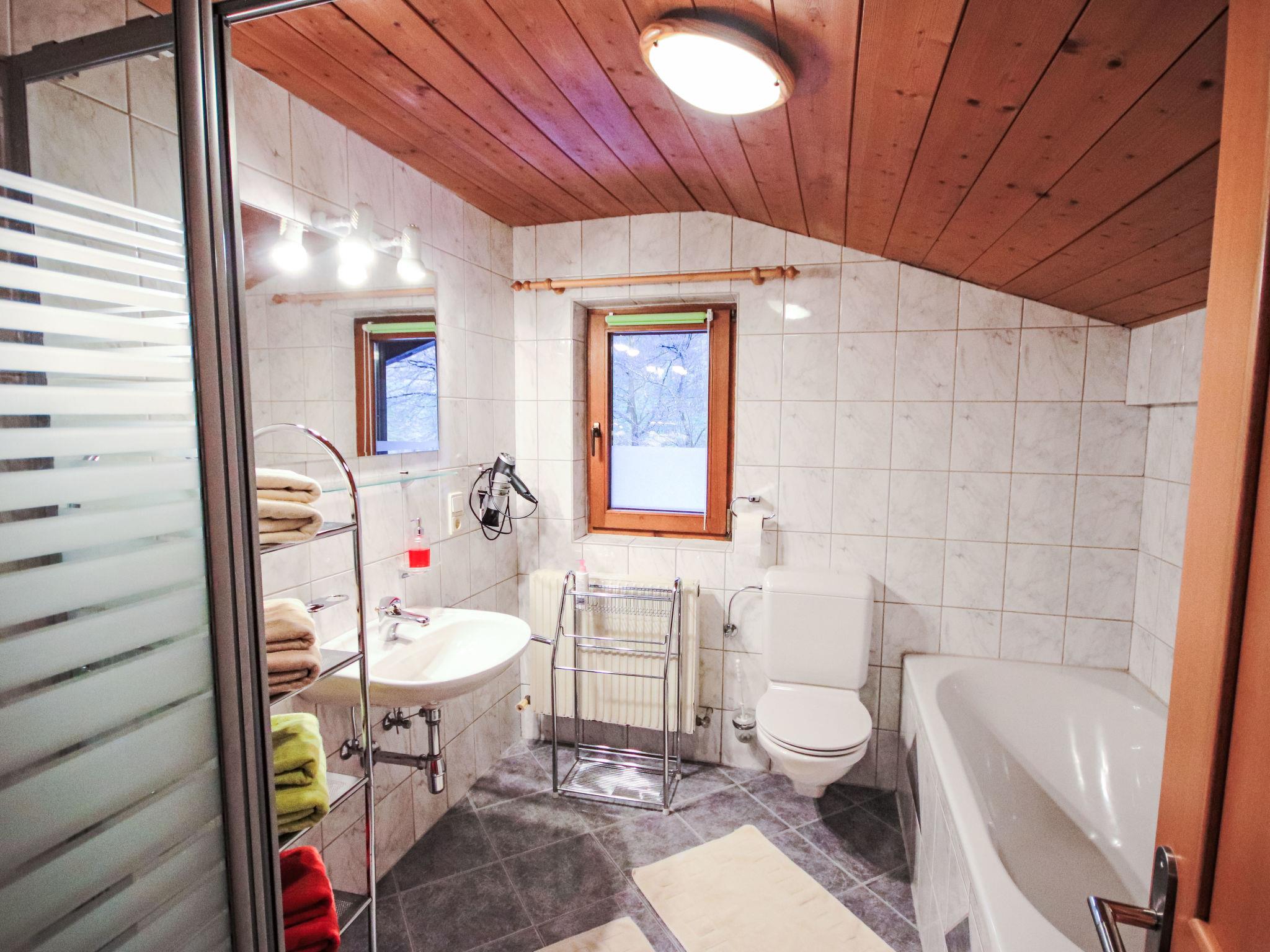 4-room apartment 65 m2, on the top floor. With sloping ceilings, tasteful furnishings: entrance hall. 1 double bedroom. 1 small room with 1 french bed (140 cm). 1 small room with 1 french bed (160 cm). Large living room with satellite TV and radio. Open kitchen (oven, dishwasher, 4 ceramic glass hob hotplates, microwave) with dining table. Bath/shower/WC. Box-room. View of the mountains. Facilities: Internet (WiFi, free). Please note: non-smokers only. Smoke alarm. One small room with double bed has a very low ceiling.
