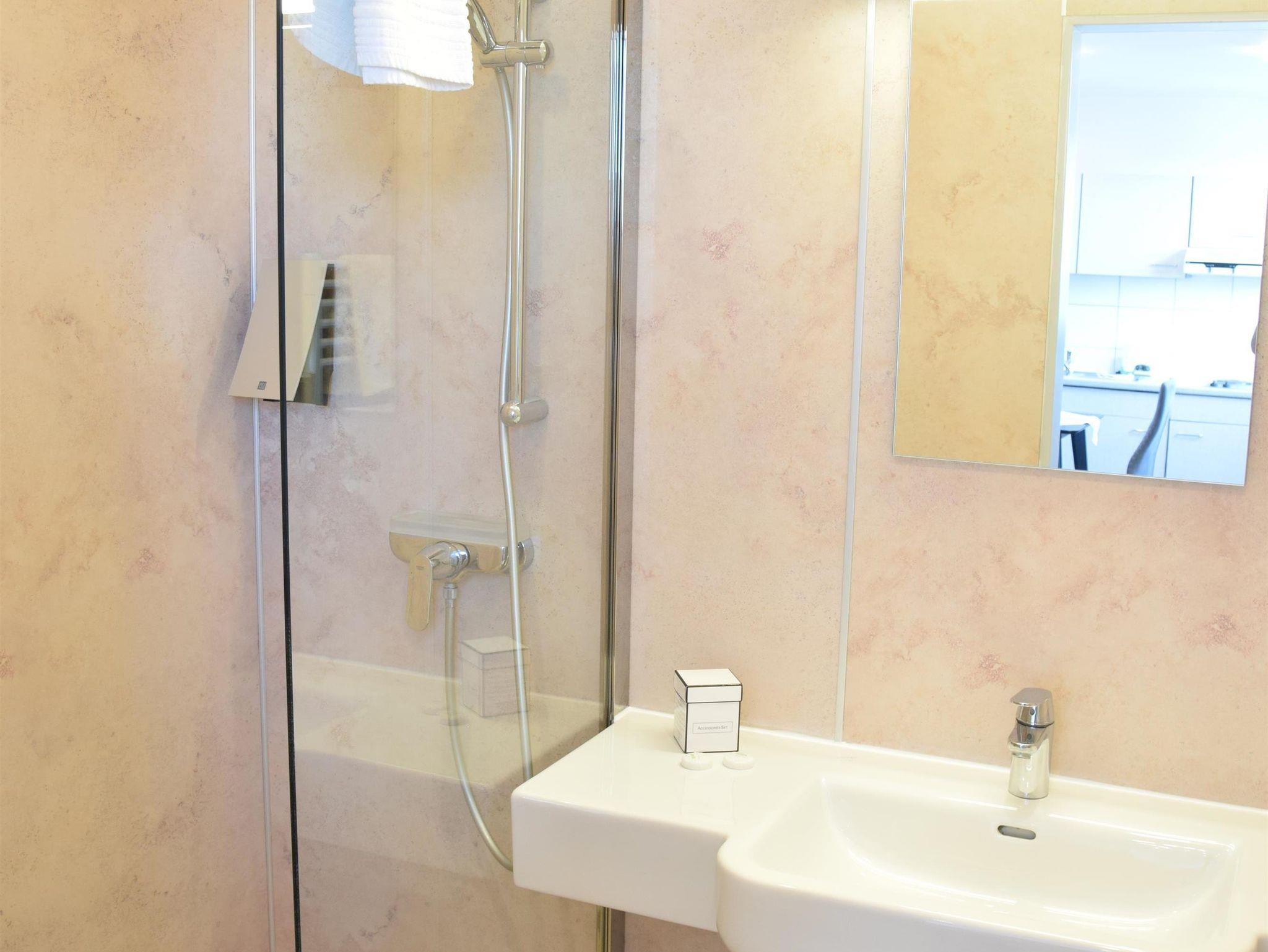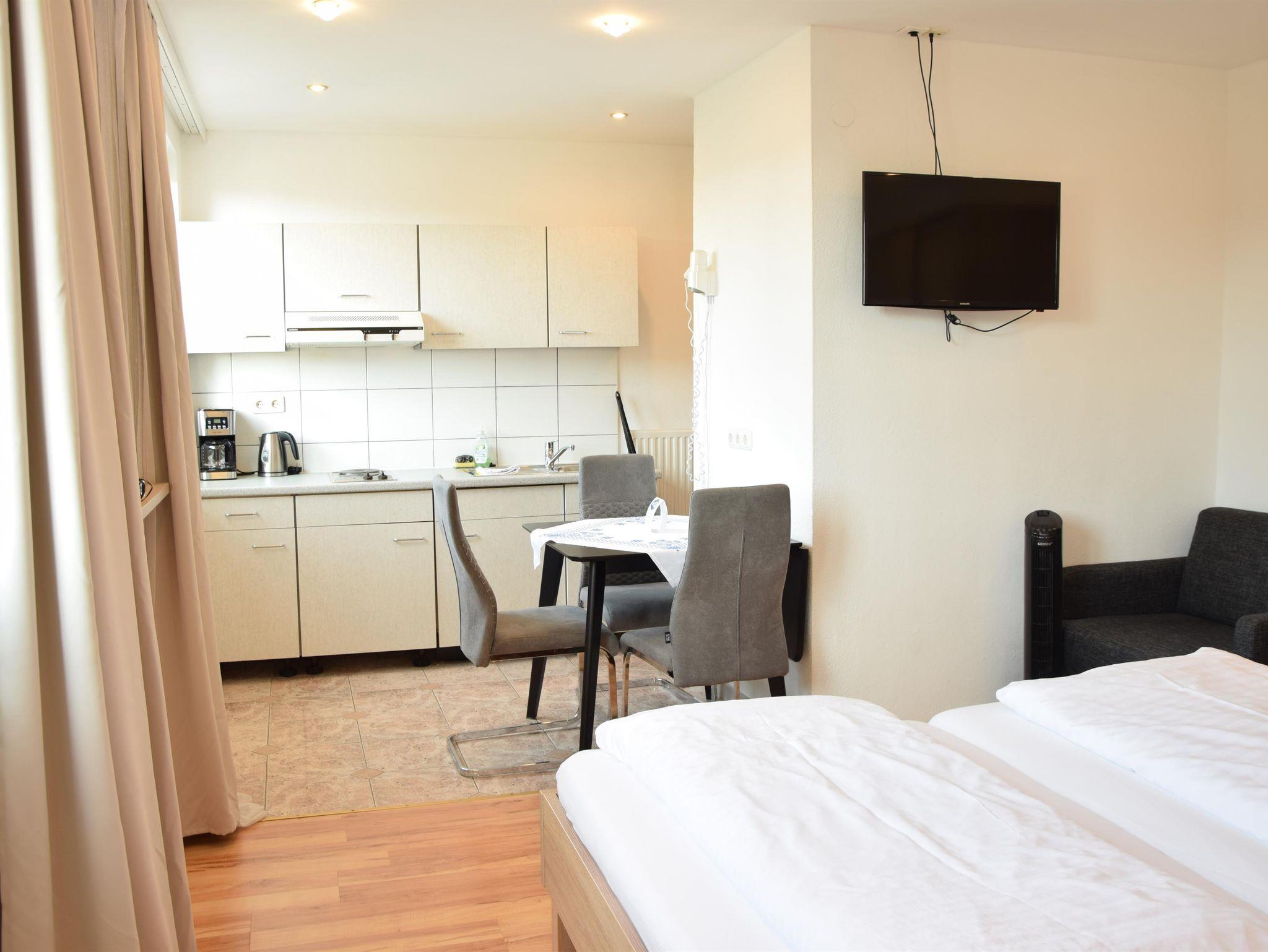 Appartement von 30 m², für 2 Personen, ohne Balkon, mit Kochnische (Kaffeemaschine und Geschirr vorhanden), Badezimmer, Radiowecker, Fön, Kabel-TV und Safe ausgestattet.