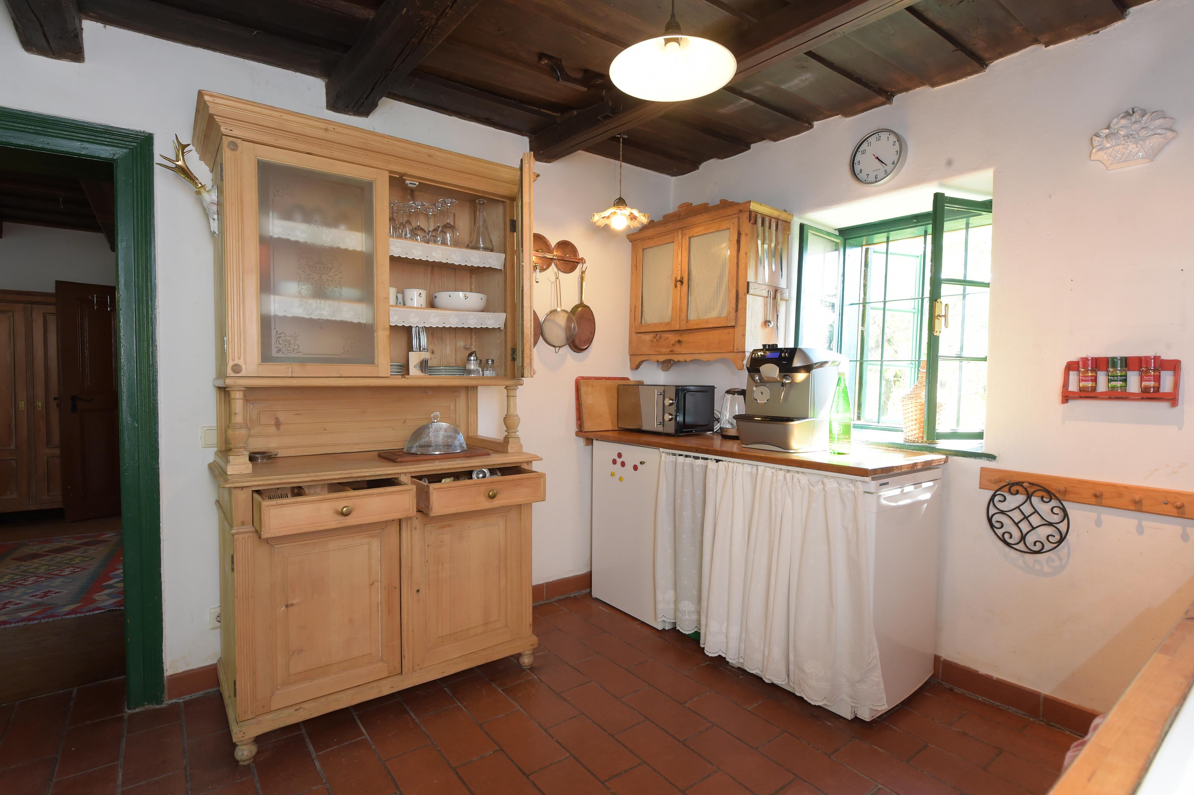 Die Küche ist mit einer Kaffeemaschine, einem Toaster, einer Mikrowelle, einem Kühlschrank, einem Kochfeld und einem Wasserkocher usw. ausgestattet.
