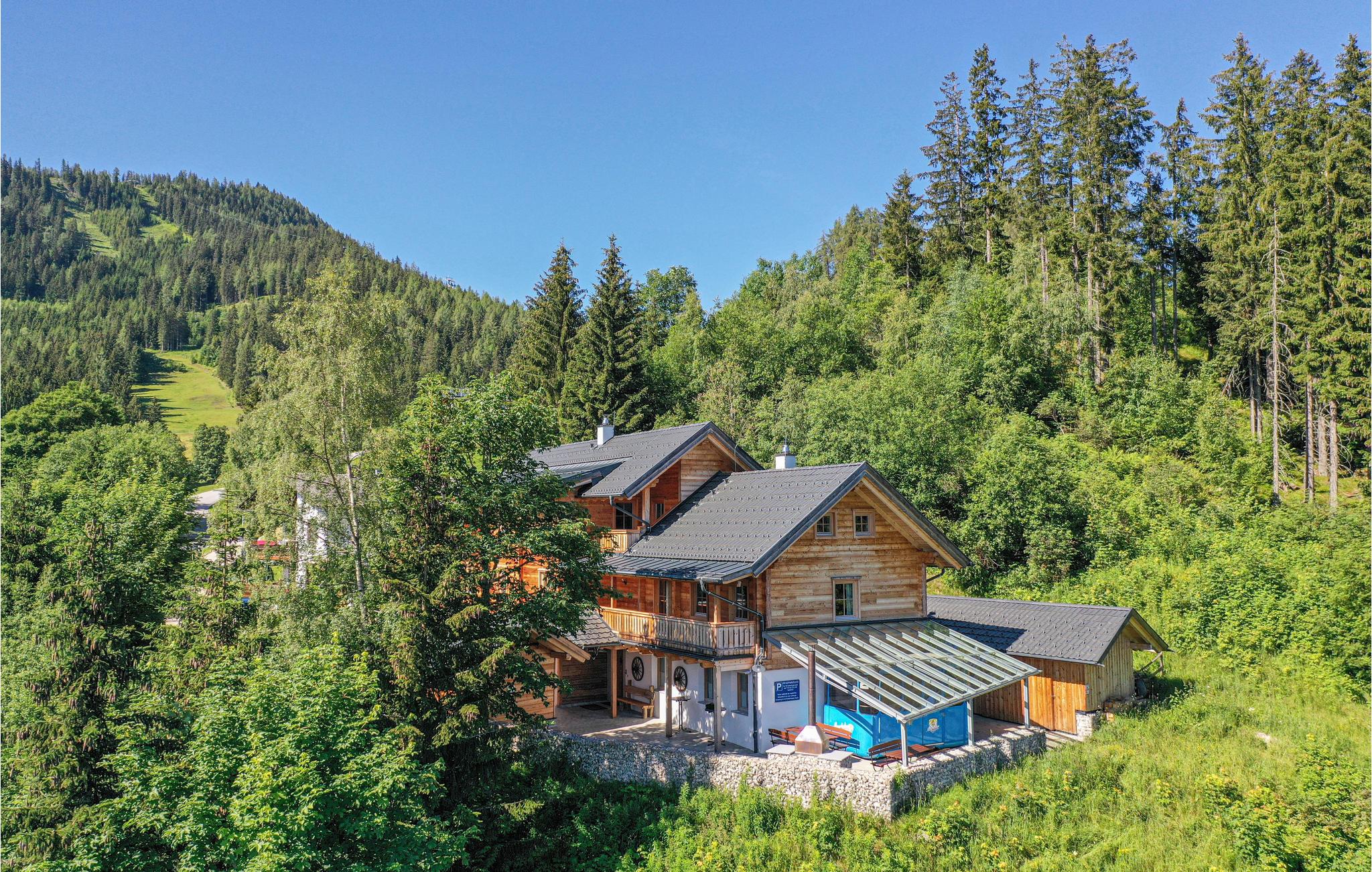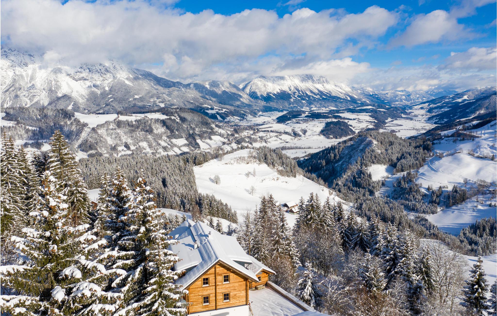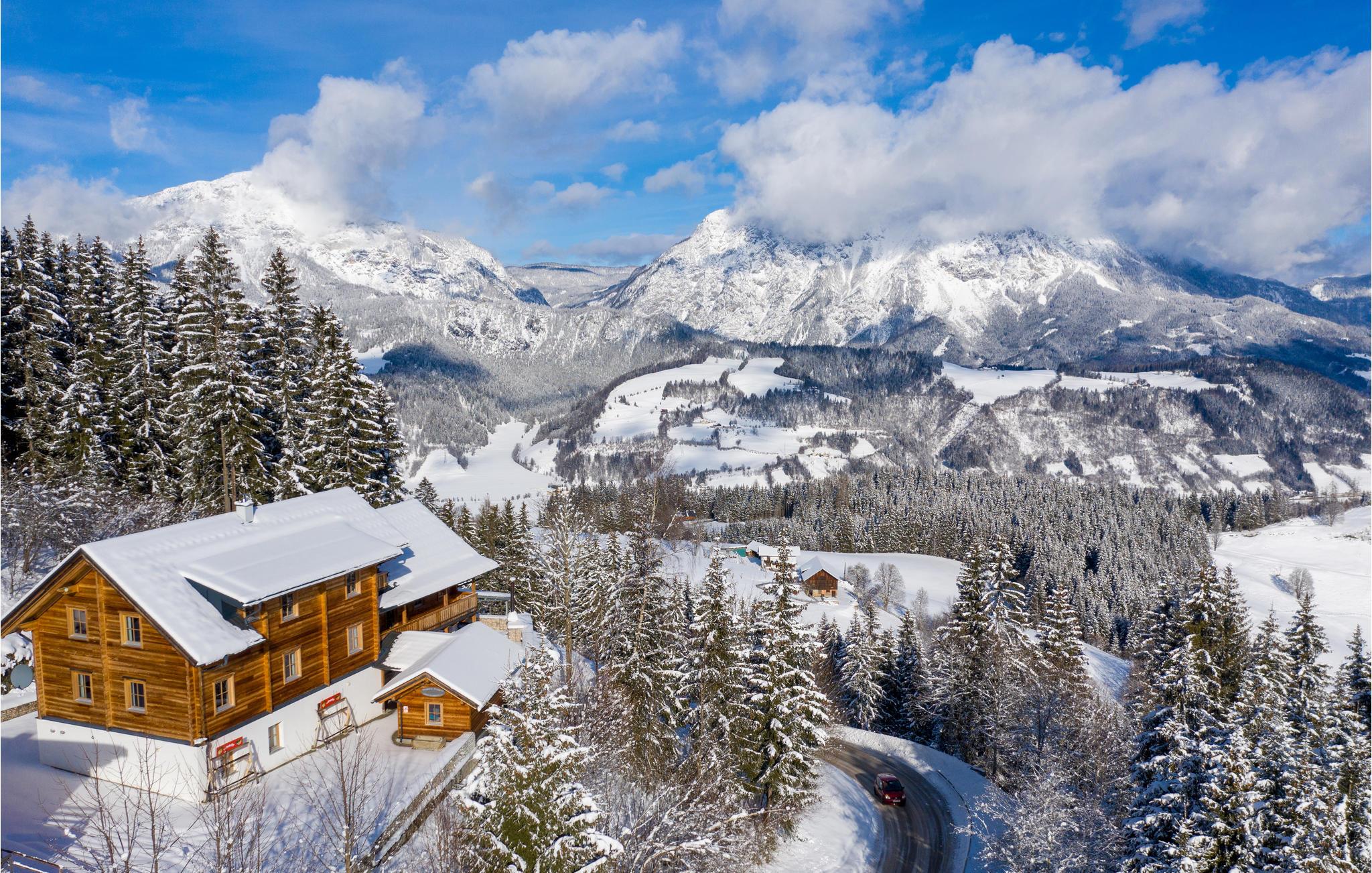 Alltag raus – Steiermark rein! Diese charmante Berghütte mitten in der Ferienregion Dachstein-Schladming ist die ideale Kulisse für Ihren Sommer- oder Winterurlaub im Ferienhaus. Die drei Etagen stehen ausschließlich Ihnen zu Verfügung, bieten dabei aber dennoch, dank separat abgetrennter Wohnbereiche, jedem Gast die Privatsphäre, die er verdient. Entspannen Sie nach einem ereignisreichen Tag im hauseigenen, 50 m² großen Wellnessbereich oder genießen Sie die traumhafte Aussicht aufs Ennstal von Ihrer Terrasse aus. Ein besonderes Highlight ist die originale Seilbahngondel beim überdachten Grillplatz im Außenbereich. Mit eigenem TV und Soundsystem bringt sie nicht nur Kinder zum Staunen.