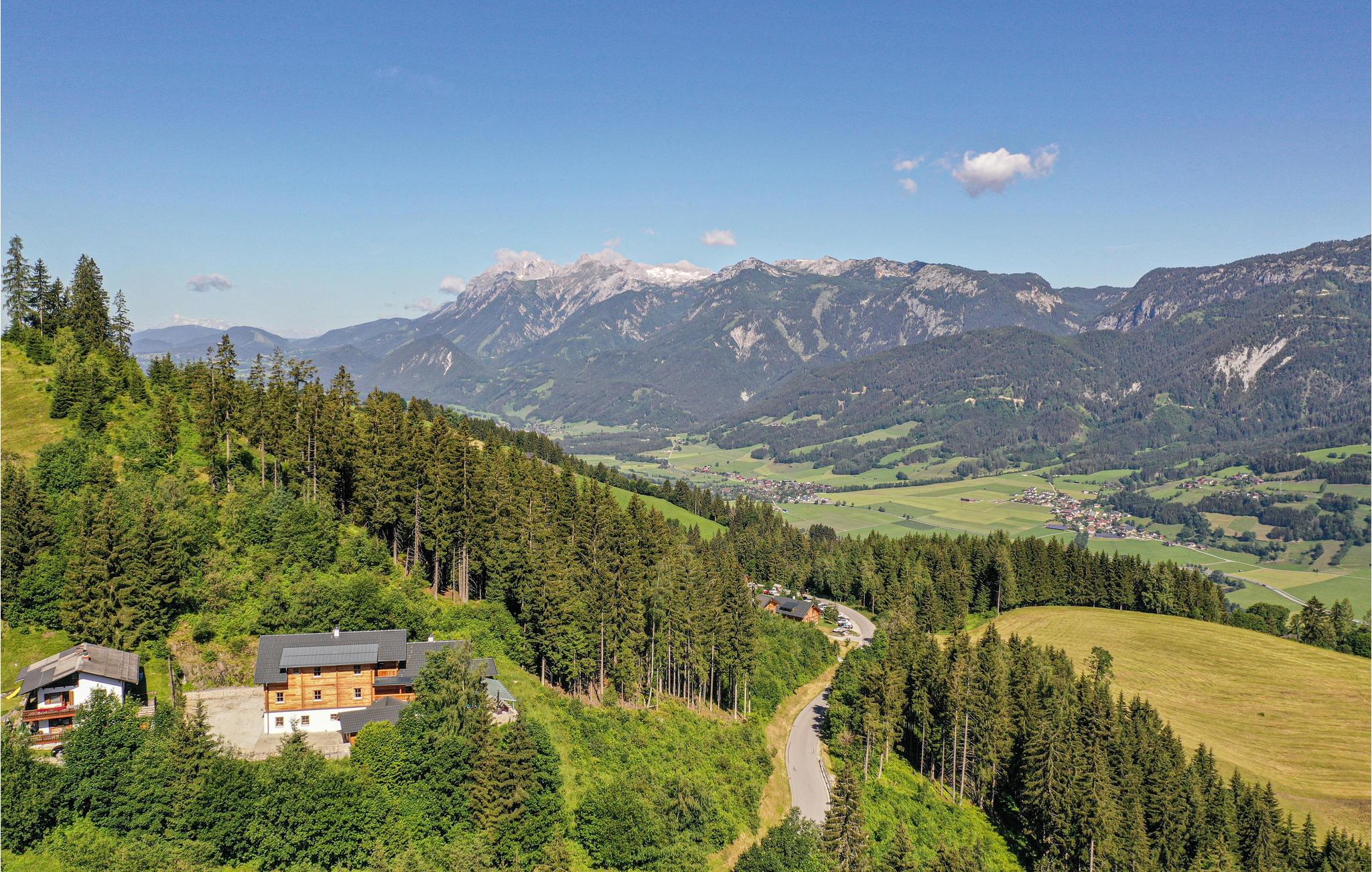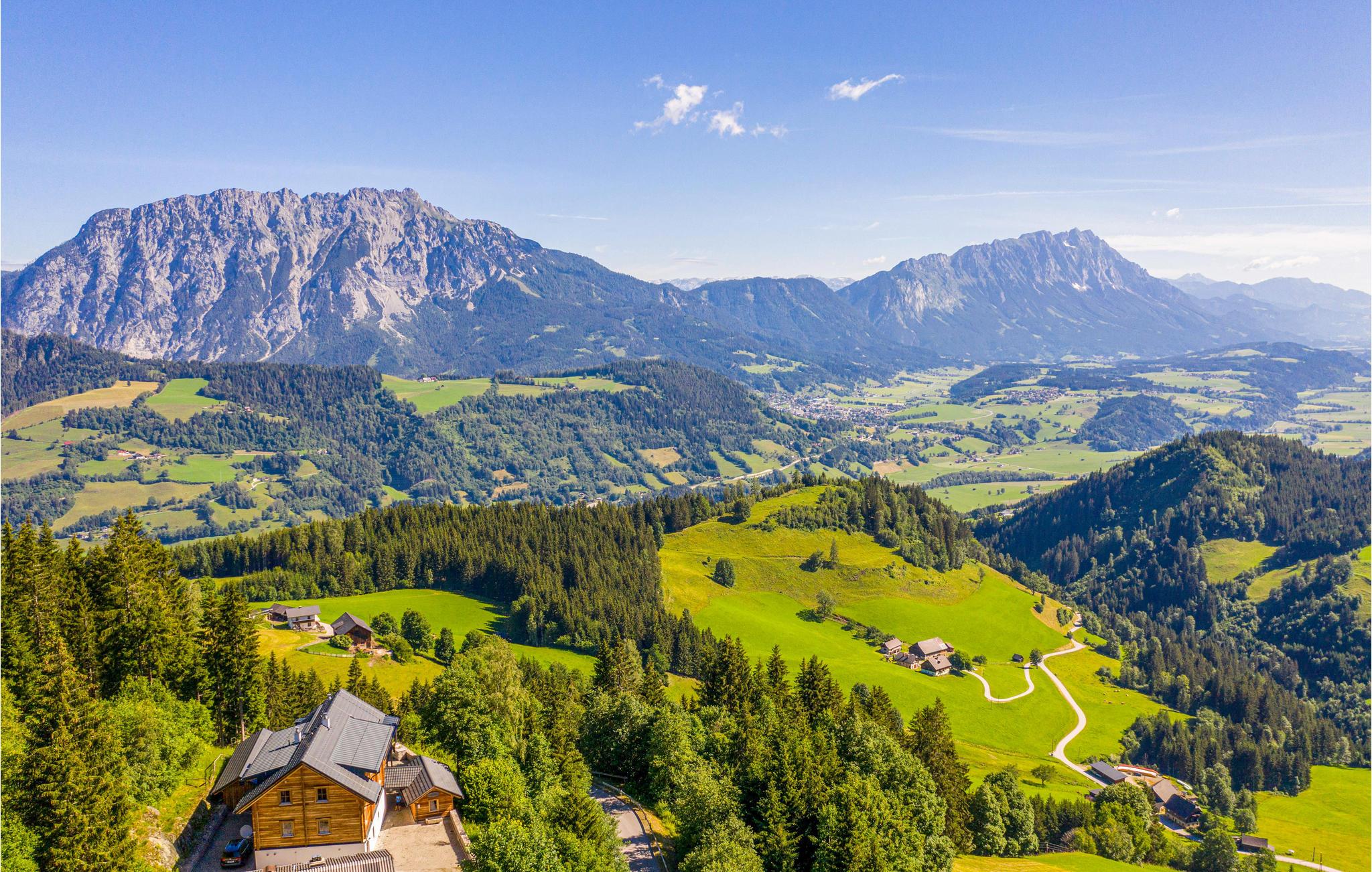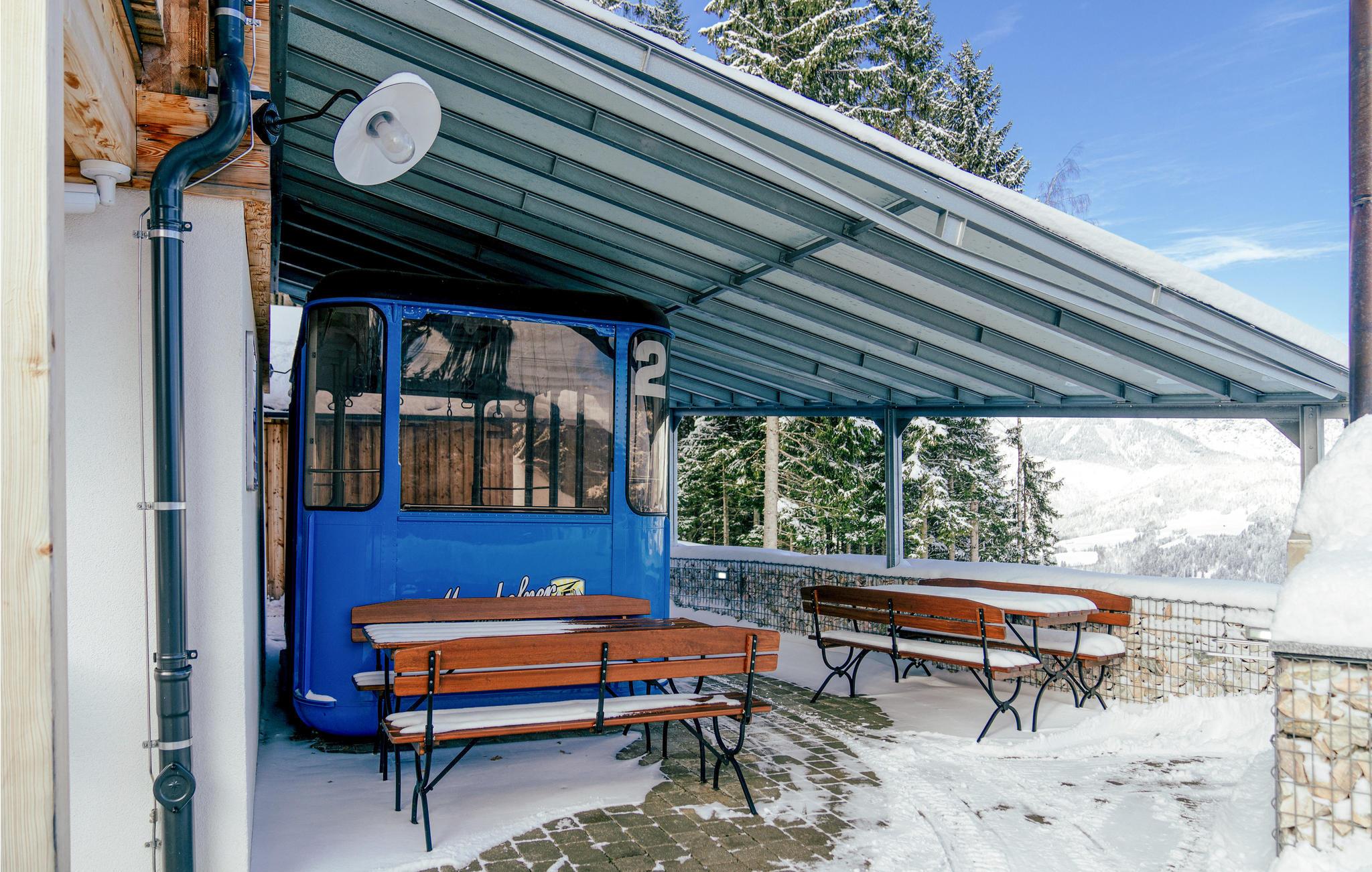 Alltag raus – Steiermark rein! Diese charmante Berghütte mitten in der Ferienregion Dachstein-Schladming ist die ideale Kulisse für Ihren Sommer- oder Winterurlaub im Ferienhaus. Die drei Etagen stehen ausschließlich Ihnen zu Verfügung, bieten dabei aber dennoch, dank separat abgetrennter Wohnbereiche, jedem Gast die Privatsphäre, die er verdient. Entspannen Sie nach einem ereignisreichen Tag im hauseigenen, 50 m² großen Wellnessbereich oder genießen Sie die traumhafte Aussicht aufs Ennstal von Ihrer Terrasse aus. Ein besonderes Highlight ist die originale Seilbahngondel beim überdachten Grillplatz im Außenbereich. Mit eigenem TV und Soundsystem bringt sie nicht nur Kinder zum Staunen.
