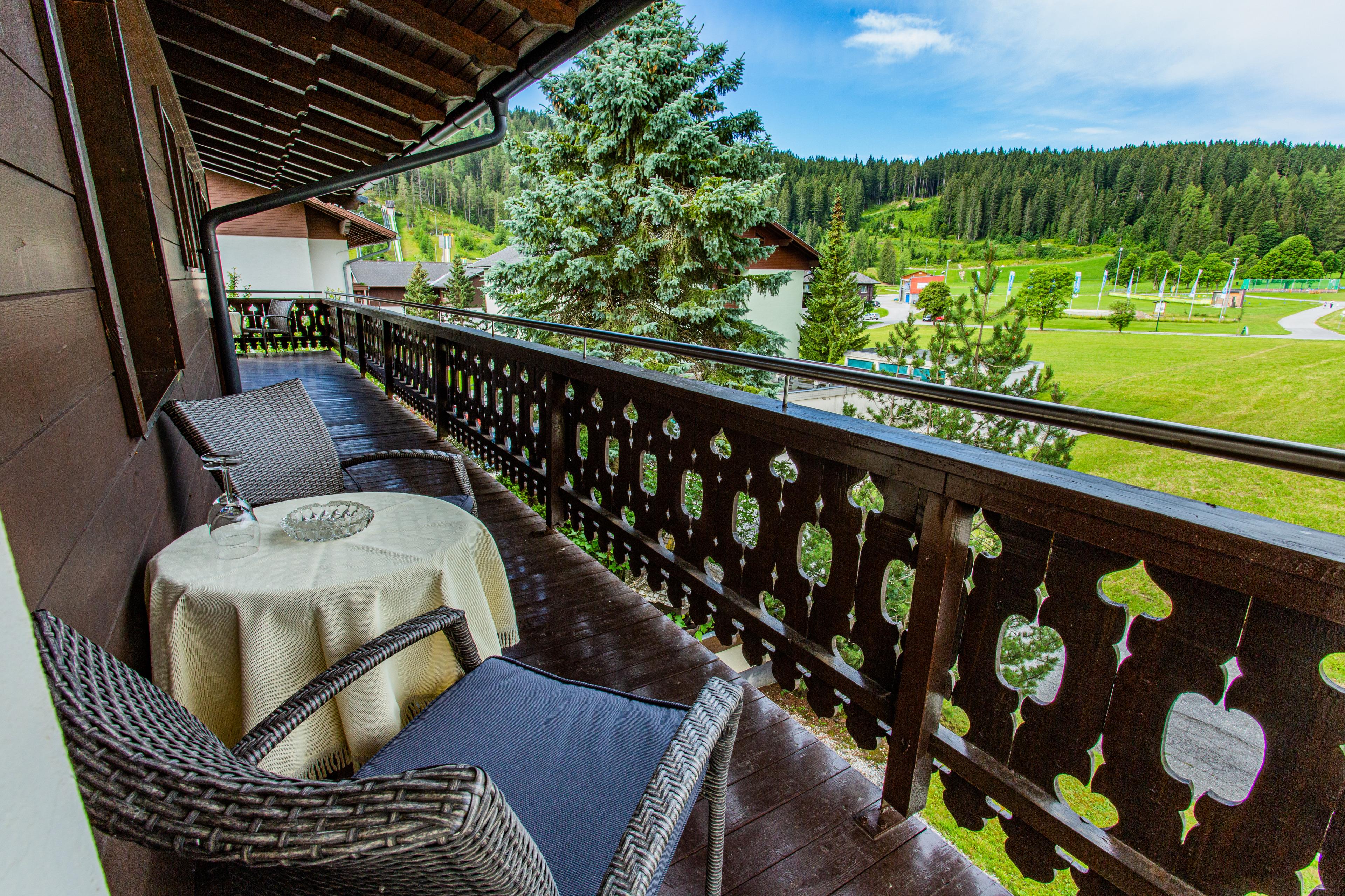 A bright spacious apartment with a huge balcony around the apartment. The cozy living room with a sofa bed, a dining table with 5 chairs and a kitchenette offers everything you need for a relaxing vacation.
