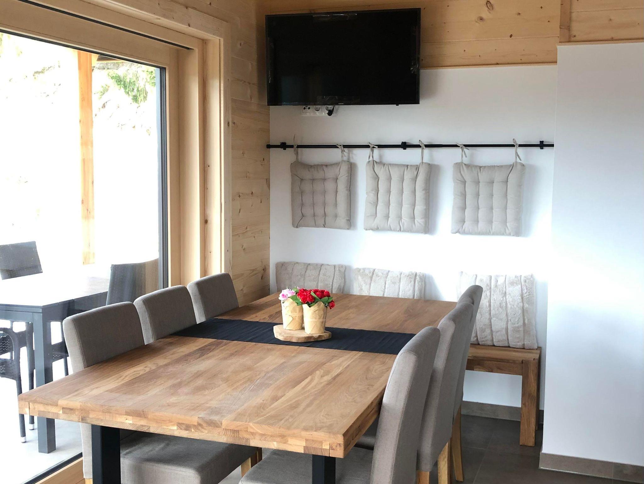 Im Wohn-/Essbereich können Sie den Abend auf der Couch vor dem Fernseher oder auf der Terrasse vor dem Haus ausklingen lassen. Die voll ausgestattete Küche verfügt über Geschirrspüler, Mikrowelle, E- Herd, Backrohr, Kaffeemaschine, Wasserkocher, Eierkocher, Toaster und genügend Geschirr.