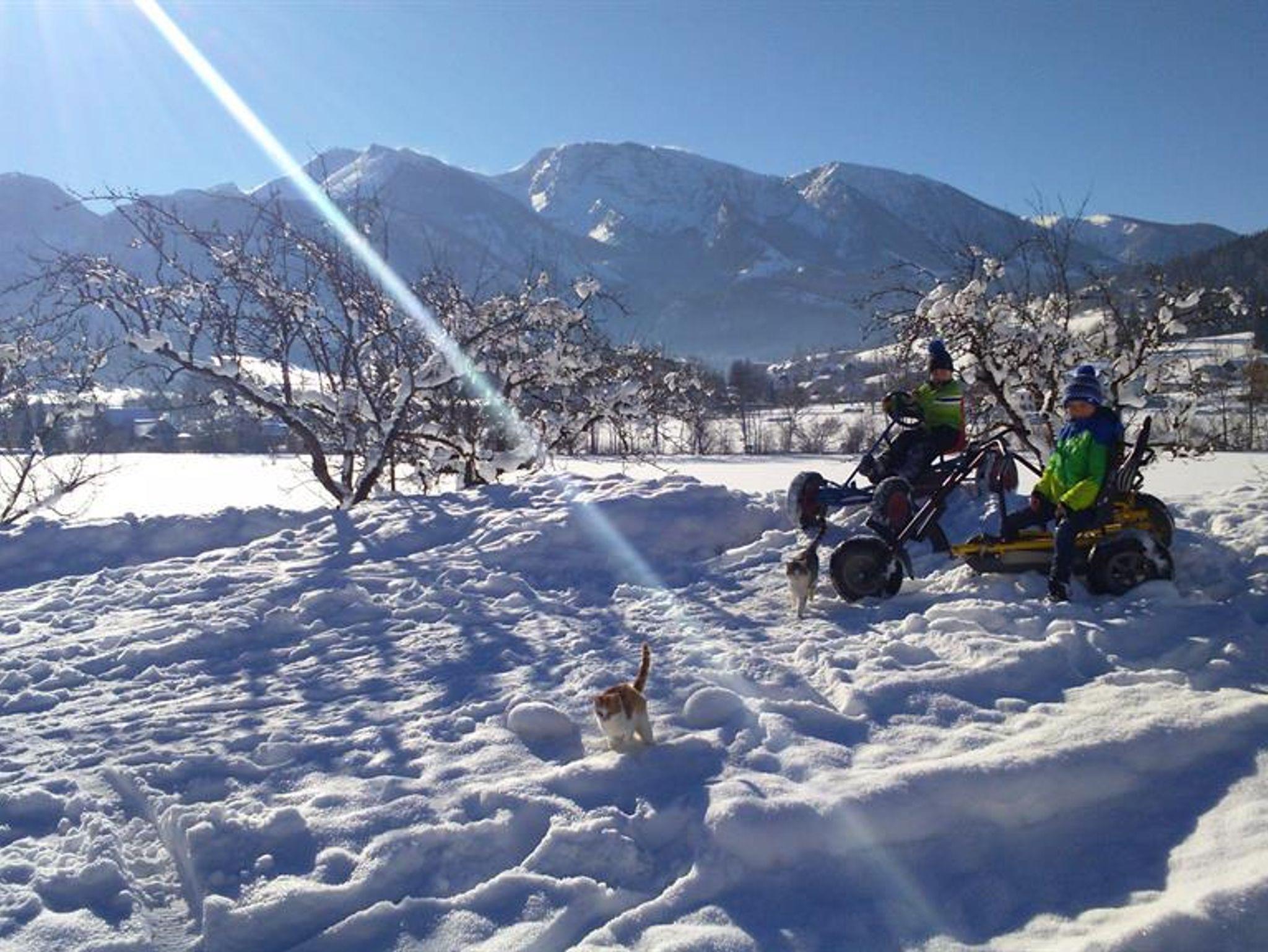 Inmitten eines sonnigen Talbeckens umgeben von einer herrlicher Bergkulisse im Nationalpark Kalkalpen. RUHIGE LAGE ohne Durchzugsverkehr! DER HOF alles neu asphaltiert! Milchkühe und Kälber, zutrauliche Katzen, Ziegen, Hasen, Hühner, Enten, hautnah erleben, streicheln, füttern.. Frische Milch trinken, Frühstücksei holen uvm. Der große Garten mit gemütlichen Ruheoasen, entspannen in der Chicco Hängematte. Vielen Spielmöglichkeiten, Schaukeln, Rutschen, Go-Karts, Kinderfahrzeugen, Tischfußball, Dart.... Alles was das Herz begehrt!