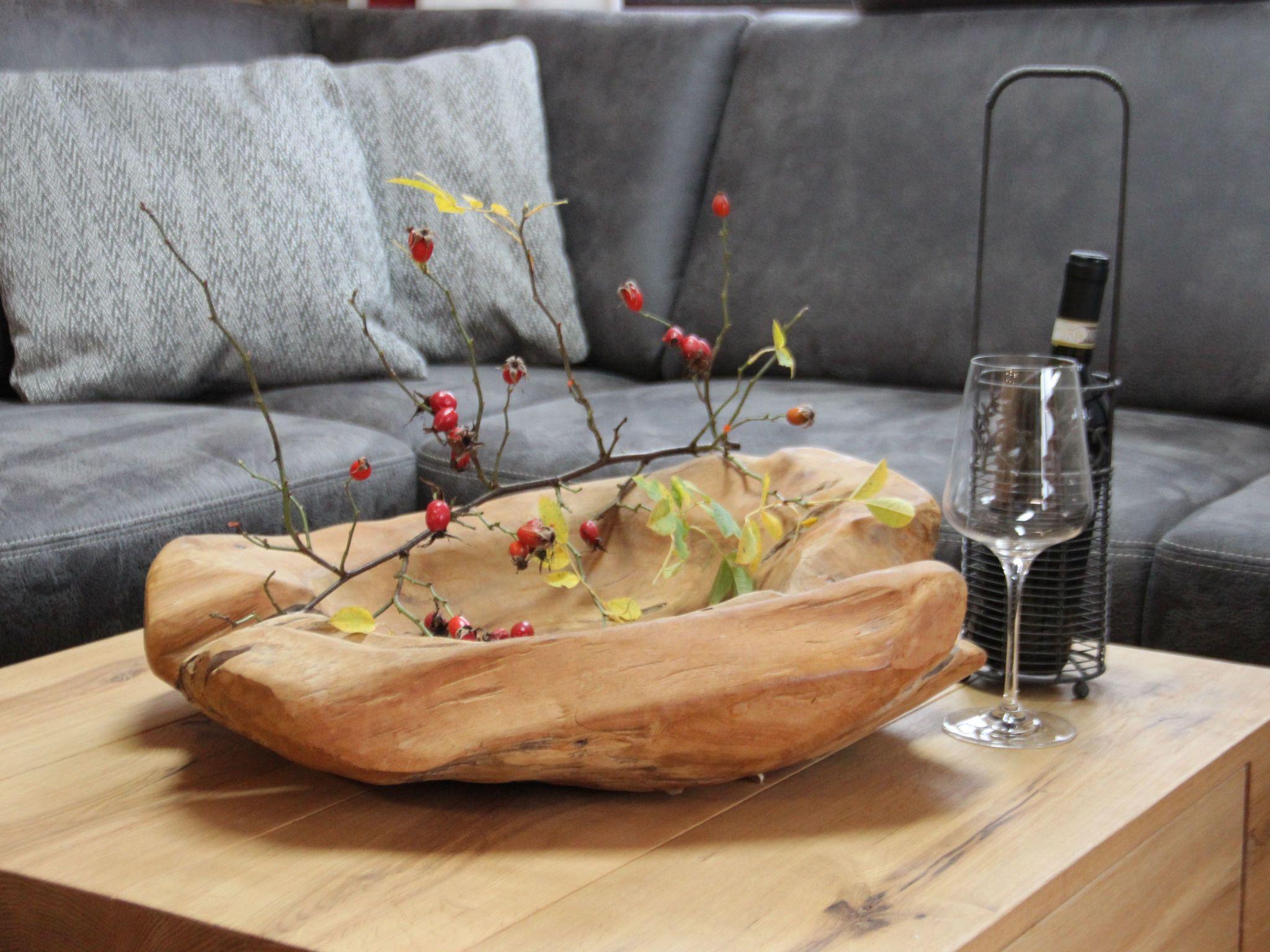 The large sun terrace and its own garden area can be accessed from the living room via a lift and slide window element. A kettle barbecue, an extendable table and four chairs as well as a relaxing chair are part of the garden equipment.