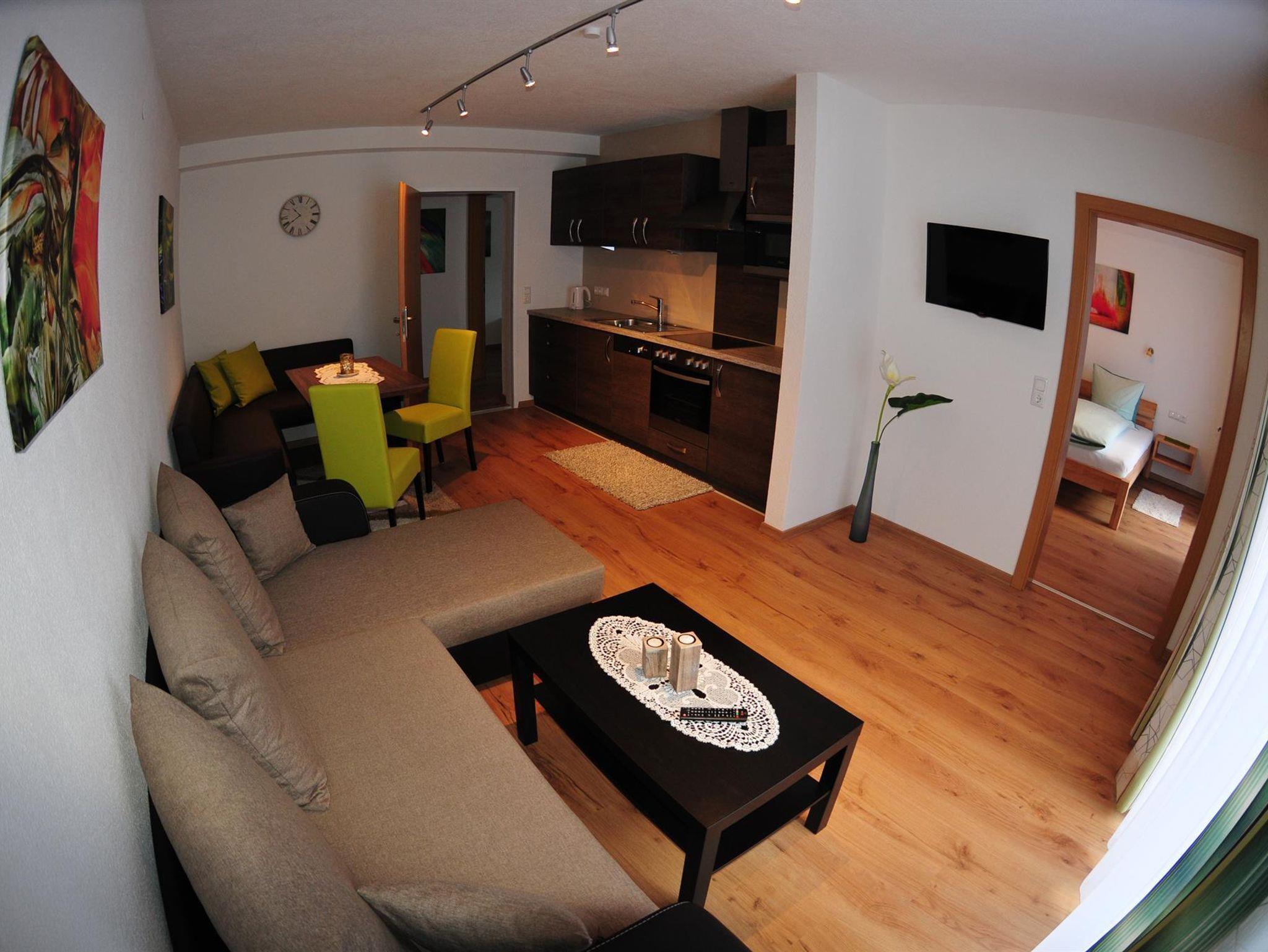 Superior-App. Nr. 9: Vorraum, vollausgestattete Küche mit Eßecke und Wohnecke (ausziehbare Couch) mit Flat-TV, 2 getrennten Schlafzimmern (in einem Schlafzimmer ist ein Flat-TV, DU/WC mit Schiebetür bzw. Tür zu einem Schlafzimmer .