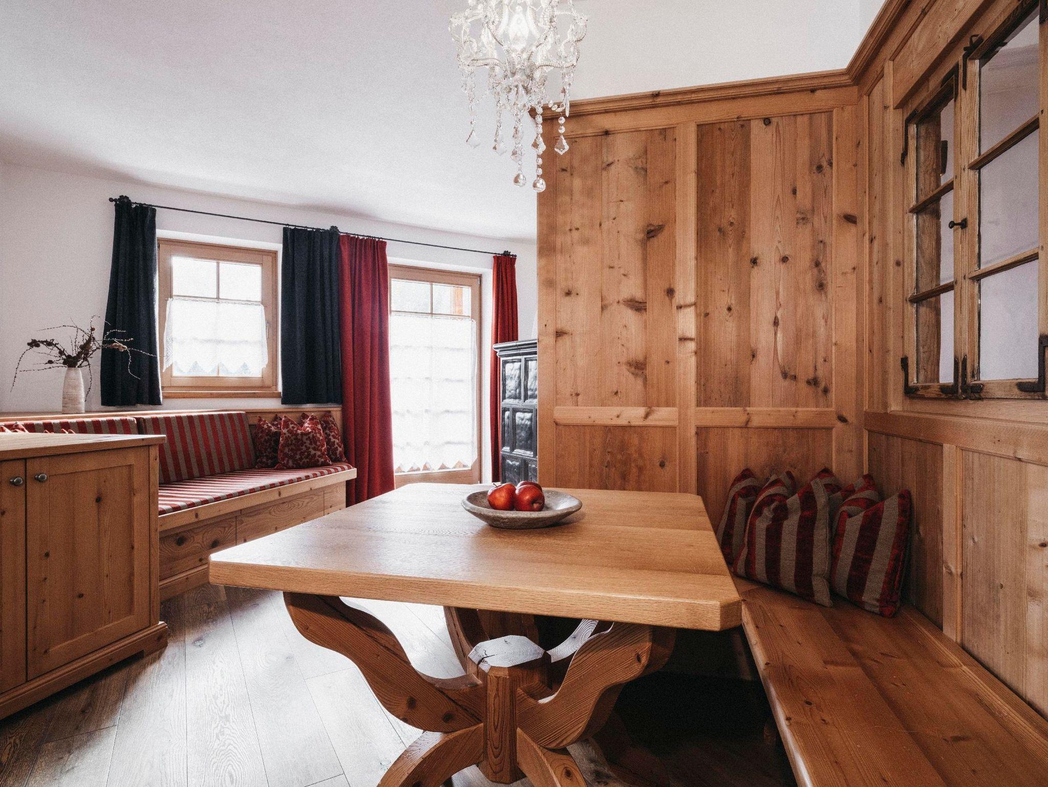 exklusive Ausstattung mit Holz aus dem 16. Jh., extra großes Doppelbett 210 x 200 cm, Schlaf- und Wohnbereich mit Kachelofen, Sitzecke und Diwan, Bad mit Dusche, Badewanne, Doppelwaschbecken, Handtuchtrockner, Haarfön, beleuchteter Schminkspiegel, getrenntes WC mit Bidet, SAT-TV, Radio-TV, Zimmersafe, Telefon, Möglichkeit zur Stromabschaltung im ganzen Zimmer (z.B. für einen besseren Schlaf), Naturholzboden, Balkon oder Terrasse (nicht behindertengerecht)