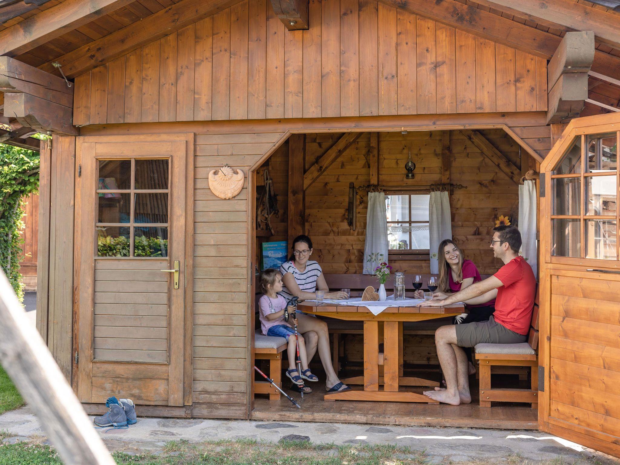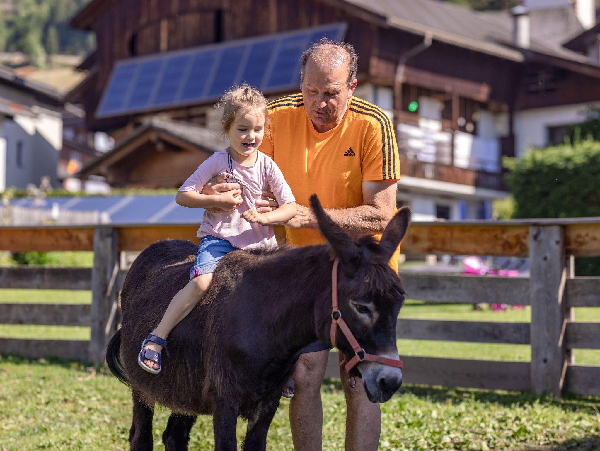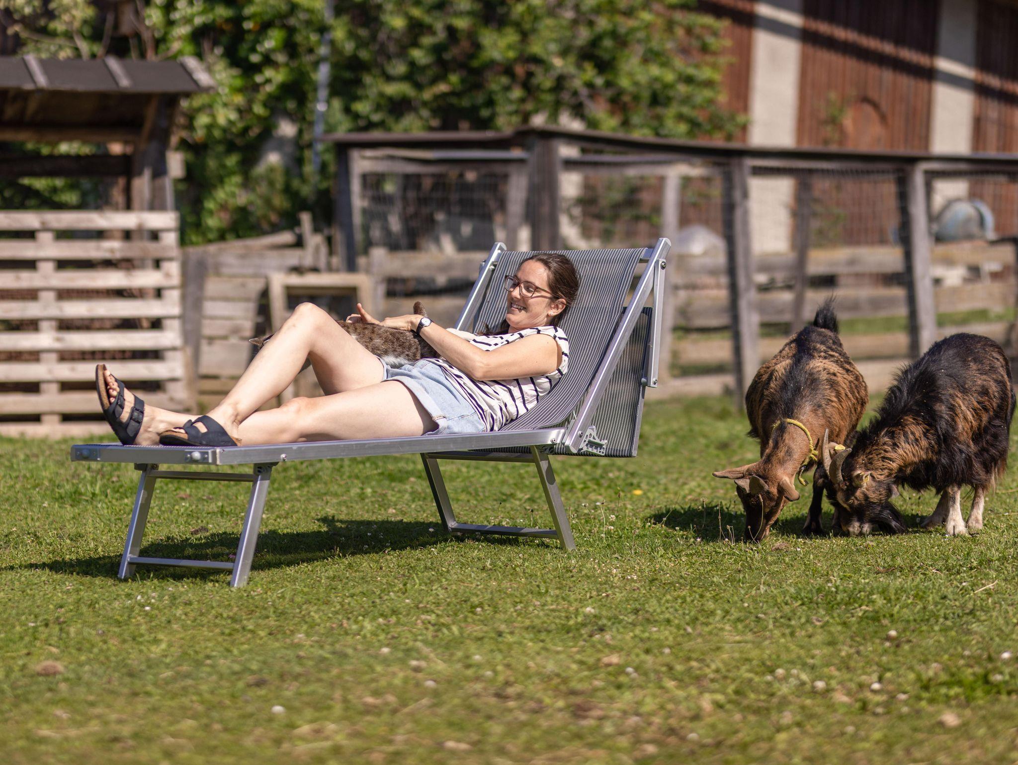 Unser Ferienhaus liegt am Ortsrand mit großer Spielwiese und kleiner Viehhütte für unsere Streicheltiere, Gartenhaus mit Grillmöglichkeit, Tourentipps, Wanderkarten zum ausleihen, Überdachter PKW Parkplatz. Spieleraum mit Tischtennis, Tischfußball, Dart und Stadelkino. Auf unserem Hof gibt es Kühe, Hühner, Katzen, Zwergziegen Jenny und Ella und unsere beiden Eselin SINA.