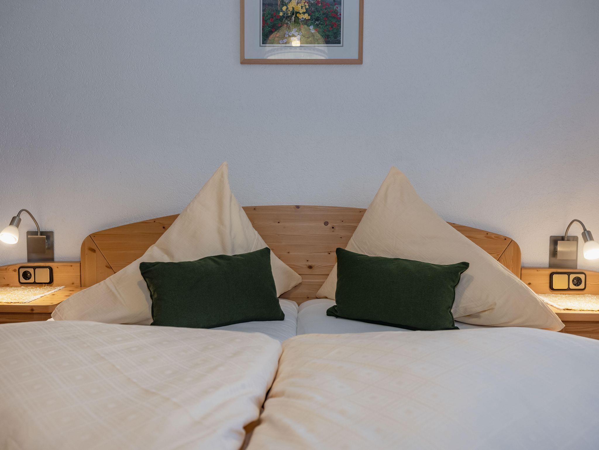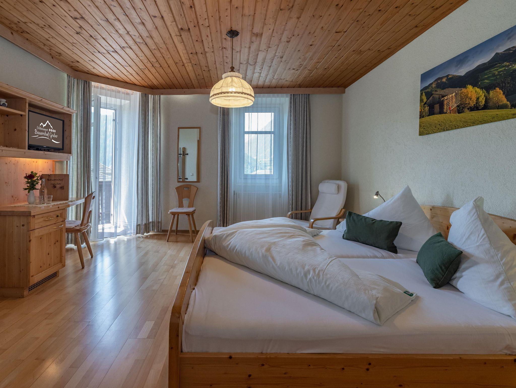 Gemütlich und liebevoll eingerichtete Doppelbettzimmern. Sie sind 20 m2 groß und mit Du/ WC, Sat/TV, Wlan, Kühlschrank und Südbalkon ausgestattet. Auch für ein Gitter - oder Zustellbett wäre noch ausreichend Platz vorhanden. Kraftvolles Frühstücksbuffet mit zum Teil hofeigenen Produkten.