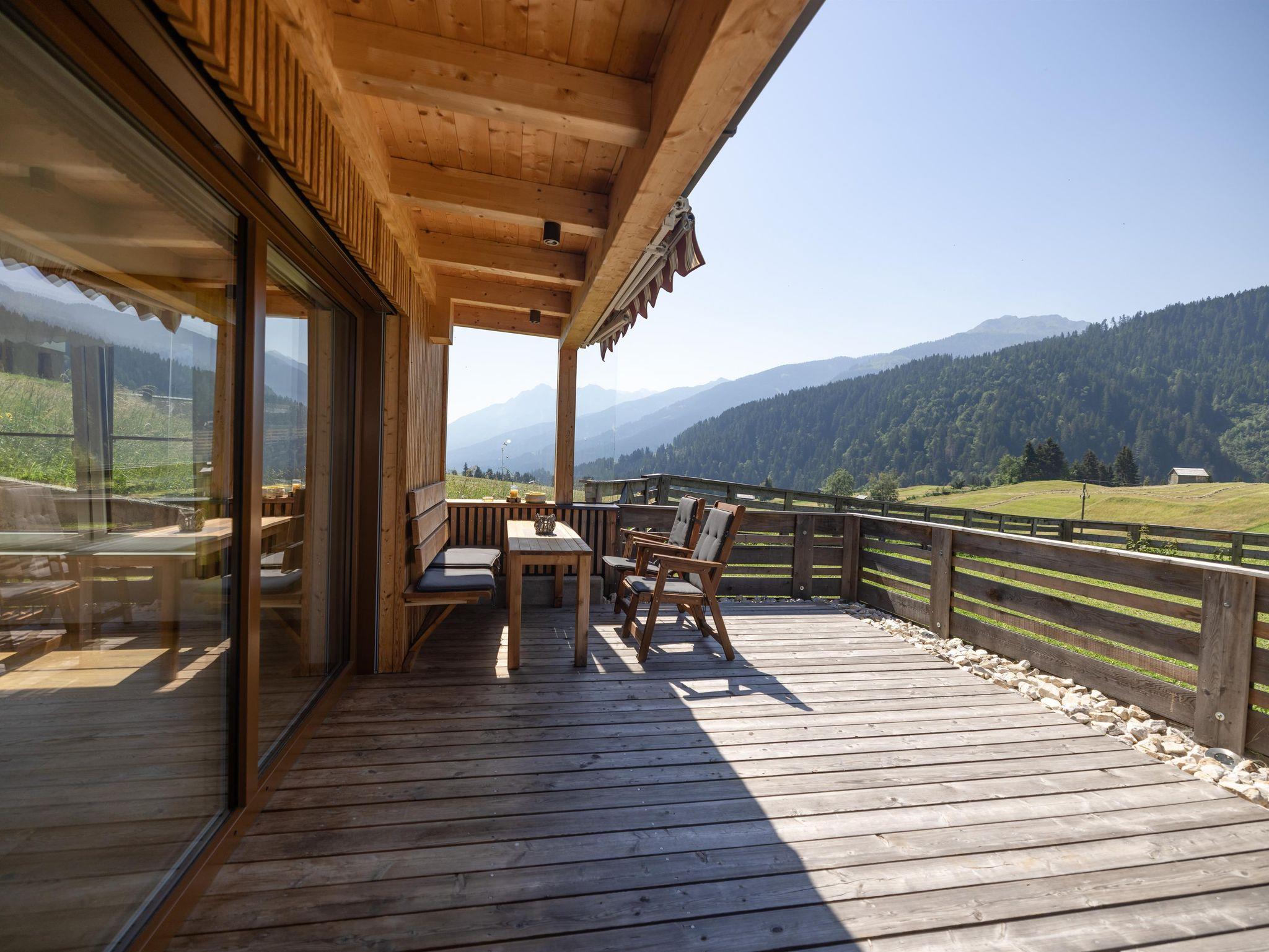 Die Fewo Sonnenaufgang mit 37 - 60 m² befindet sich im 1. Stock unseres Ferienhauses. Sie ist mit mit heimischem Holz liebevoll und komplett eingerichtet und besteht aus einer Wohnküche mit Sat/Tv, einem Schlafzimmer für 2 bis 3 Personen und ein zweites Schlafzimmer für weitere 2 bis 3 Personen und zwei Badezimmer mit DU/WC und Handtuchtrockner. Beide Zimmer verfügen über einen Vorraum mit Garderobe, sowie Sat / Tv, Wlan und großzügigem Ost-/Süd-/Westbalkon mit herrlicher Aussicht auf die karnische Bergwelt, unsern Garten und unsere Tiere
