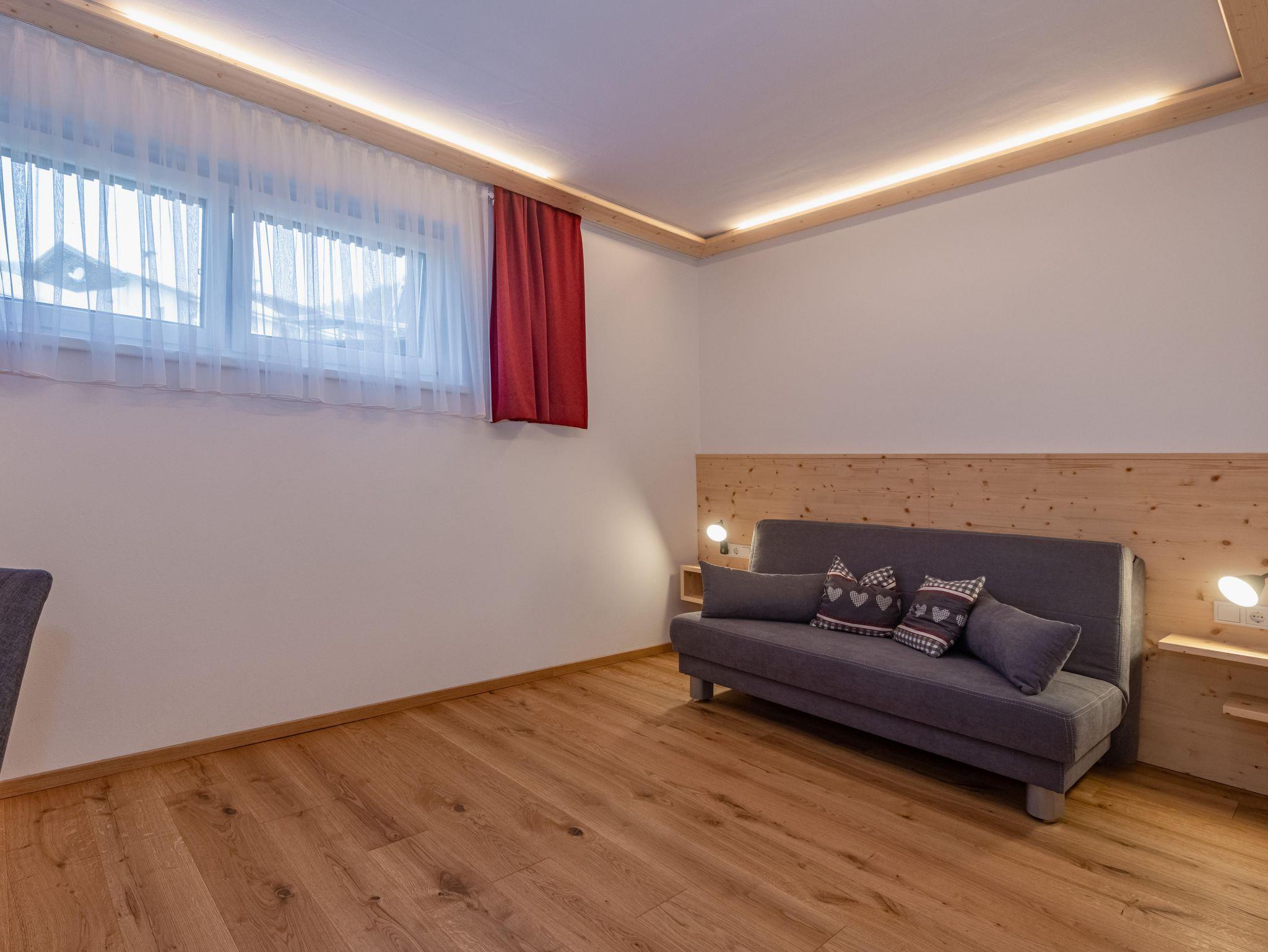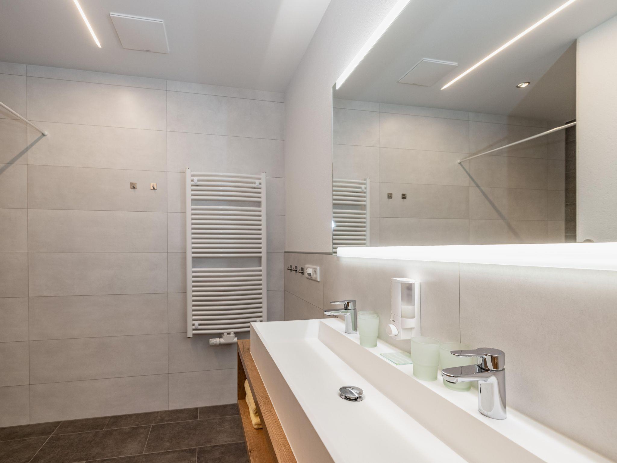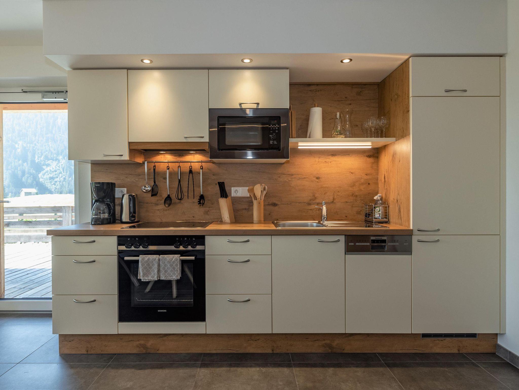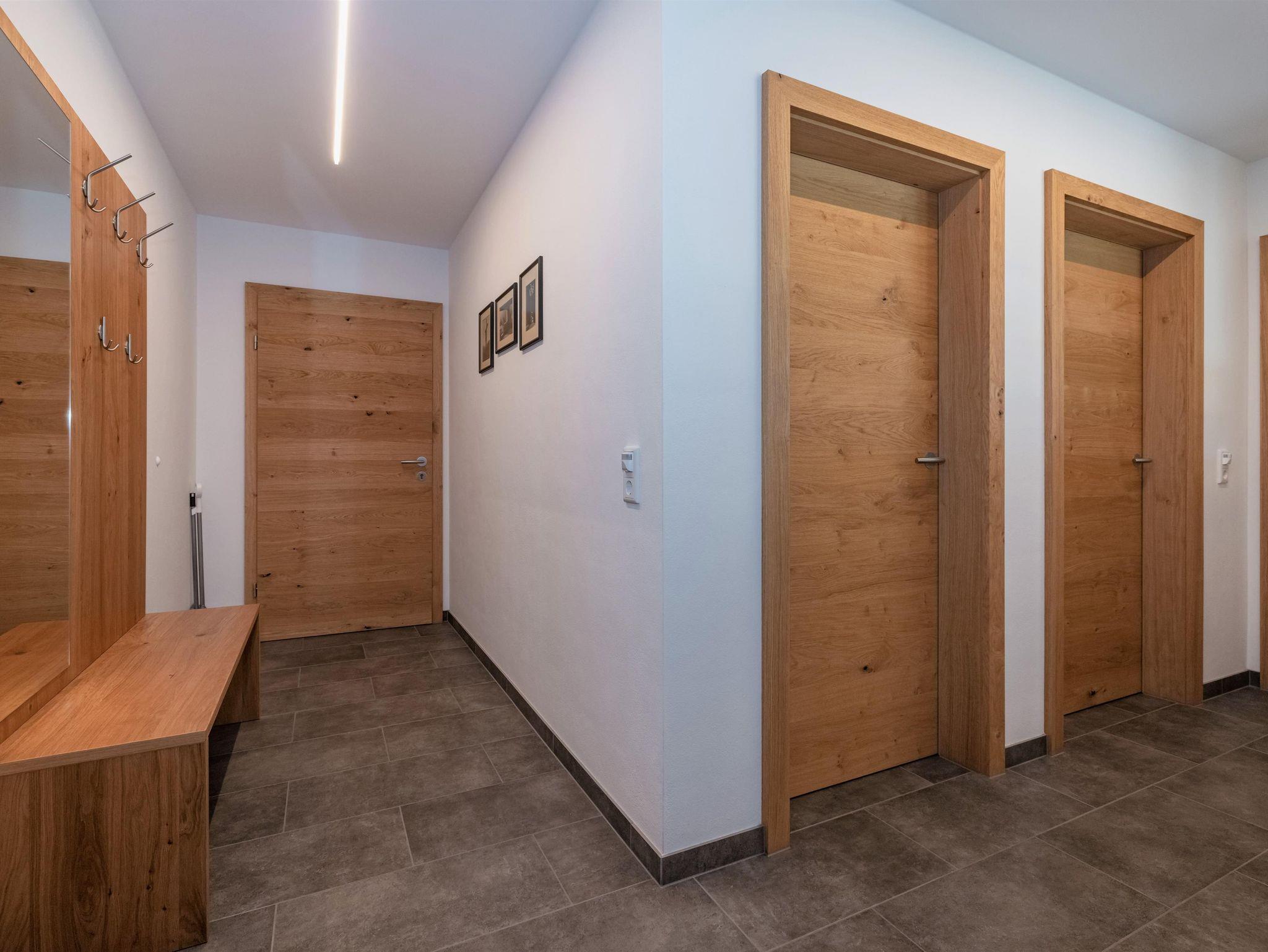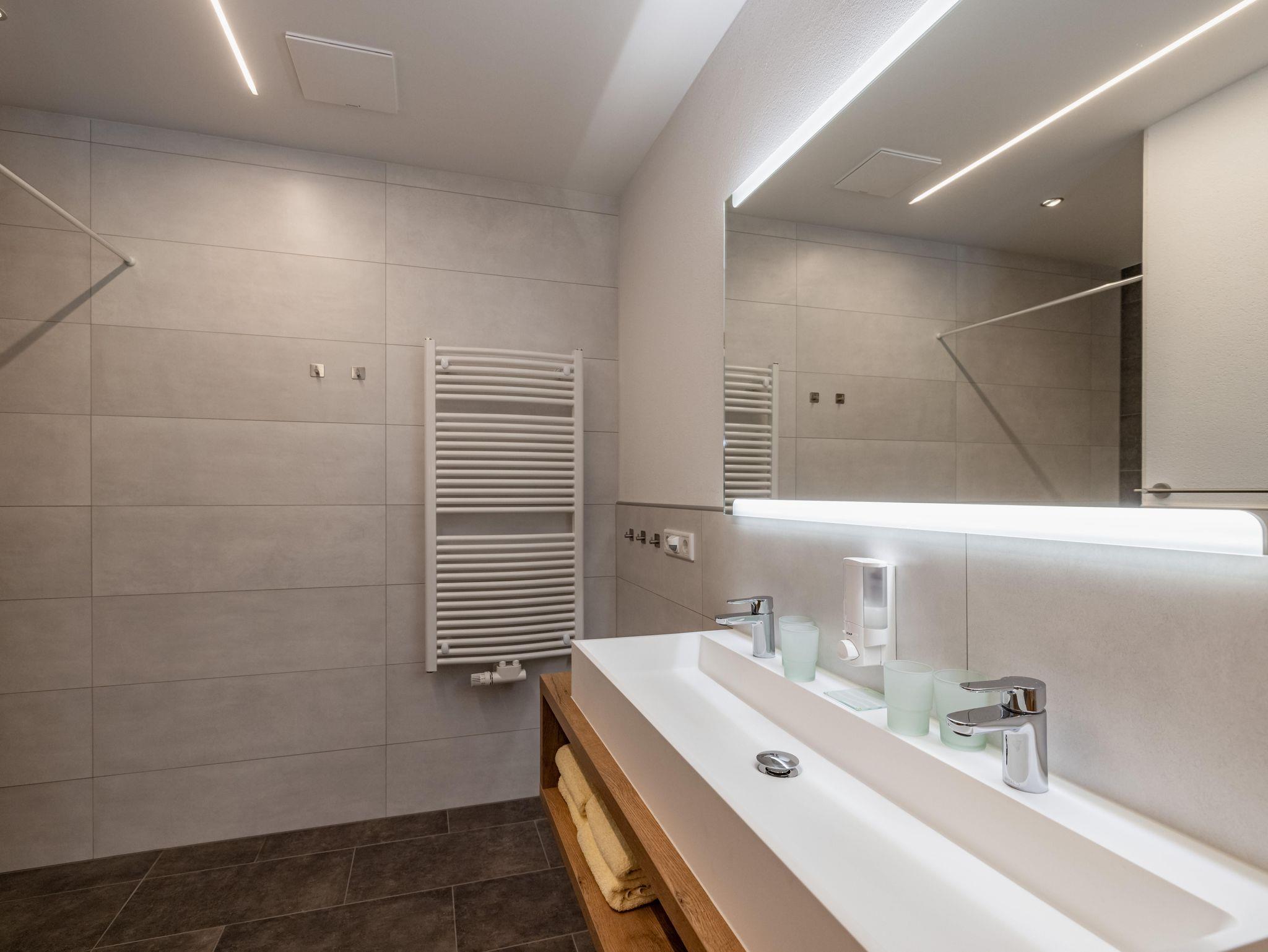 Die Wohnung mit 90m² (+ 24m² Südterrasse) für 2-4 (6) Pers. ist barrierefrei und besteht aus einem offenen Wohn-Koch-Essbereich (Geschirrspüler, E-Herd mit Backrohr und Dunstabzug, Kühlschrank mit Gefrierfach, Mikrowelle, Kaffeemaschine, Wasserkocher) mit SAT/TV, Bad mit Regendusche und Handtuchtrockner, getrenntes WC. Auf Wunsch kann ein zweites Bad mit Regendusche und WC dazugebucht werden. Die Wohnung bietet zwei Schlafzimmer für je 2 Personen mit geöltem Eichenparkett, ein Spielezimmer mit Ausziehschlafcouch und eine großzügige Südterrasse (24m²).