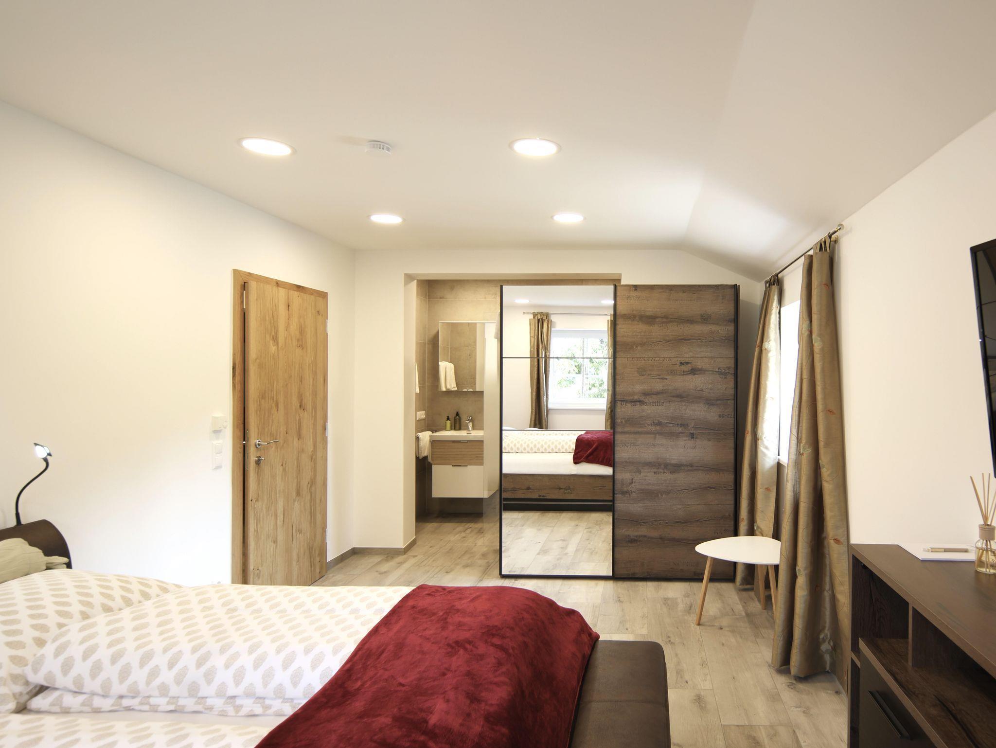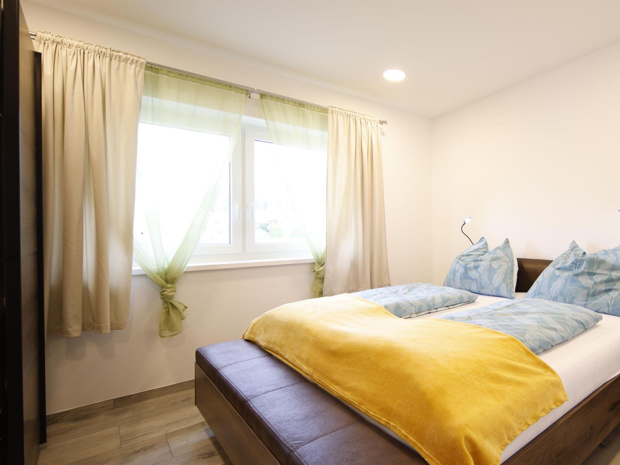 Das Apartment ist komplett neu eingerichtet. Es verfügt über 2 separate Schlafzimmer mit King-Size Bett, SAT-TV in jedem Zimmer. Die Küche ist komplett mit Geschirrspüler, Mikrowelle, Kaffeemaschine, Wasserkocher, Küchenutensilien und einem kompletten Geschirrset ausgestattet. Zusätzlich dazu finden Sie auch Tischwäsche und Geschirrtücher in unseren Ferienwohnungen. Im Wohnzimmer der Apartments befinden sich eine gemütliche Sitzecke welche als Schlafcouch genutzt werden kann. In jedem Zimmer befinden sich Hand- und Duschtücher, Föhn sowie diverse Kosmetikartikel.
