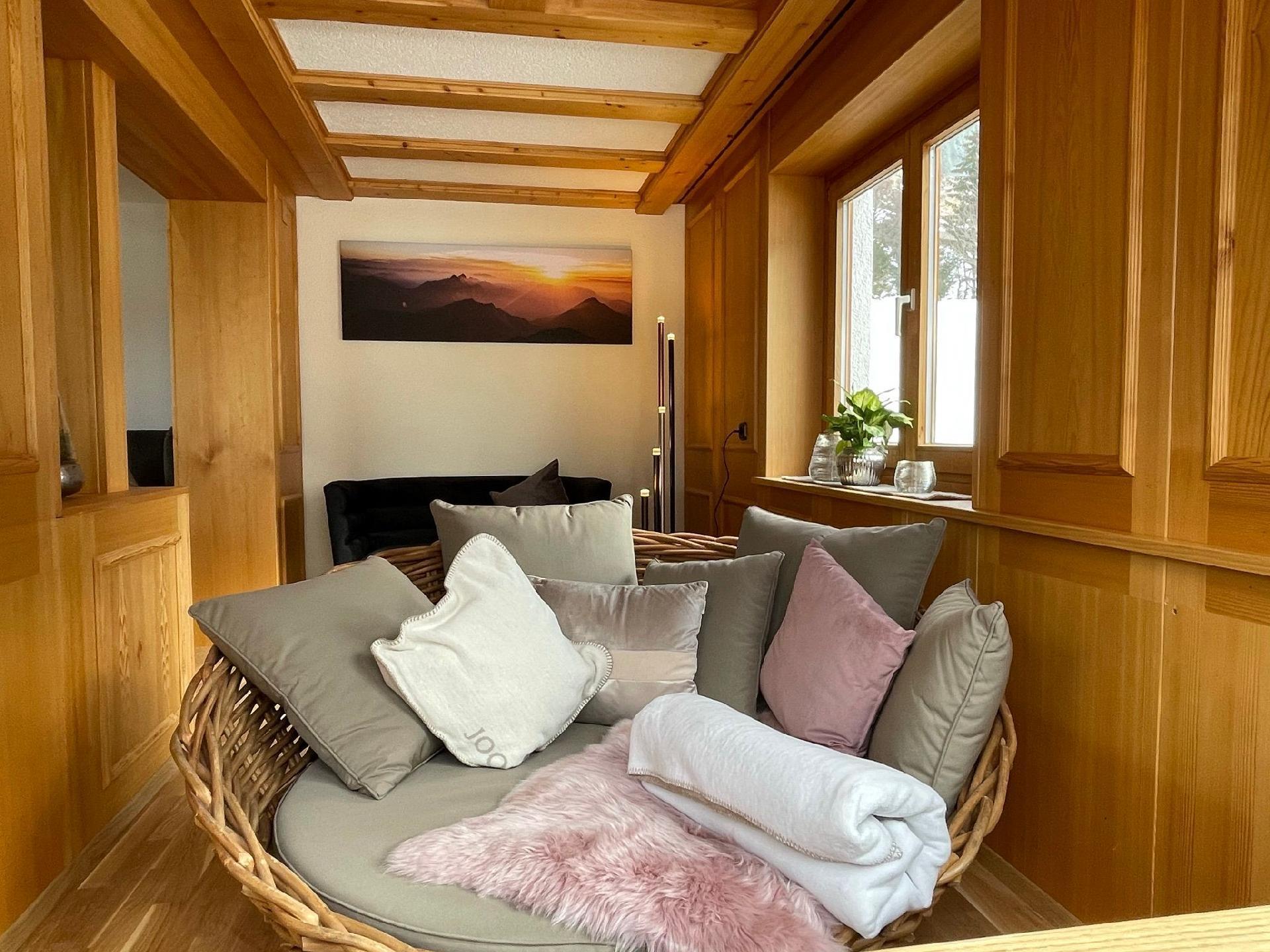 Discover our inviting holiday flat which, with its 90 m² of comfortable living space, is the perfect place for your relaxing holiday. Directly accessible via the upper entrance with only one step, this gem presents itself with an open ceiling construction that gives you a charming view of the roof beams. The large bedrooms are not only furnished with cosy double beds (180 x 200 cm), but also offer comfortable, pull-out sofas, three-door wardrobes, small tables and wall-mounted wardrobes for your ultimate living comfort. Inside the flat, you will find a generously equipped kitchen that also serves as a dining area. Here you can enjoy meals together at a large table with space for up to 10 people. The fitted kitchen offers plenty of worktop space as well as a four-zone ceramic hob, an oven, a microwave, a dishwasher and two fridges - ideal for extensive self-catering. There is also a coffee machine (filter and Nespresso), a kettle and a toaster. Flat-screen televisions with satellite TV provide entertainment in every room. The interior bathrooms are equipped with fully glazed shower cubicles, hairdryers and make-up mirrors, while underfloor heating in all rooms ensures cosy warmth. The outdoor area boasts south-facing balconies from which you can enjoy a marvellous view of the mountains. Each balcony is furnished with a table and four chairs, ideal for enjoying the view with a glass of fine wine. This special location allows you to admire the beautiful panorama to the full and spend relaxing hours outdoors. The surroundings of our holiday flat offer everything your heart desires. Whether you love nature, want to be active in sports or are simply looking for peace and quiet - this is the right place for you. The holiday flat is the ideal starting point for a wide range of activities in the surrounding countryside, guaranteeing a varied and fulfilling holiday. Make our holiday flat your next holiday destination and enjoy the comfort and tranquillity that this accommodation has to offer. Thanks to the complete and high-quality interior, the cosy sleeping arrangements and the enchanting view, your stay with us will be unforgettable. Experience a relaxing holiday that will make you feel at home - we look forward to your visit!