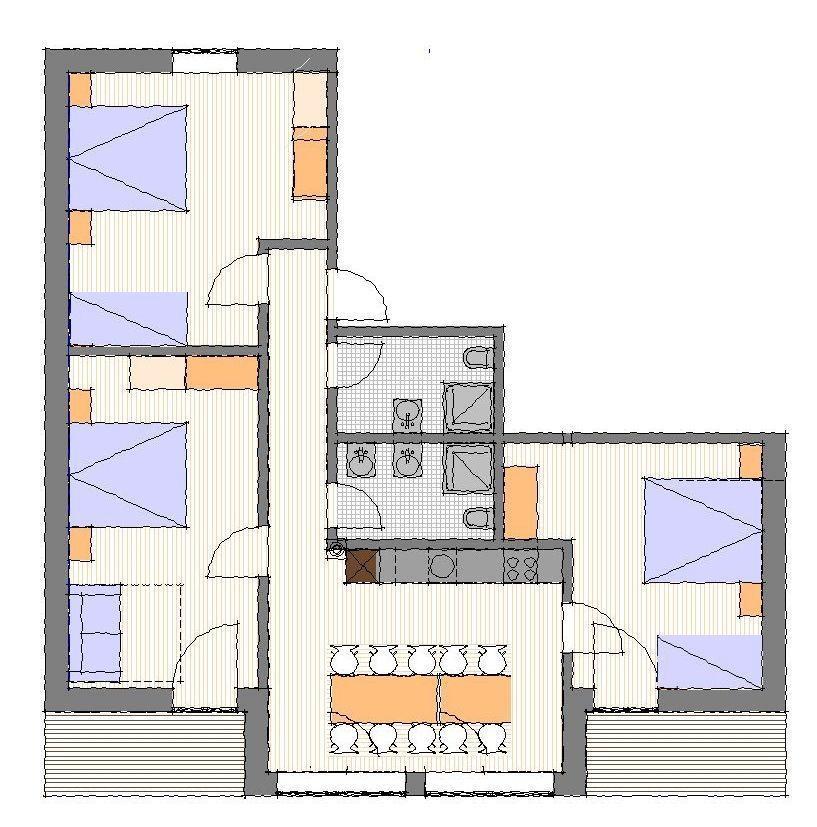Sleeping facilities: Number of double beds (1.80 m width): 3; Number of single beds: 1