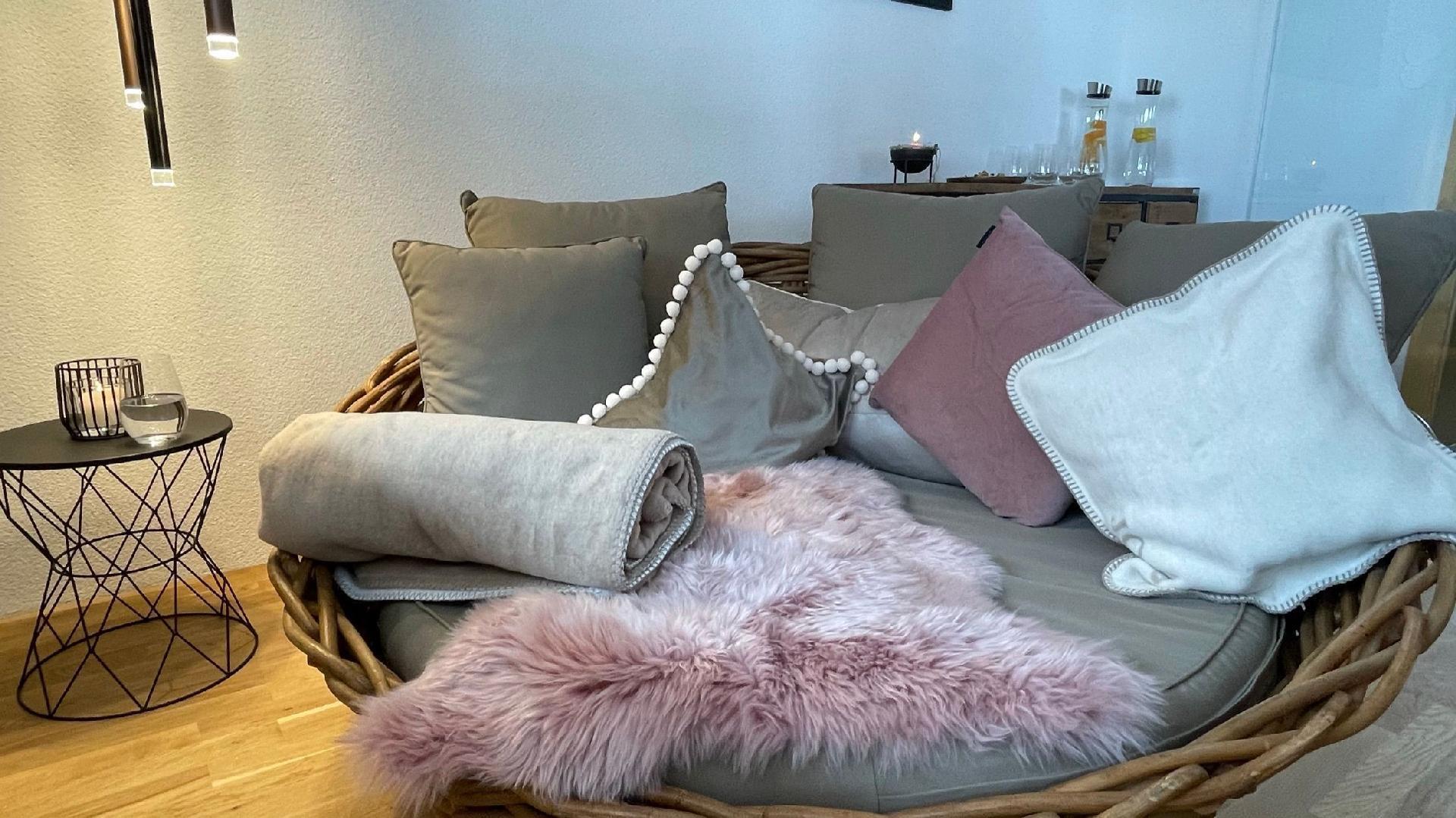 Discover the perfect symbiosis of modern flair and rural charm that our holiday flat offers you. Located on the first floor, the flat extends over a living space of 60 m², which meets the highest standards and promises you a carefree holiday. The well thought-out room layout with two bedrooms, two bathrooms and a spacious living and dining area with integrated kitchen creates an inviting ambience for a relaxing holiday. Inside the flat, you will find a high level of comfort that leaves nothing to be desired. The two identical bedrooms each have a spacious double bed (180 cm x 200 cm), bedside tables on both sides and reading lamps for a restful night's sleep. A double-door wardrobe offers plenty of space for your clothes. The televisions with satellite TV in the bedrooms provide entertainment, while a small desk and free Wi-Fi connection support your planning and communication during your stay. The fully-equipped kitchen with four-zone ceramic hob, dishwasher, microwave and other amenities and the inviting dining table in the dining area make it easy to cook for yourself and enjoy meals together. The outdoor area of the holiday flat boasts a balcony directly adjacent to the living area. Here you can enjoy unforgettable moments in the open air with a picturesque view of the surrounding mountain slopes. The quiet location guarantees relaxing hours outdoors, be it with a morning coffee or a glass of wine in the evening. The flat's location offers the ideal starting point for exploring the charming surroundings. Whether hiking in the picturesque countryside, excursions to nearby sights or simply immersing yourself in the local culture - everyone will find their own personal holiday pleasure here. The rural idyll surrounding the holiday flat also promises a break from everyday life and invites you to enjoy pure relaxation. Don't miss this opportunity to experience an unforgettable holiday in our exquisite holiday flat. With its stylish furnishings, extensive comfort and fantastic location between modern luxury and rural charm, it is the perfect retreat for anyone looking for something special. Experience a carefree break that you won't forget in a hurry.