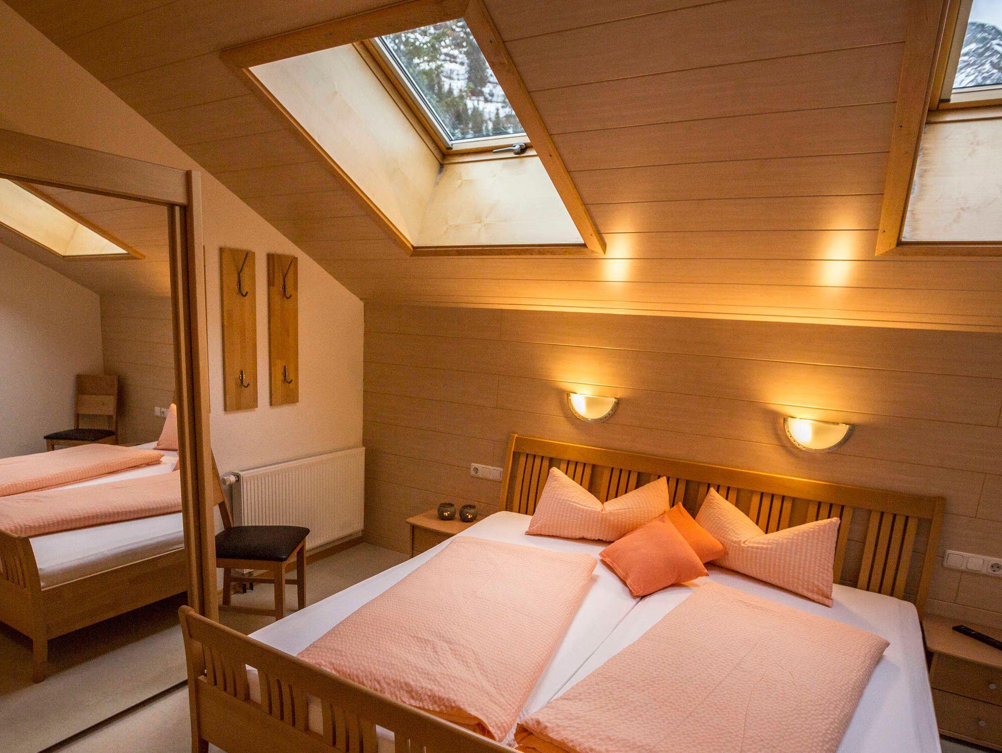 Unsere südseitige Dachgeschosswohnung bietet Platz für 4 - 6 Personen und enthält zwei großzügige Schlafzimmer mit Sat-TV mit je einem Badezimmer mit Dusche und WC, Fön und Handtuchwärmer,